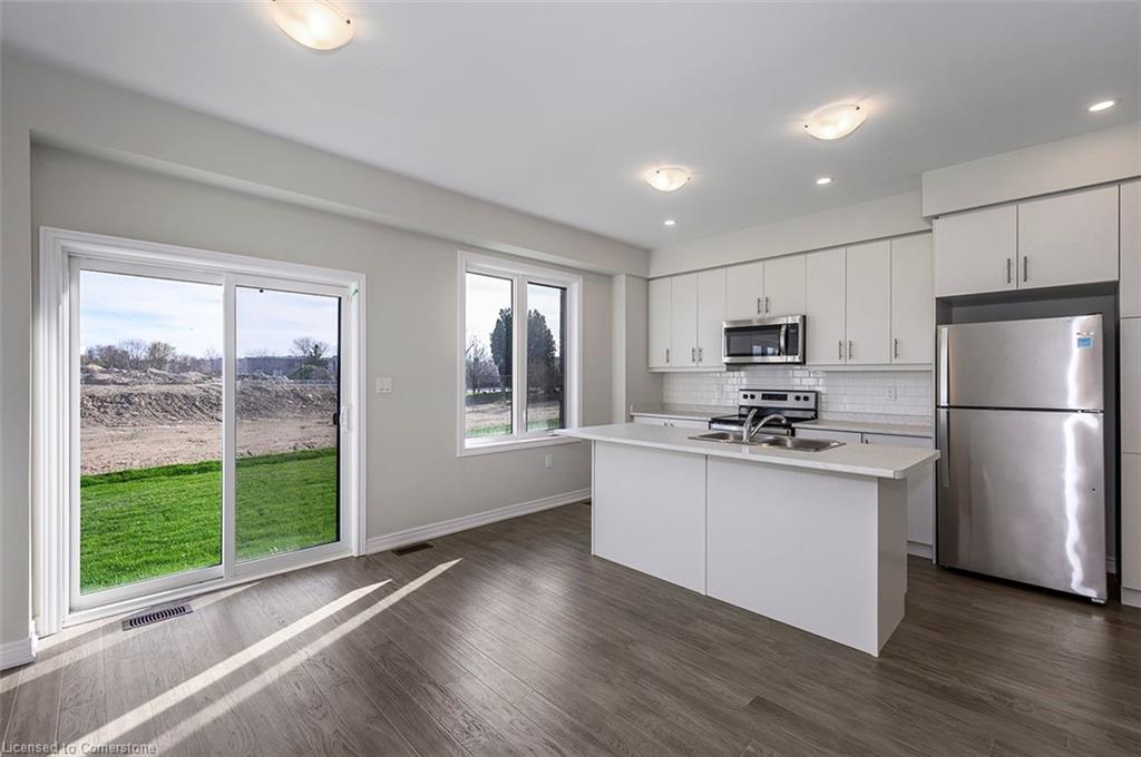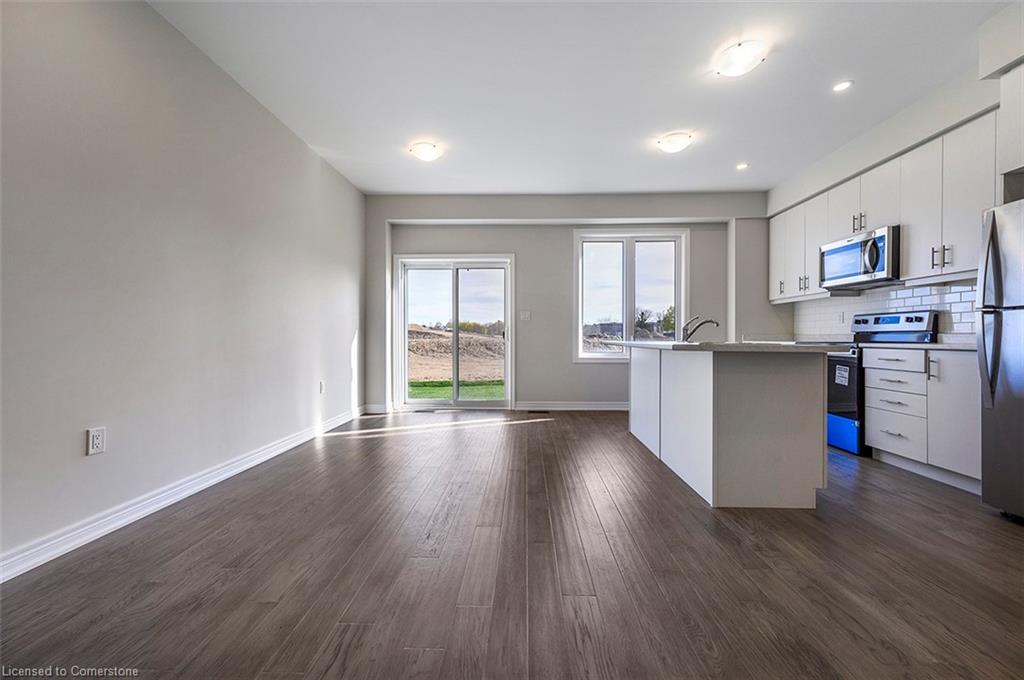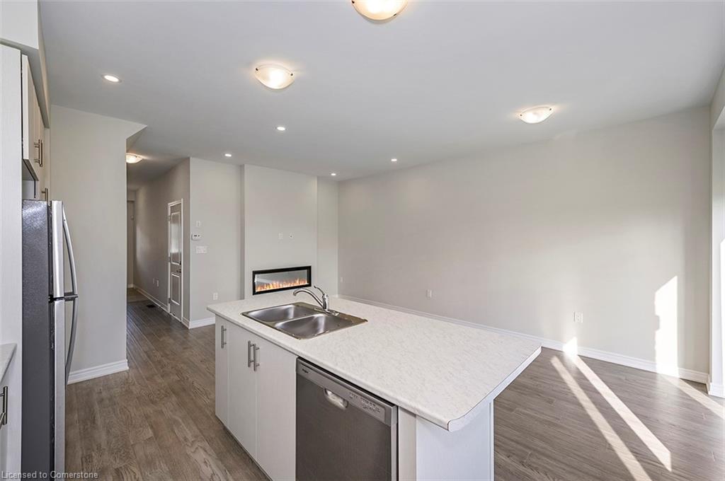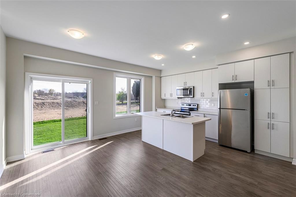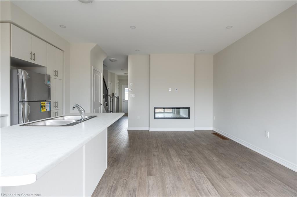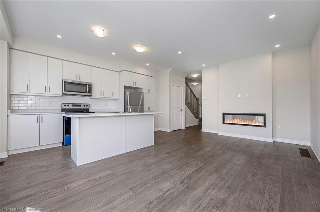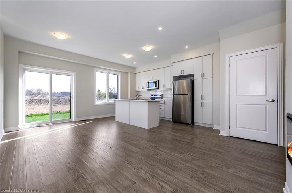 Saving the BEST FOR LAST… A 1300 SF FREEHOLD TOWNE SITTING on a PREMIUM LOT in its FULLY FINISHED STONEGATE PARK COMMUNITY by DiCENZO HOMES. This INTERIOR TOWNE welcomes you with its COVERED PORCH, STONE, STUCCO & BRICK Front Exterior. Open the door & be welcomed by over $35,000 in UPGRADES including HARDWOOD FLOORING THROUGHOUT the entire unit. AN UPGRADED FLOORPLAN features the PERFECT OPEN CONCEPT LIVING, DINING & KITCHEN AREA. The LIVING AREA boasts a POTLIGHTS, a 42” FLOATING FIREPLACE nestled into a drywall “bumpout”, complete with TV wall plug & conduit perfect for your future feature wall. Whether entertaining or just keeping up the “home chef” lifestyle, this kitchen offers TALLER UPPERS, a CUSTOM PANTRY, LARGE ISLAND with BREAKFAST BAR & STAINLESS STEEL APPLIANCES. With the warm weather upon us, it’s time to head outside & enjoy the views of the BEAUTIFUL GREENSPACE & no rear neighbours. When it’s time to head inside, the attention to detail continues as you head up your OAK STAIRS with WROUGHT IRON SPINDLES & MORE HARDWOOD, from the upper hall to ALL 3 SPACIOUS BEDROOMS. Once again, breathtaking rear views. The PRIMARY BEDROOM is the perfect finishing touch… room large enough for a KING BED, 2 CLOSETS & a BRIGHT ENSUITE with large vanity & GLASS FRONT corner shower. This NEW HOME has the TARION WARRANTY & has lots of extras such as GARAGE DOOR OPENER, 3 PC ROUGH IN & SMOOTH CEILINGS to mention a few. It’s RARE TO FIND “ALL THIS”, a LOT THOSE DREAM ABOUT, CLOSE TO EVERYTHING & the best part… IT CAN BE HOME in JUST 30 days!!!! Come see what we are talking about!