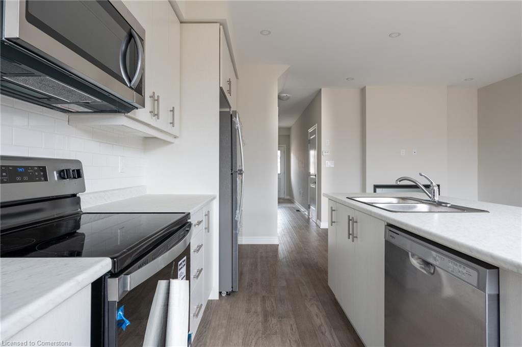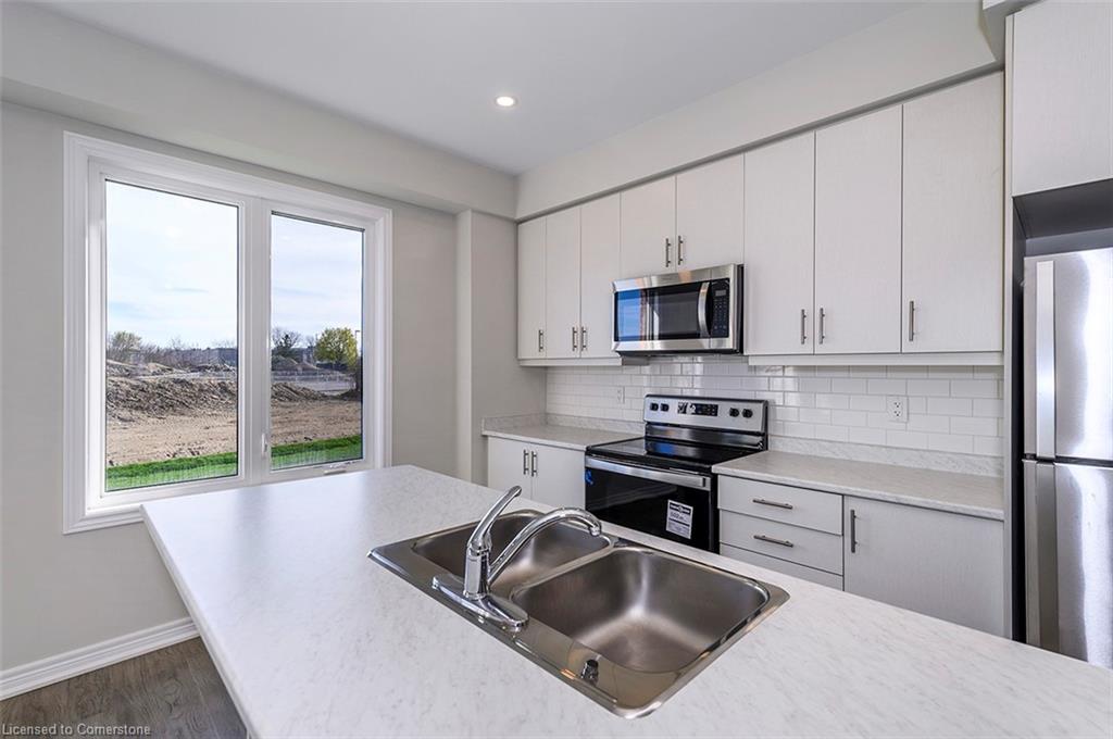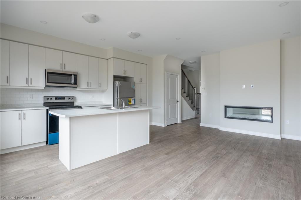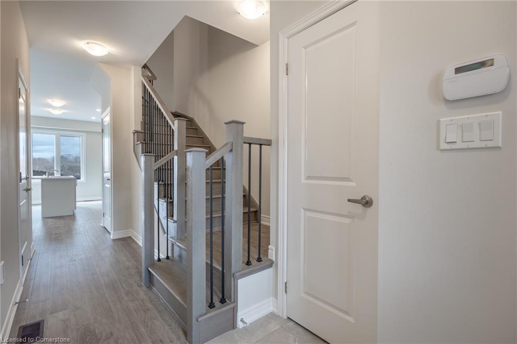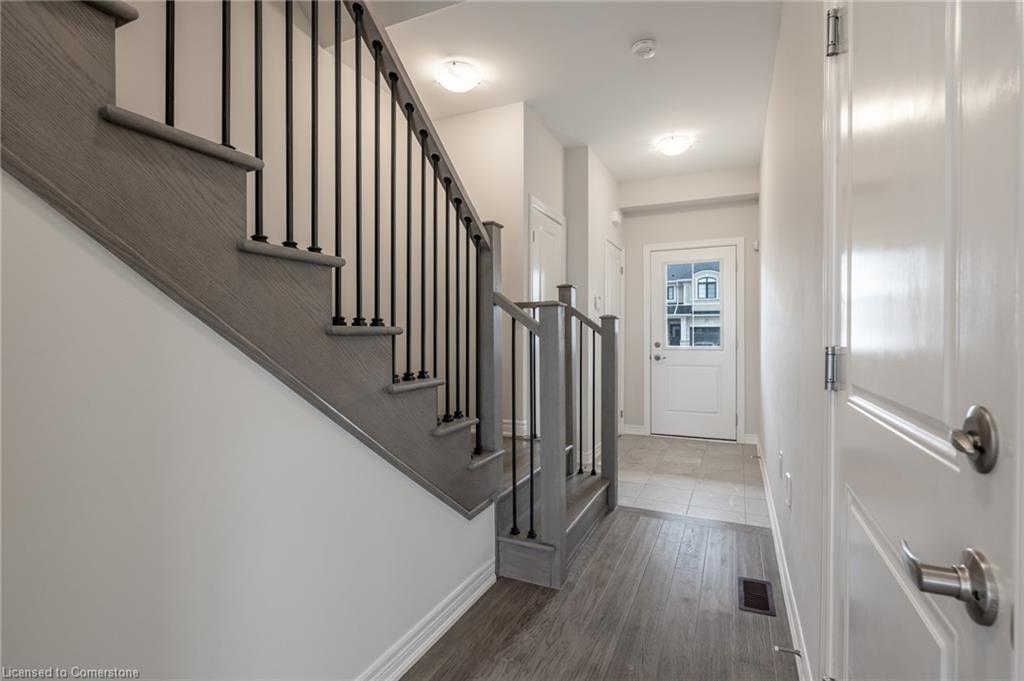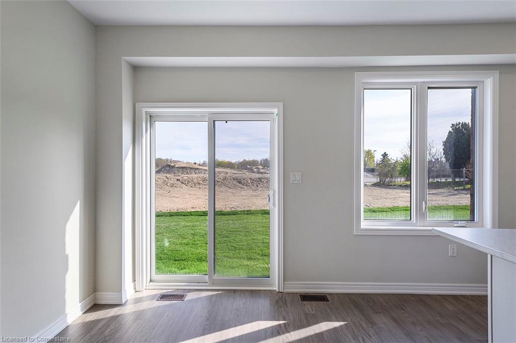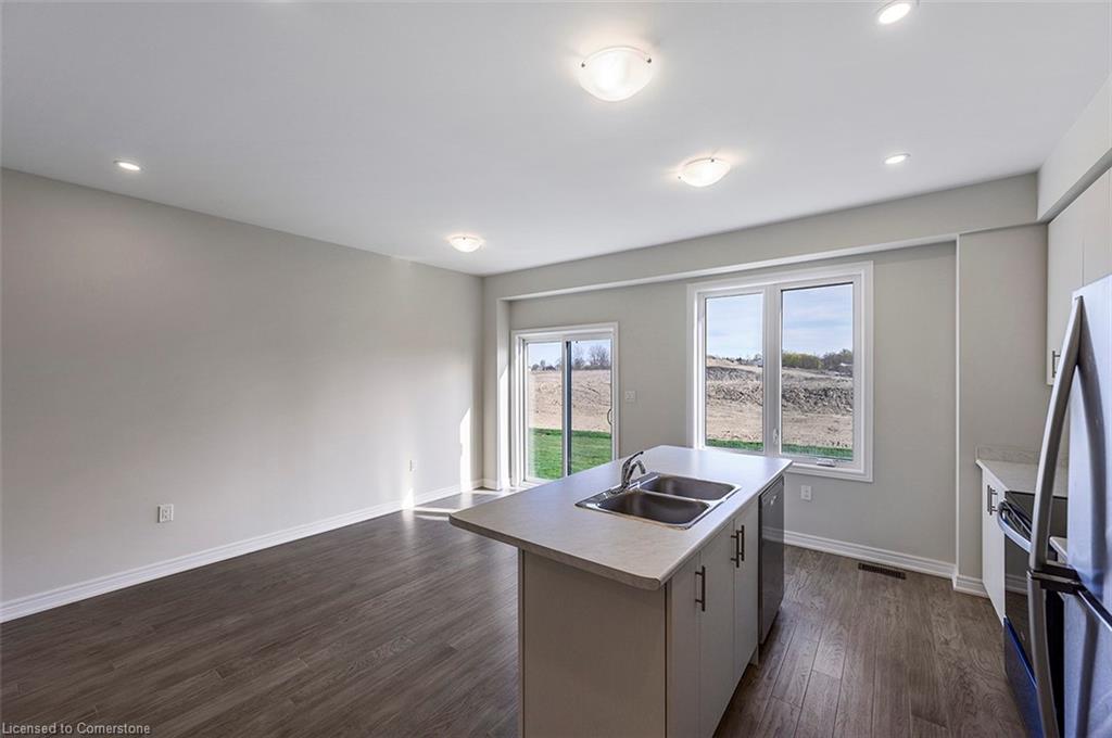 Saving the BEST FOR LAST… A 1300 SF FREEHOLD TOWNE SITTING on a PREMIUM LOT in its FULLY FINISHED STONEGATE PARK COMMUNITY by DiCENZO HOMES. This INTERIOR TOWNE welcomes you with its COVERED PORCH, STONE, STUCCO & BRICK Front Exterior. Open the door & be welcomed by over $35,000 in UPGRADES including HARDWOOD FLOORING THROUGHOUT the entire unit. AN UPGRADED FLOORPLAN features the PERFECT OPEN CONCEPT LIVING, DINING & KITCHEN AREA. The LIVING AREA boasts a POTLIGHTS, a 42” FLOATING FIREPLACE nestled into a drywall “bumpout”, complete with TV wall plug & conduit perfect for your future feature wall. Whether entertaining or just keeping up the “home chef” lifestyle, this kitchen offers TALLER UPPERS, a CUSTOM PANTRY, LARGE ISLAND with BREAKFAST BAR & STAINLESS STEEL APPLIANCES. With the warm weather upon us, it’s time to head outside & enjoy the views of the BEAUTIFUL GREENSPACE & no rear neighbours. When it’s time to head inside, the attention to detail continues as you head up your OAK STAIRS with WROUGHT IRON SPINDLES & MORE HARDWOOD, from the upper hall to ALL 3 SPACIOUS BEDROOMS. Once again, breathtaking rear views. The PRIMARY BEDROOM is the perfect finishing touch… room large enough for a KING BED, 2 CLOSETS & a BRIGHT ENSUITE with large vanity & GLASS FRONT corner shower. This NEW HOME has the TARION WARRANTY & has lots of extras such as GARAGE DOOR OPENER, 3 PC ROUGH IN & SMOOTH CEILINGS to mention a few. It’s RARE TO FIND “ALL THIS”, a LOT THOSE DREAM ABOUT, CLOSE TO EVERYTHING & the best part… IT CAN BE HOME in JUST 30 days!!!! Come see what we are talking about!