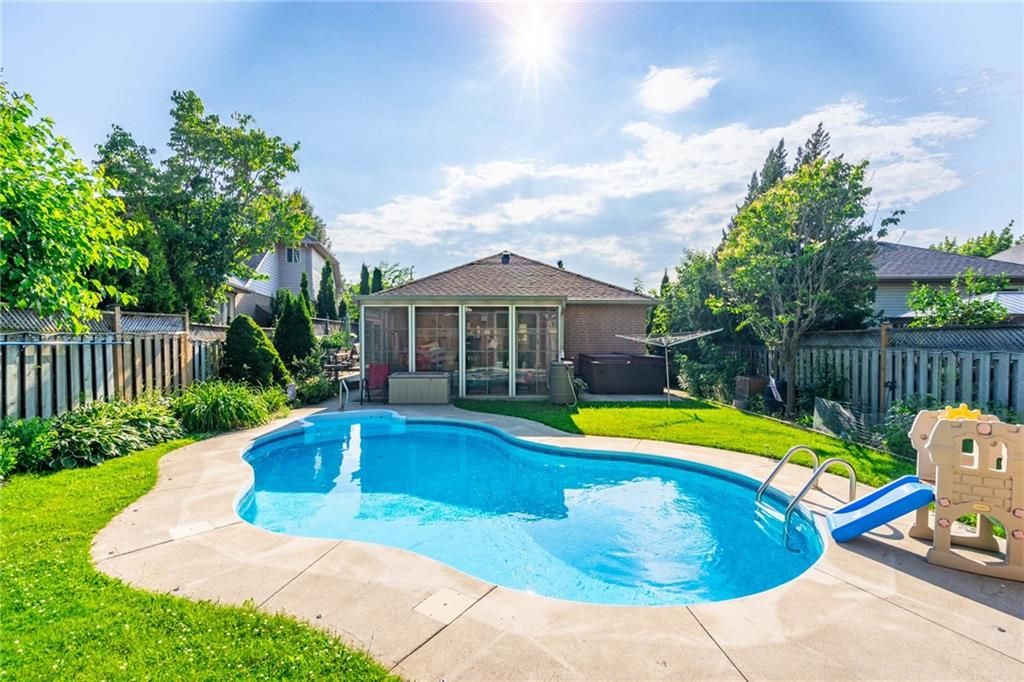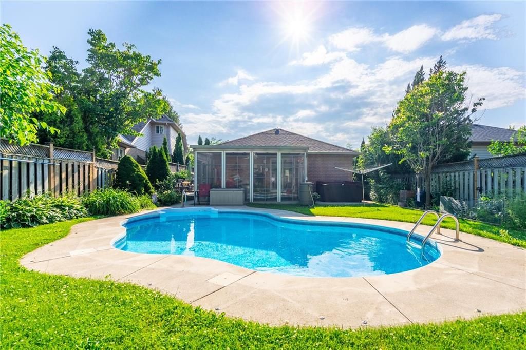 Welcome to 191 Kitty Murray Lane! This adorable bungalow has what you're looking for. Open concept living/ dining combination with newer laminate flooring: good sized kitchen with granite countertops, large primary bedroom leading to enclosed 3 season sunroom which overlooks the inground pool, 2nd bedroom is a nice size and is currently being used as an office plus a 3 piece bath. Continuing to the lower level you will find a recreation room great for family movie nights, bedroom currently being used as a craft room, 3 piece bath, laundry, storage and a cold cellar. Back backyard is fully fenced and is an incredible place to entertain family and friends with the heated inground pool and hot tub. Separate side entrance leads out to a large deck perfect for relaxing with your morning coffee or evening family BBq's with gas hook up.Updates include: Windows 2022, Front door 2022, Pool Heater 2022, Kitchen and Bath 2020, Painted throughout 2021, Furnace and AC 2014. Great location close to shopping, restaurants, schools, parks and hwy access.
