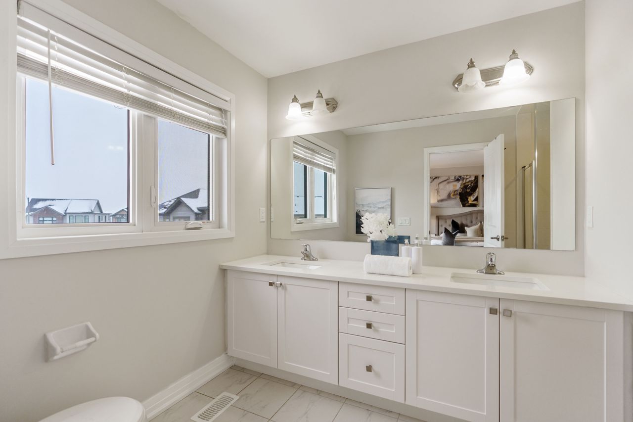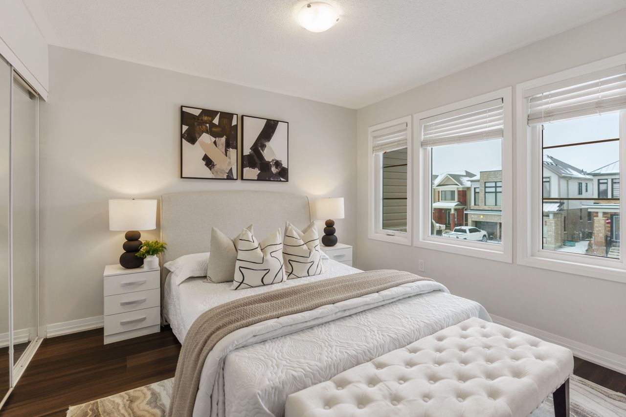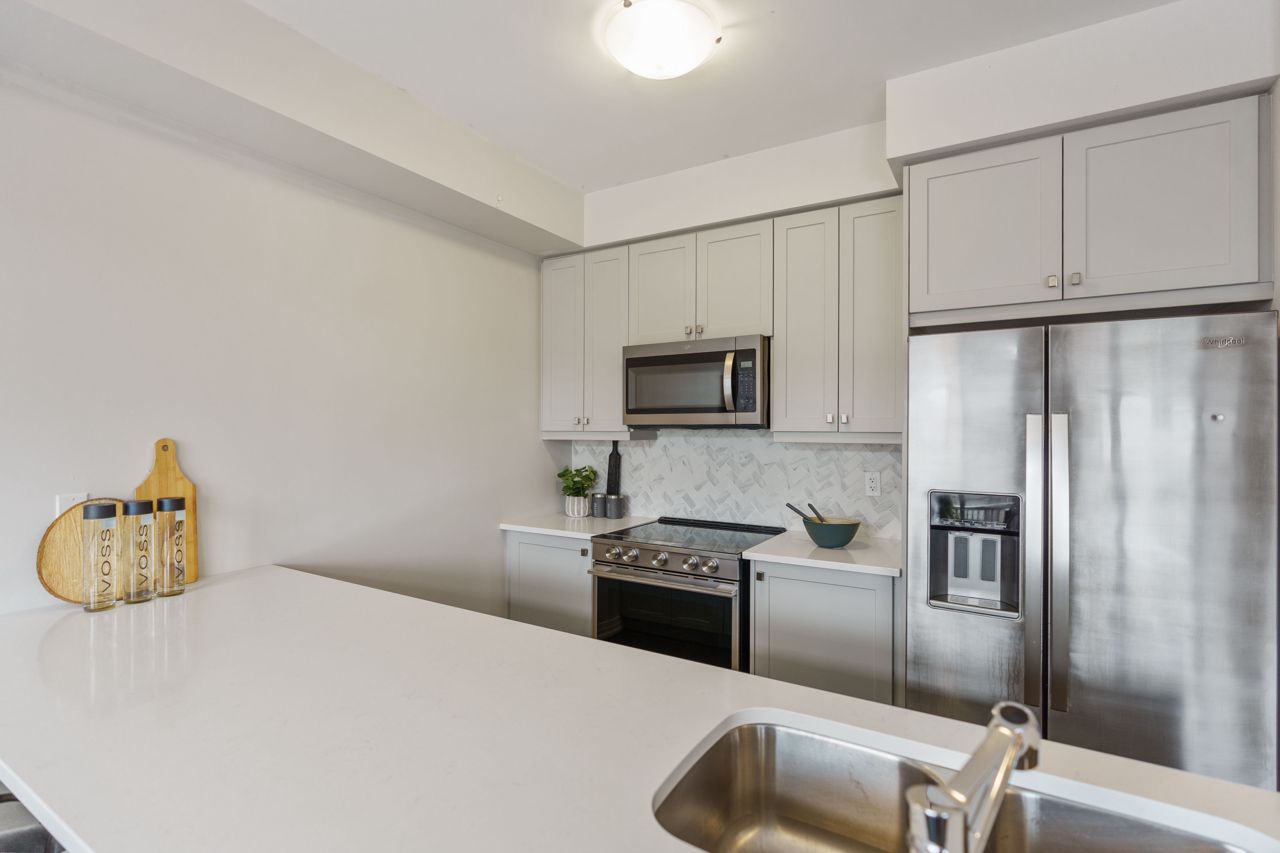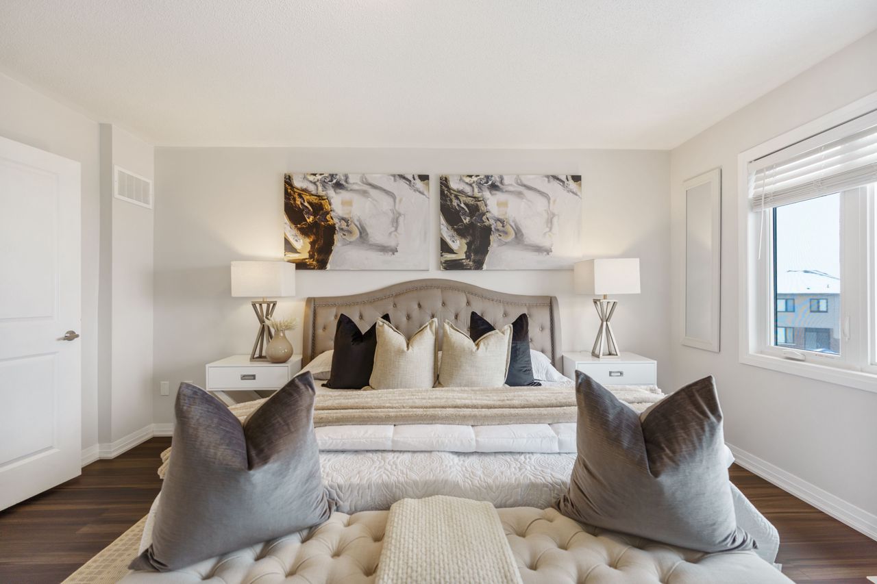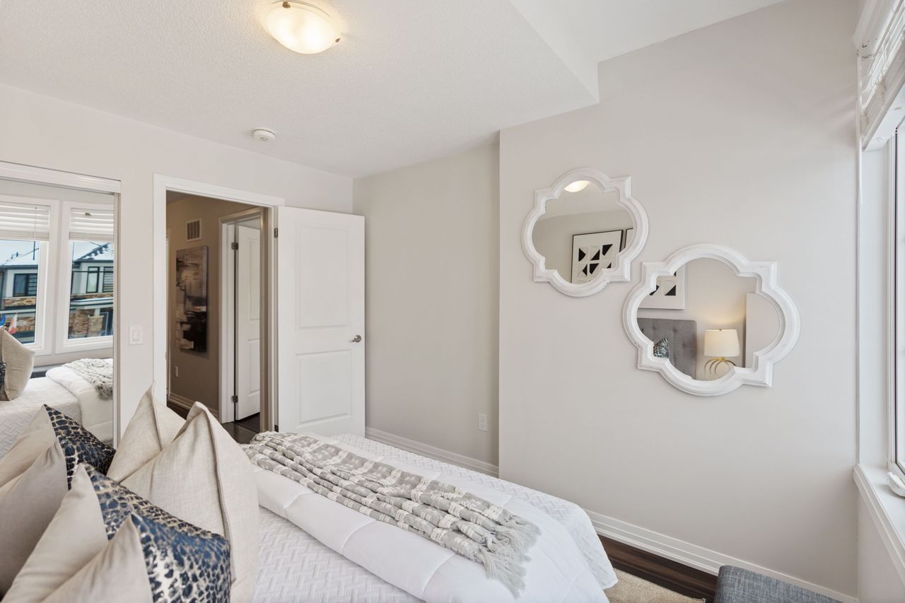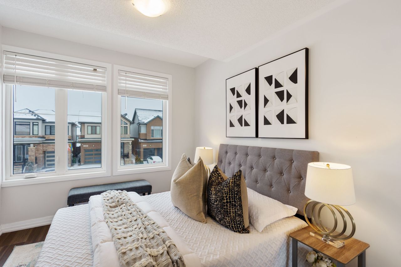 This gorgeous townhouse blends modern living with luxury upgrades, offering a perfect blend of comfort and style. The beautifully upgraded eat-in kitchen features extended quartz countertops, herringbone backsplash, built-in pantries, and direct garage access through a mudroom. A sliding door leads to a charming deck and backyard, ideal for outdoor living. The home boasts 9-ft ceilings and upgraded hardwood floors on the main level. Upstairs you will find 3 generously sized carpet free bedrooms. The primary bedroom suite includes a spa-inspired ensuite with double sinks, custom cabinetry, and a glass-enclosed shower. Two additional bedrooms are bright and spacious, and the den is perfect to use as a study or WFH office. With no condo fees, a well-maintained exterior, and a prime location in a vibrant community, this home is perfect for first-time buyers, young families, or those seeking to downsize. Don't miss this rare opportunity to own a gem in a highly sought-after neighbourhood!