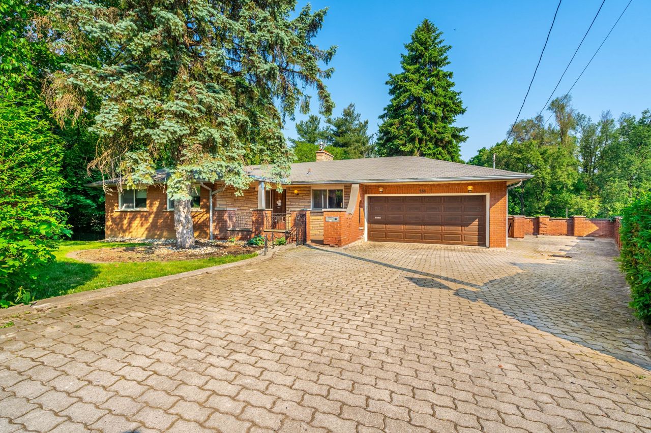 LOCATION,LOCATION,LOCATION! Welcome to this fantastic bungalow in Ancaster’s finest neighborhood, Oakhill! Set amongst multi-million-dollar homes, this is the perfect home to renovate or build new (plans available). This lot is an extremely private, extra-large sloped lot, 135ft wide at the front, 85ft wide at the back, 286ft deep on one side & 185ft deep on the other, w/ rolling hills & many mature trees allowing for a walkout basement. Double-wide interlocking brick driveway that easily fits 5 cars, & 2 car garage w/ inside entry to the house. The main floor has 3 bedrms, 4pc bathrm w/ ensuite privilege & access to the outdoor elevated deck, living rm w/ electric fireplace, updated eat-in kitchen w/ granite counters, etc (2015 by previous owner) w/ sliding glass doors to the large upper-level deck (Duradek). Downstairs there is a 4th bedrm, 3pc bathrm, family rm w/ wet bar, sauna/shower, laundry rm, workshop & large 4 season solarium w/ gas fireplace & walkout to the backyard patio.In-law suite potential. 1 house away from Somerset Park & 500m from the Spring Valley trail system so you’re surrounded by nature. 3 min drive to downtown Ancaster. 3 min drive to Morgan Firestone arena. Amazing opportunity! Don't miss out!