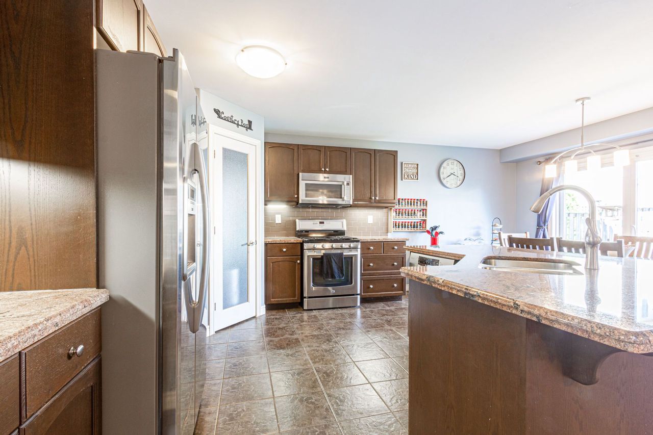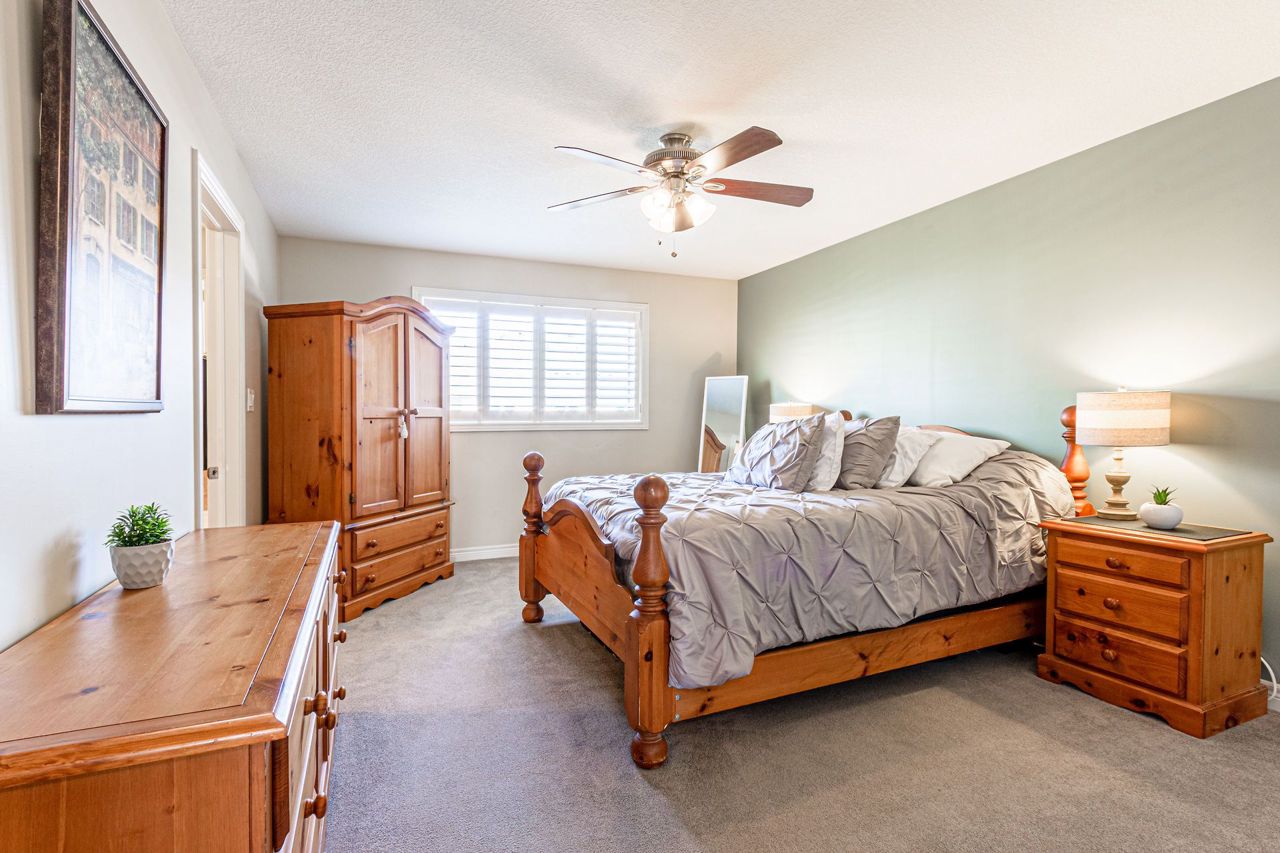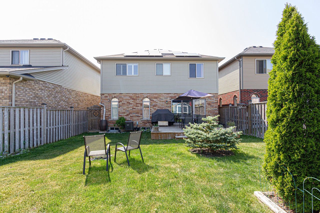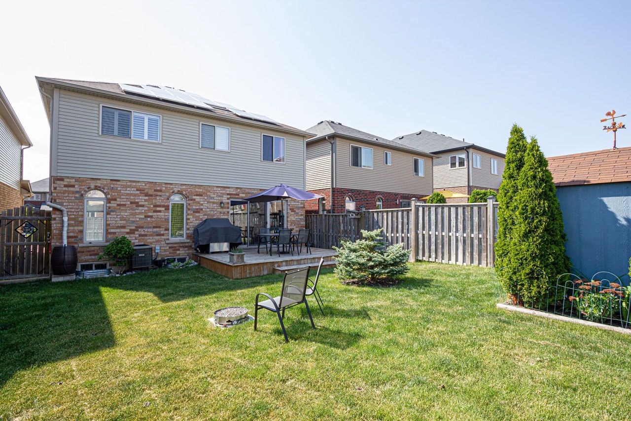Welcome to this Losani home w/1986 square feet & finished basement. This 4+1 bedroom in a great family friendly neighbourhood offers family room with hardwood floors (’20), large eat-in kitchen with granite counters, ample cupboards, stainless steel appliances (dishwasher 2021), walk-in pantry, island, walkout to yard, central vac, and double garage. Sun-filled master bedroom is complete with a 4pc ensuite & spacious walk-in closet. Additional large bedrooms contain double door closets and of course a 4pc bath to share. Upper level laundry offers convenience and loft space is perfect for a home office or play area. The fully finished basement offers a recreation room, additional large bedroom, and 2pc bath. Carpet & California shutters installed in 2022. Fully fenced backyard with deck, shed and fire pit. Located close to schools, shopping, park w/splash pad, golf, and many amenities. Easy access to major roadways/highways. Book a showing and see how magnificent this home really is!RSS Solar are currently leasing the solar panels from Seller. Income Generating. Contracts available upon request.