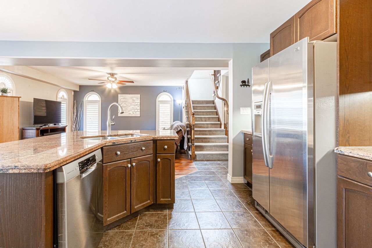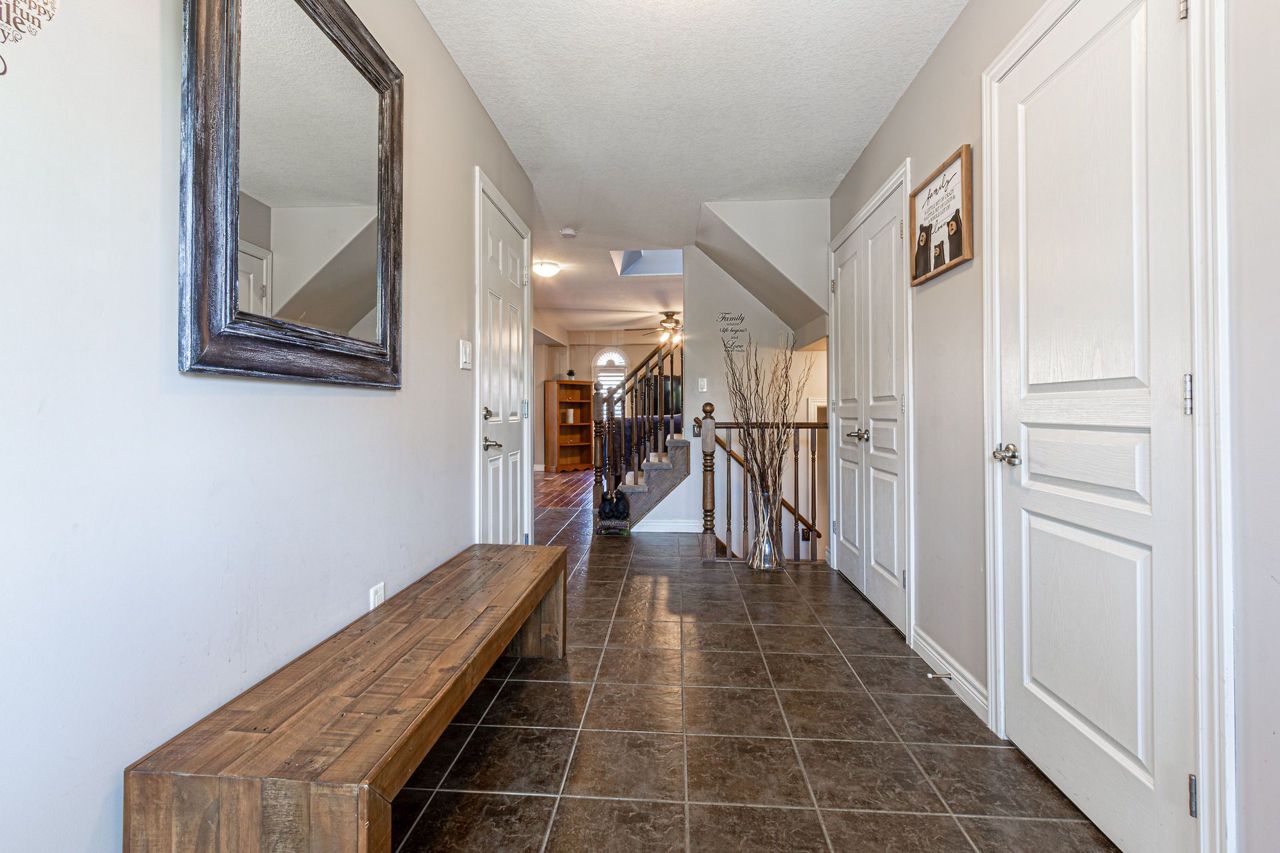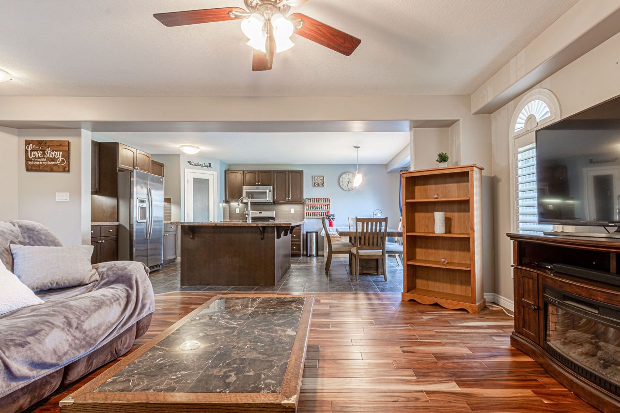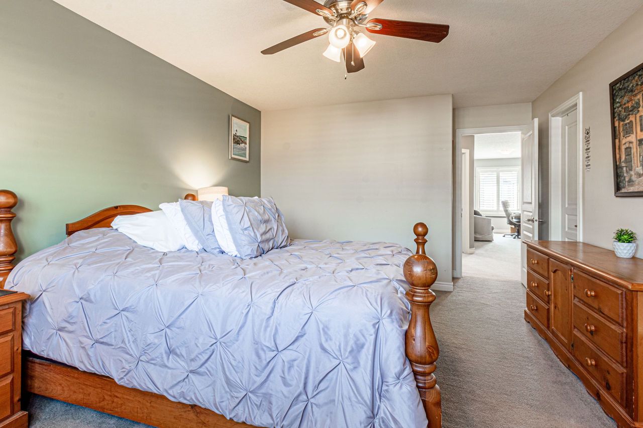 Welcome to this Losani home w/1986 square feet & finished basement. This 4+1 bedroom in a great family friendly neighbourhood offers family room with hardwood floors (’20), large eat-in kitchen with granite counters, ample cupboards, stainless steel appliances (dishwasher 2021), walk-in pantry, island, walkout to yard, central vac, and double garage. Sun-filled master bedroom is complete with a 4pc ensuite & spacious walk-in closet. Additional large bedrooms contain double door closets and of course a 4pc bath to share. Upper level laundry offers convenience and loft space is perfect for a home office or play area. The fully finished basement offers a recreation room, additional large bedroom, and 2pc bath. Carpet & California shutters installed in 2022. Fully fenced backyard with deck, shed and fire pit. Located close to schools, shopping, park w/splash pad, golf, and many amenities. Easy access to major roadways/highways. Book a showing and see how magnificent this home really is!RSS Solar are currently leasing the solar panels from Seller. Income Generating. Contracts available upon request.
