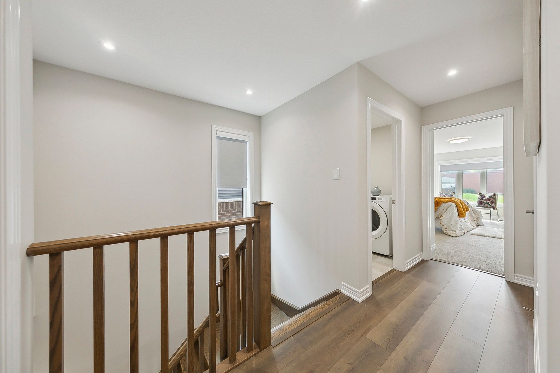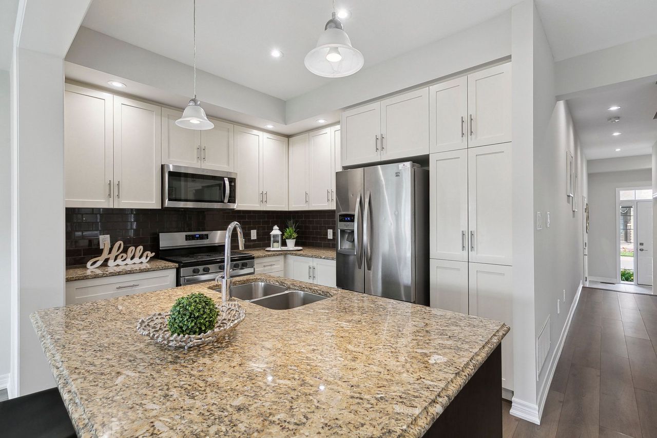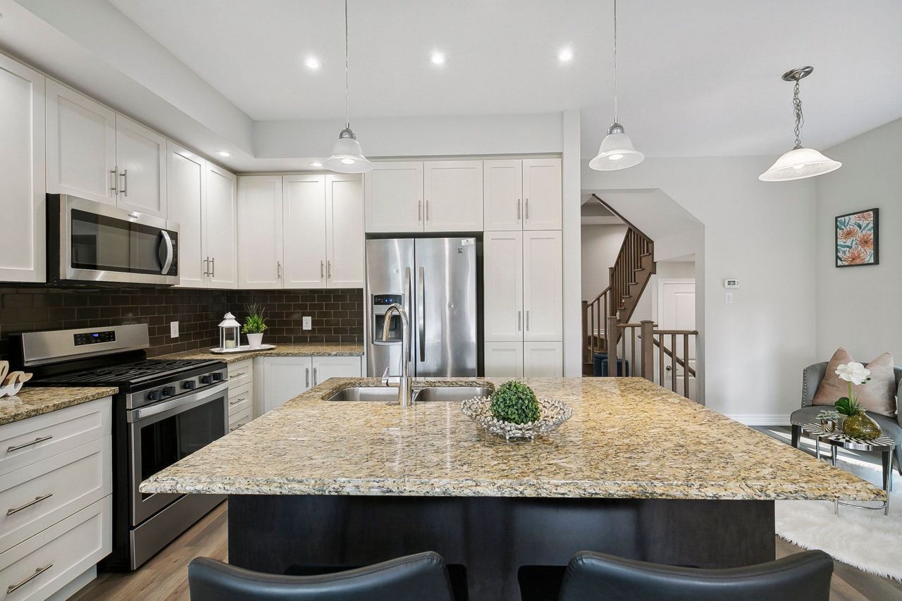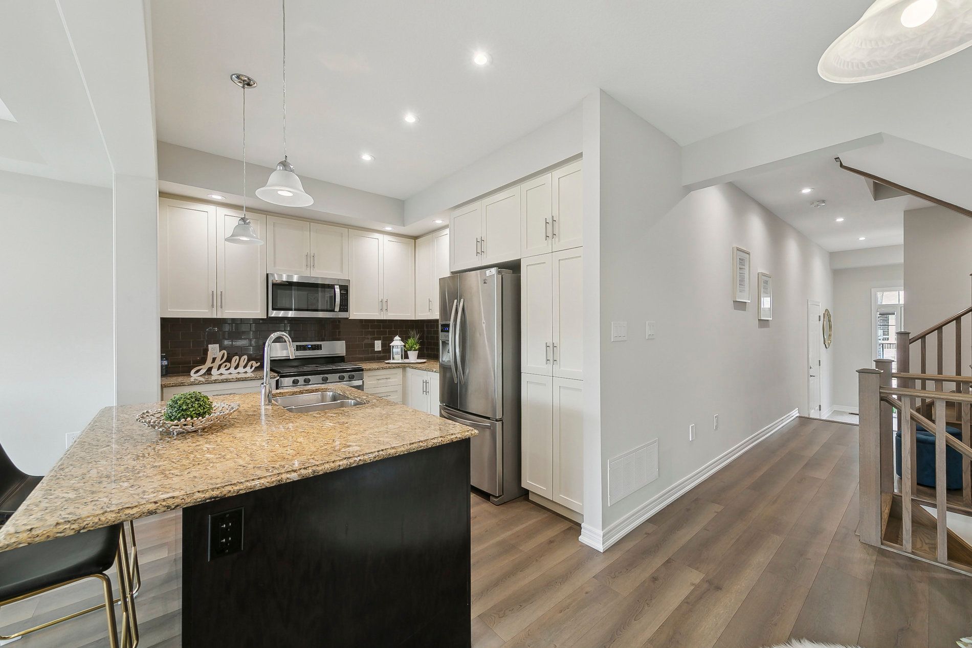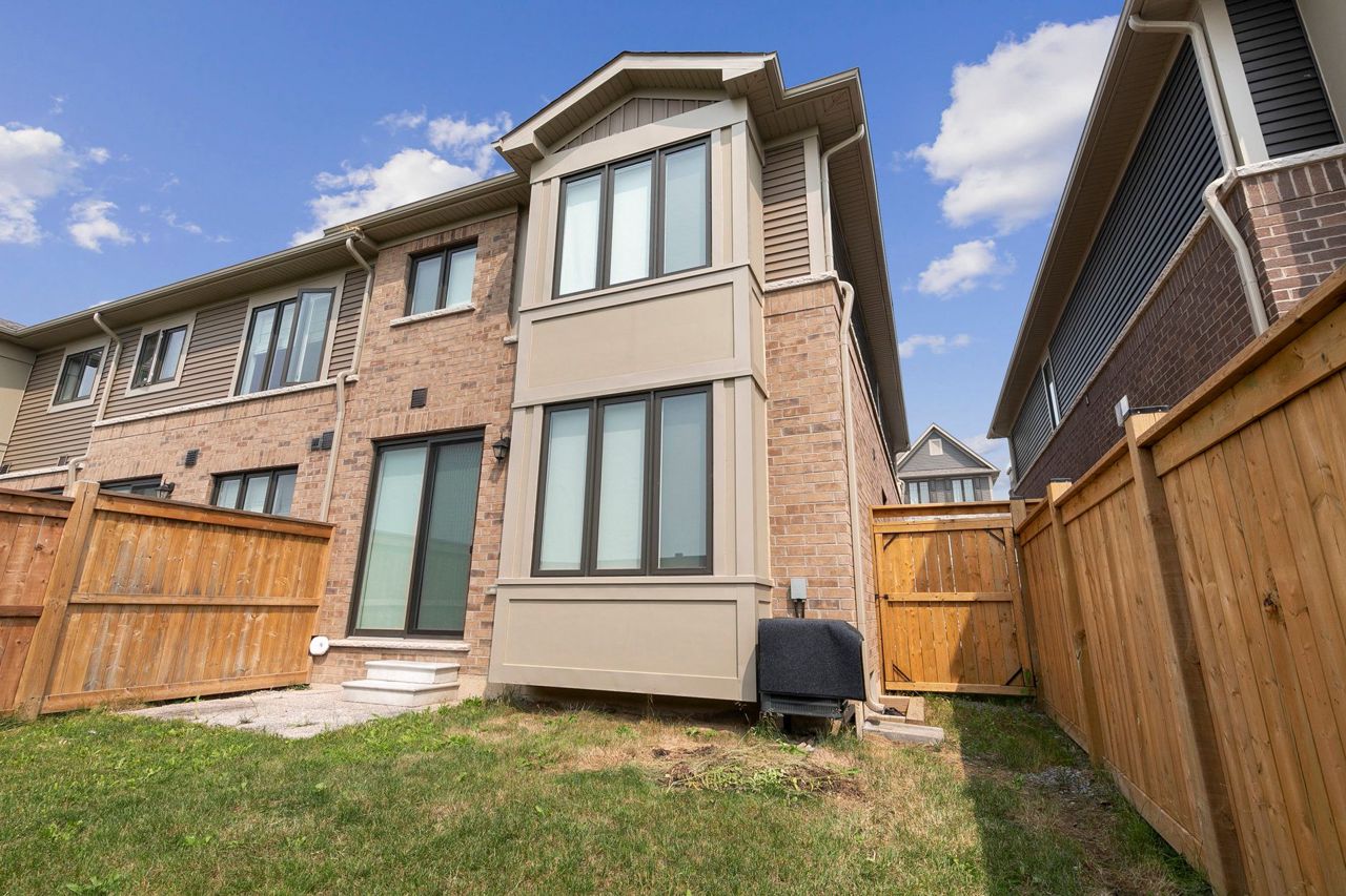 Gorgeous, Spacious End Unit Townhome in Family-Friendly Hamilton Neighbourhood. Bright, Upgraded Home w/Grand Foyer & Double Closet w/Mirror and Light. Modern Laminate Floors on Main Floor and Upper Hallway. Hardwood Stairs. Beautiful Kitchen w/Stone Counters, Backsplash, Stainless Steel Appliances (Gas Stove & Built-in Microwave) and Centre Island w/Breakfast Bar. Upgraded Vanity in Powder Room. Pot Lights on Main Floor and Modern Light Fixtures Throughout. Convenient 2nd Floor Laundry Room. 3 Spacious Bedrooms. Huge Primary Bedroom w/Large Walk-in Closet and 3 Piece Ensuite w/Glass Shower and Large Vanity. 2nd Bedroom w/Walk-in Closet. All Bathrooms w/Upgraded Countertops. Private Fenced Yard w/No Rear Neighbours. Full, Unspoiled Basement w/Large Windows for Your Personal Touches. Excellent Location Close To Schools, Parks, Major Highways and All Amenities!