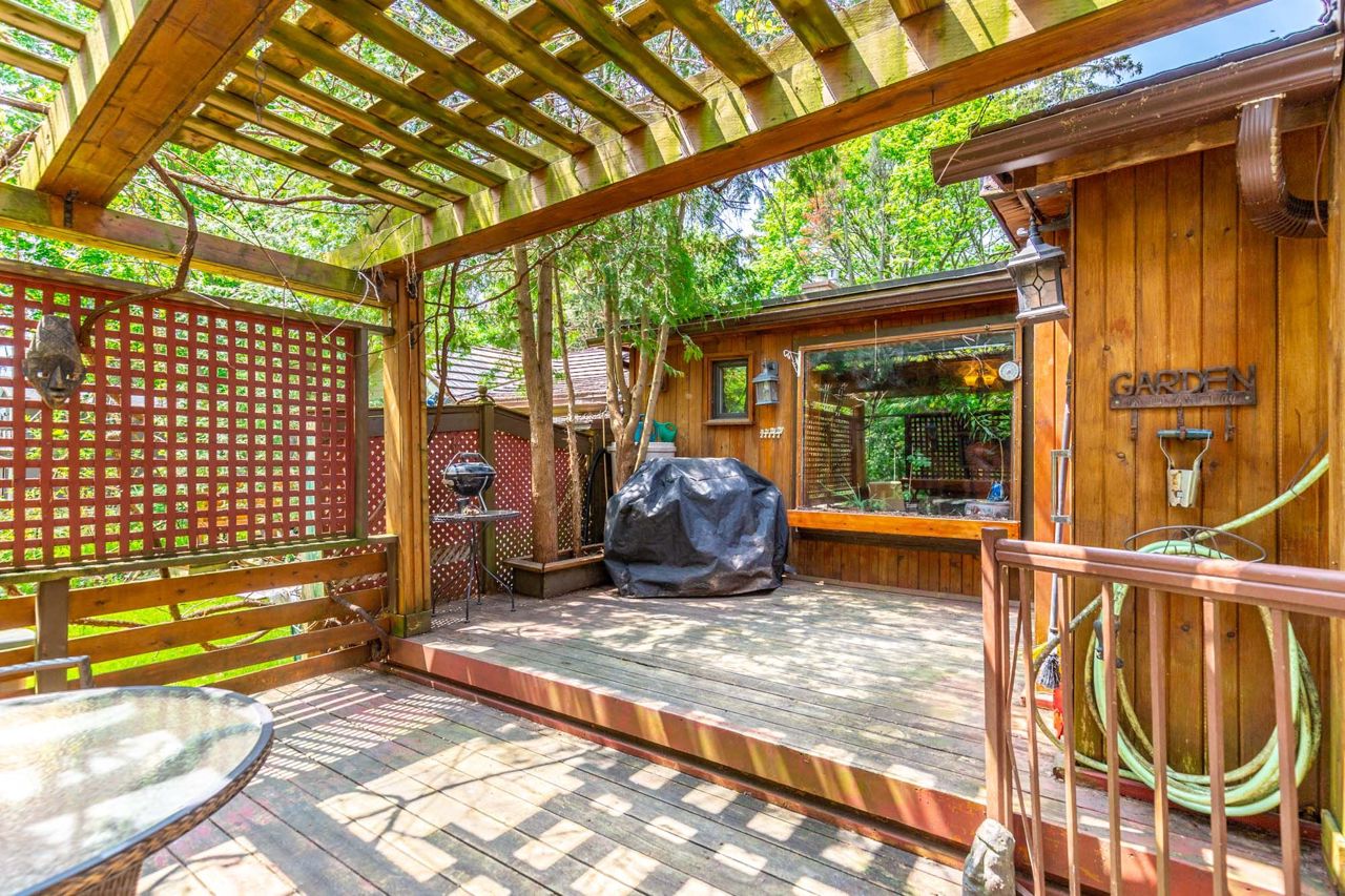 Welcome to 45 Park Avenue. This beautiful, spacious bungalow sits on nearly half an acre gorgeous property located in the heart of Greensville, directly across the street from Bullocks Corner's Park. The main floor consists of open and bright living room and dining room, updated kitchen with stainless steel appliances, gorgeous cottage feel family room with gas fireplace, two spacious bedrooms and 2 full bathrooms. Enjoy the freedom of your quiet outdoor space, with mature trees, beautiful gardens and covered deck. The garage has been converted into a full separate one bedroom unit perfect for passive income, in-laws or Airbnb opportunity. If you are looking for the perfect quiet country home that is just minutes from everything the city has to offer, this property is for you! Don't miss out, call to book your private showing today.