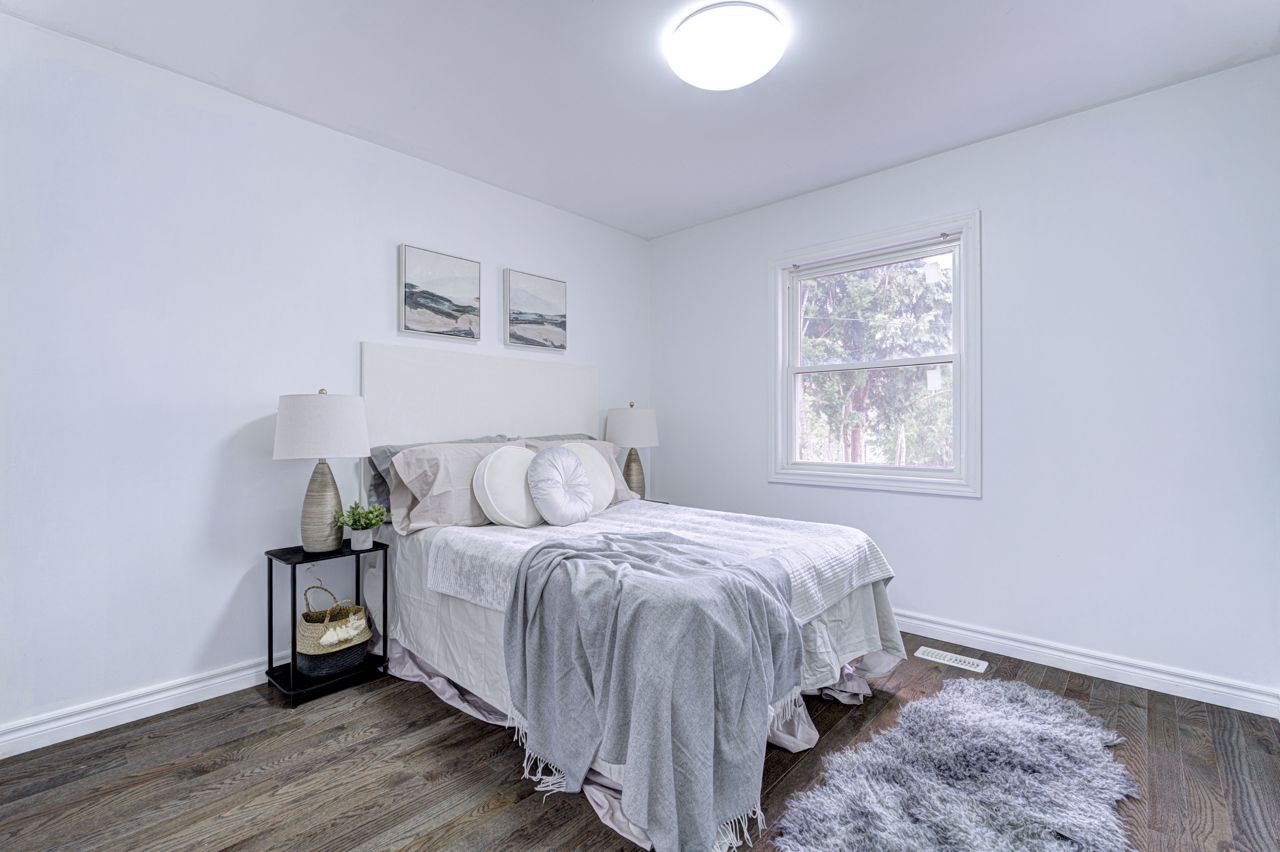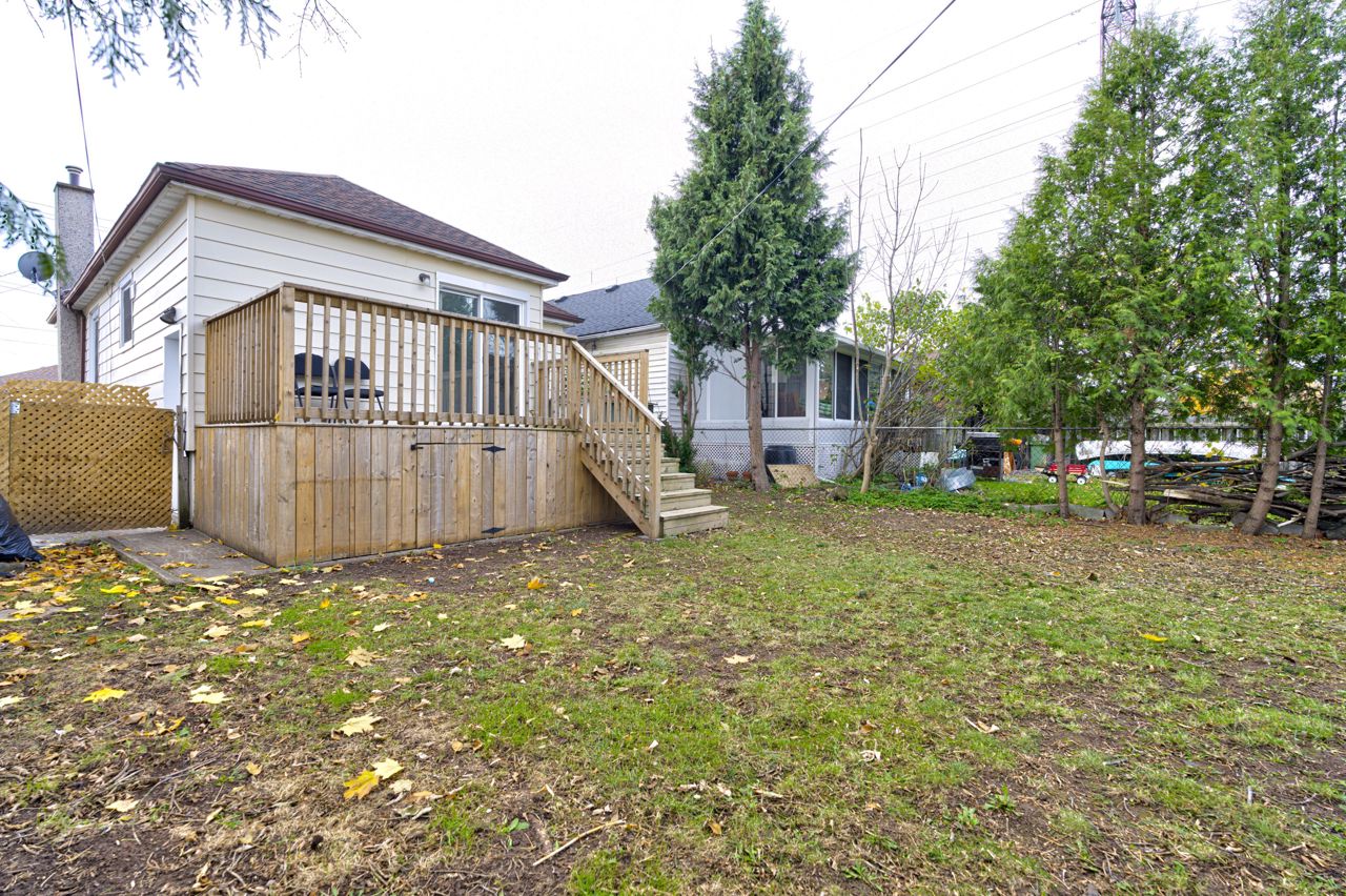 Welcome to this beautiful home featuring a modern kitchen and spacious outdoor deck. Step into a bright, open kitchen with a new quartz countertop, complete with sleek stainless steel appliances, crisp white cabinetry, and a stylish back splash. The kitchen offers ample storage, and a generous lay out, making it ideal for cooking and entertaining. Large sliding glass door leads to a backyard deck, perfect for relaxation. The deck overlooks a peaceful tree-lined yard, with plenty of space for gardening and family gatherings. The home boasts rich hardwood flooring that adds warmth and character, seamlessly blending with the contemporary finishes throughout. It is also equipped with 2 good sized bedrooms as well as a seperate entrance that leads to a spacious basement. The home combines contemporary upgrades with cozy charm, making it an ideal choice for first time home buyers or investors. Don't miss your chance to make this inviting property your new home! **EXTRAS** AC, FURNACE, HWT are all owned (not rented).