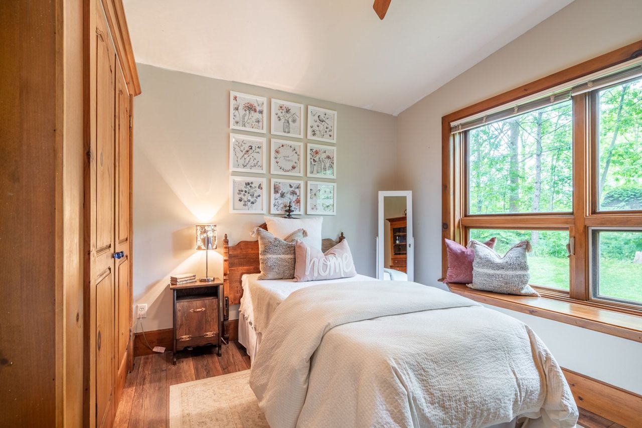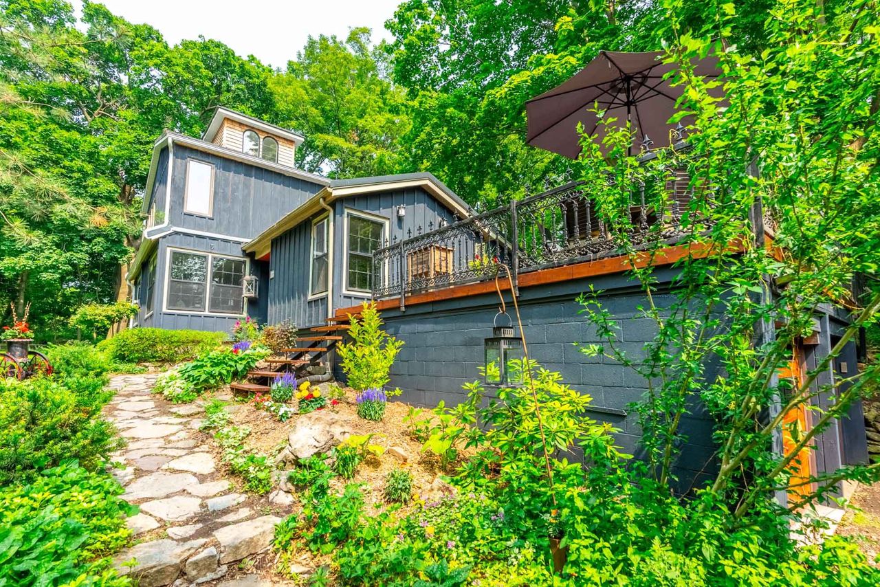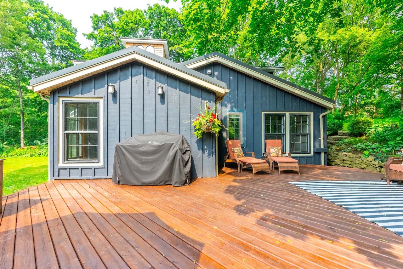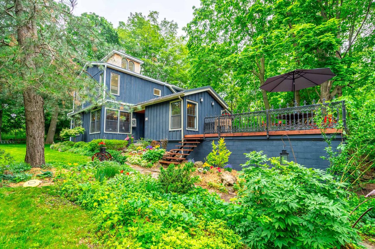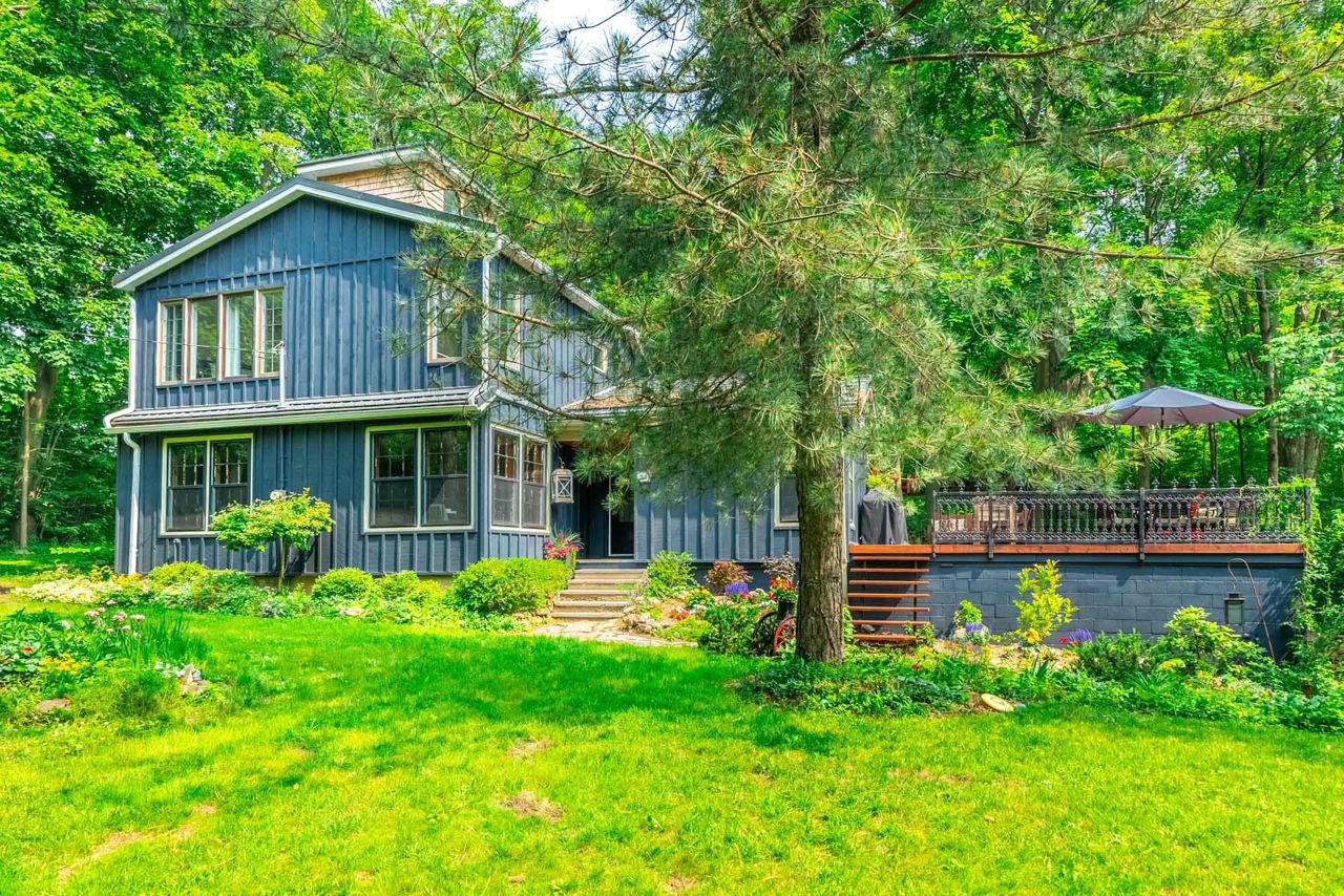 Cottage style home on a 145'x250' private dead end street. Cross the bridge into your own private driveway overlooking a 20 ft waterfall. It features a large great room with wood burning fireplace and an abundance of natural light, an updated country kitchen with quartz countertops and built-in appliances, a separate den and office, newly renovated main floor 3 piece bath, as well as a breakfast dining area with exposed beams. On the upper level is a primary bedroom with built-in wardrobes and stunning newly renovated ensuite. You will also find 2 generous sized rooms and a renovated main bath. This home has had extensive renos over the past few years making this a turn key solution. Additional features are a historic 150 foot dry stone fence, a deck large enough to host parties, a double car tandem garage, a massive pond on the perimeter of this property. Gorgeous property is a 2 min walk to the Bruce Trail path and 3 mins walking distance to downtown Waterdown. Lets get you home!