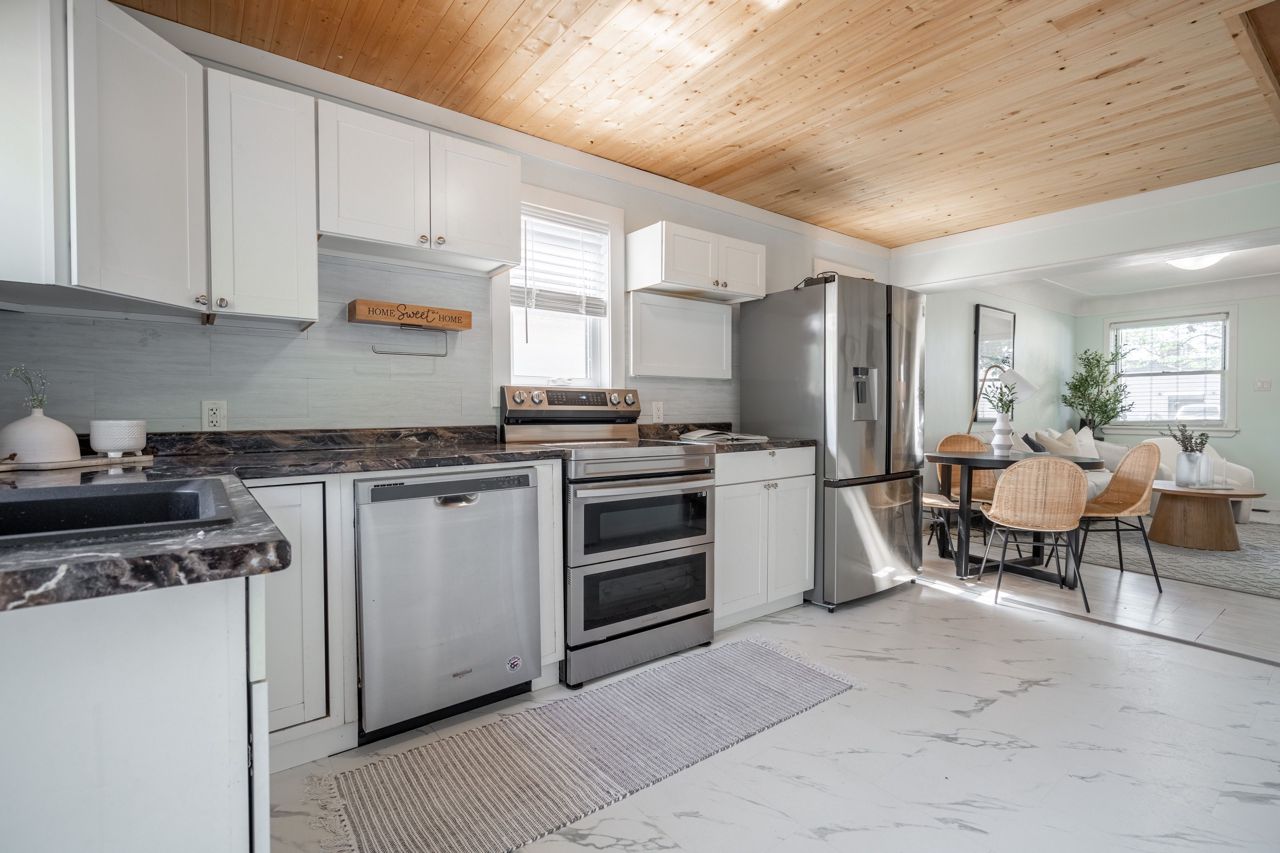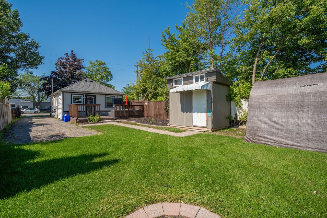 Beautifully updated and lovingly maintained 2 bed, 1 bath bungalow in East Hamilton, close to shops and schools with easy highway access. Perfect for those looking for a move-in ready & low maintenance yet affordable detached home with a stunning backyard for enjoying the summer weather. Bright white kitchen with new stainless steel appliances and an oak-wood ceiling that adds warmth and character to the space. Newly renovated 4 piece bathroom with a professionally tiled shower and bath. The long driveway fits 4 or more cars and leads to the fully fenced landscaped yard with a tree-lined perimeter, newer deck and a shed. This home is a great investment that you don't want to miss!