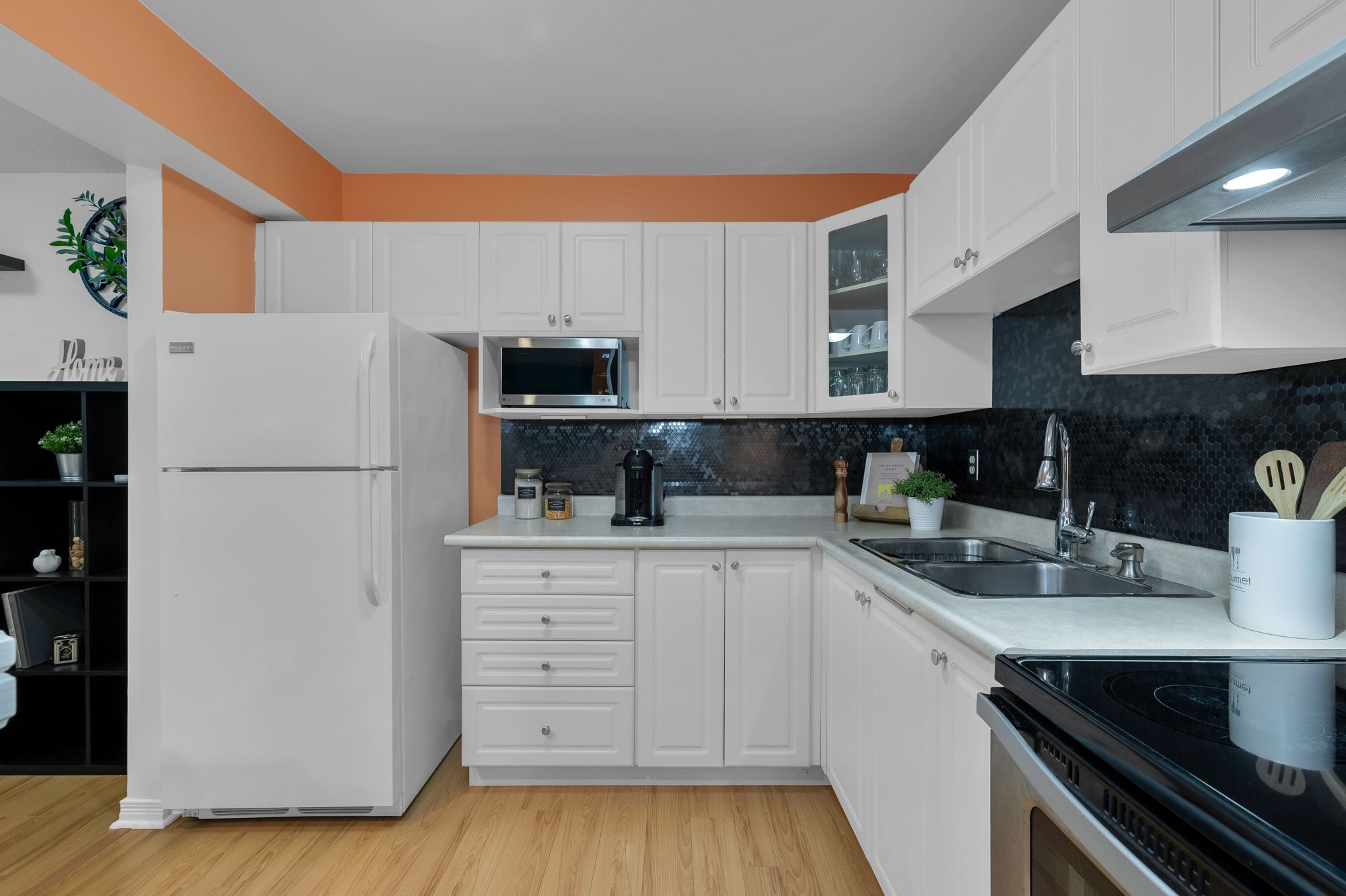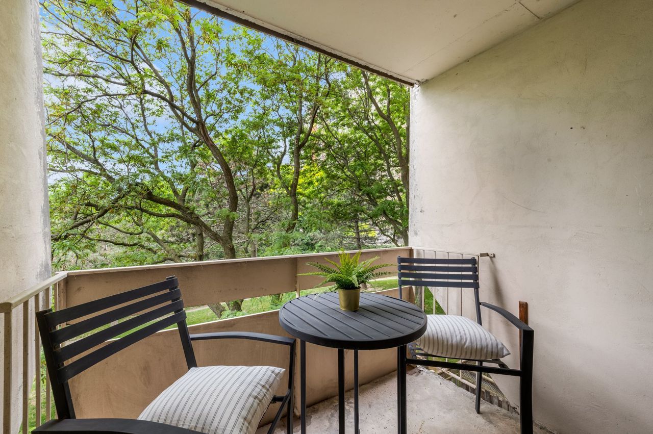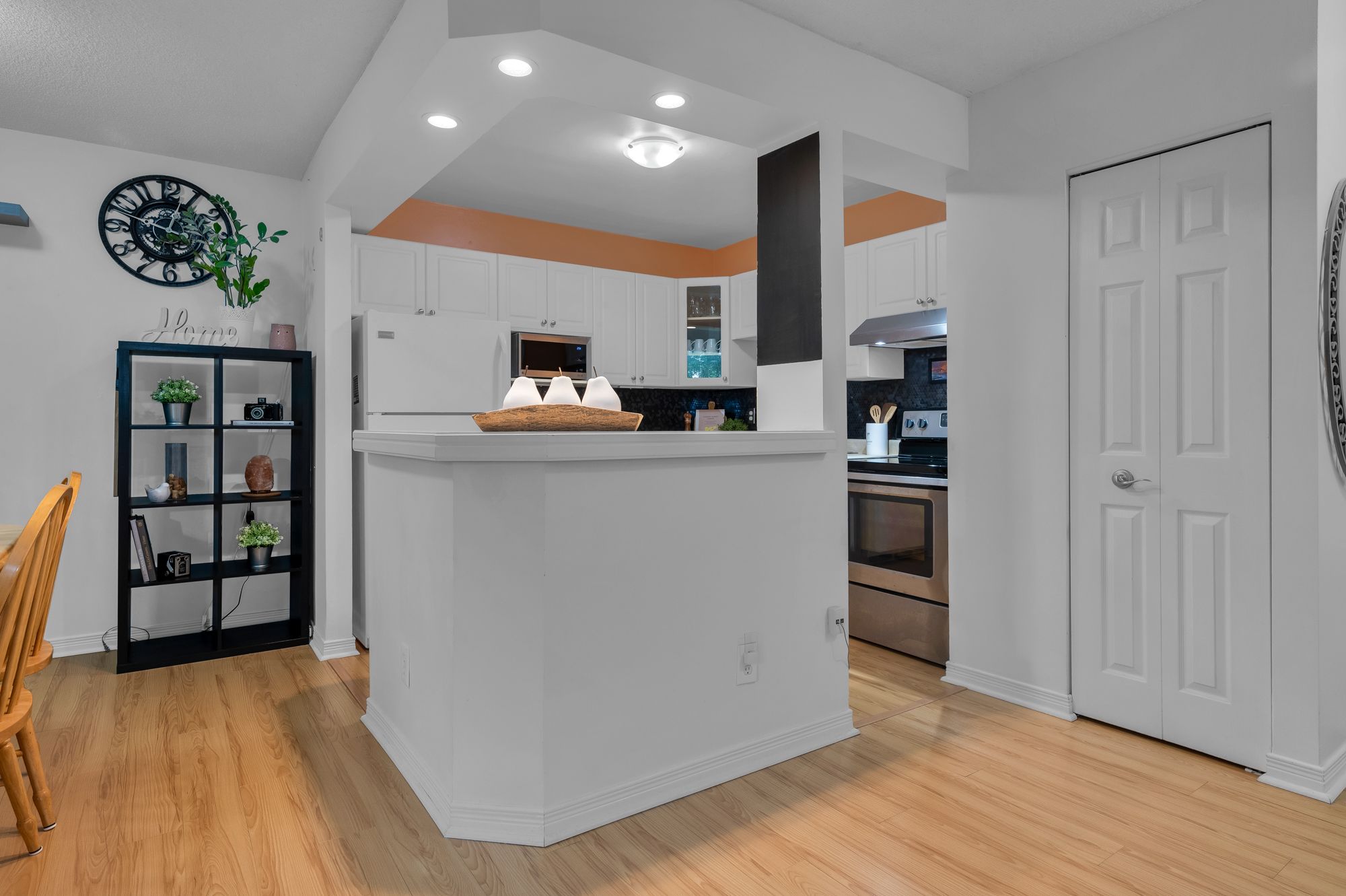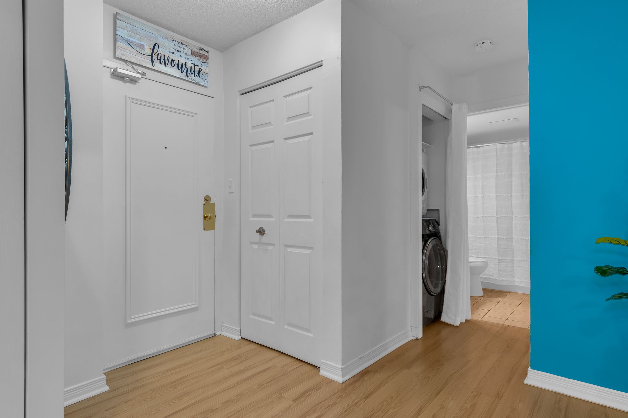 Attn: First Time Home Buyers & Downsizers!! Perfectly situated next to all major amenities including Eastgate Mall, steps to public transit, mins to hwy access, Confederation Beach, and to upcoming GO Station, this cozy 1 bdrm end-unit condo is a MUST SEE! Offering an open concept floorplan flooded with natural lighting from large windows w/ scenic park views throughout, spacious kitchen w/ large island overlooking main living areas, separate dining area providing access to the balcony with tree lined privacy & forest-like views, a spacious bdrm w/ large window, in-suite laundry and 4pc bath! Convenient surface parking directly outside building and a well-lit path leading direct to Henry & Beatrice Warden Park (currently being updated with many improvements)! Building amenities including: Bike room w/ key access, well equipped Gym, Sauna, Pay-Per-Use Laundry, & visitor parking! Condo fees include: Building Insurance, Common Elements, Heat, Water & 1 Parking spot. Don't miss out!