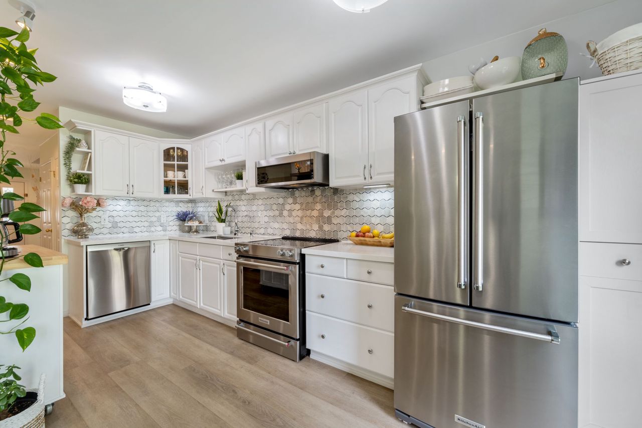 Move-In Ready! This detached 3-bedroom home was fully renovated in 2022, including a new owned hot water tank, furnace, AC, and Ecobee thermostat! The bright, open concept main level features new wide plank luxury vinyl flooring, crown moulding, and recessed lighting. The spacious living and dining rooms are ideal for entertaining. The kitchen features high-end stainless steel KitchenAid appliances, quartz countertops and a gorgeous stone backsplash. There are also quartz countertops in the powder room and the family bathroom, which boasts double vanity and an overall spa-like feel. Three generous sized bedrooms offer ample closet space, including two walk-ins! Professionally hardscaped, enjoy a low maintenance stamped concrete driveway and rear patio with pergola overlooking your private rear yard. Located in Hamilton’s Parkview neighbourhood close to multiple parks, the lake, and major commuter routes. A lovely package!