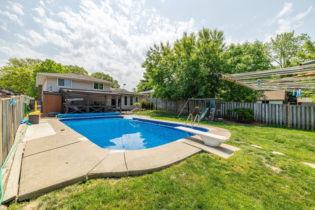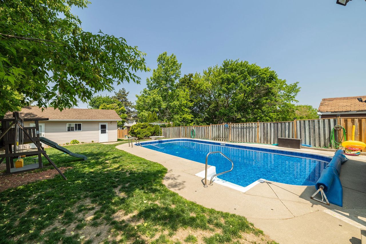 Discover contemporary living in this partially renovated side split home at 79 Britten Close, Hamilton. With 3+1 bedrooms and 2 baths, it offers ample space for your family. The spacious entry level has a bright and airy family room that connects to the inviting backyard that has spaces perfect for the whole family. The heated in-ground pool has a new liner, heater and pump ensuring years of hassle-free enjoyment. The main level’s fully updated kitchen showcases new cabinets, countertops, and a stylish backsplash. Gather in the adjacent dining and living areas, filled with natural light. Three comfortable bedrooms and a newly renovated 4-piece bathroom complete this level. The fully finished basement offers versatility with a full kitchen, dining space, recreation room, bedroom, and full bathroom. This exceptional home provides comfort, convenience, and customization options. Don't miss out on this exceptional home!