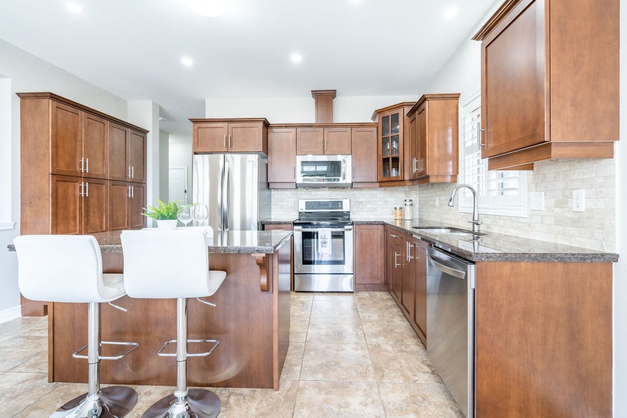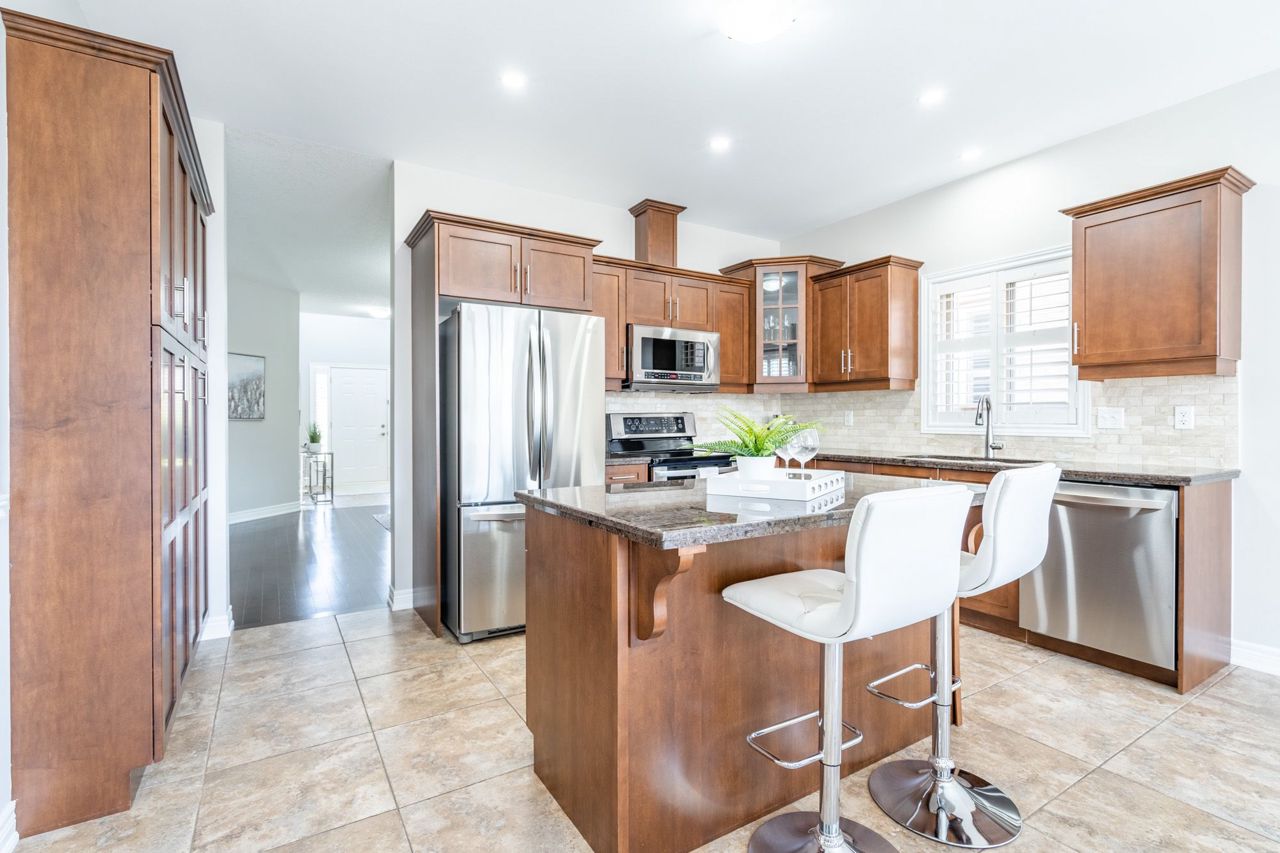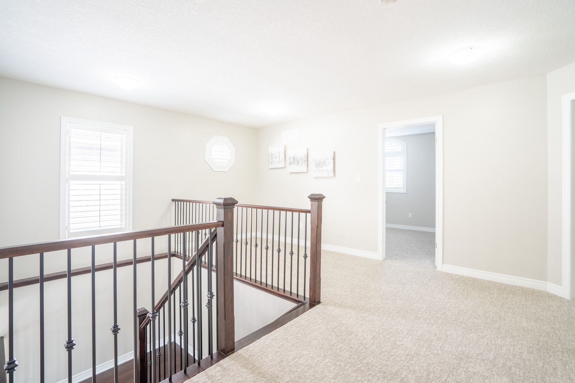 Stunning, well cared for 4-bdrm, 2-story home nestled in quiet cul-de-sac on Hamilton mountain. Prime area close to all amenities, shopping, schools & public transit. Great location for commuters! Tasteful décor throughout. Double-wide concrete driveway (2017) & steel roof (2018 w/ 50 year warranty). Bright foyer & interior access from double car garage. Oak hardwood & ceramic tile throughout main floor, gas fp in living room, LED pot lights in kitchen & living room (2022). Open concept main floor features maple cabinetry w/ ample amount of cabinet space, island, stone backsplash, & granite countertops. Separate dining area. Sliding doors from kitchen lead to professionally landscaped backyard (2017) w/ interlock stone & no rear neighbours. Master bdrm includes walk-in closet & ensuite bathroom. Upper level has 4 bdrms w/ additional loft & 4-pc bath. Brand new luxury carpet just installed on this entire second level. Basement is not finished & can be transformed to your liking.Home is TURN KEY. Nothing to do but move in and ENJOY!!