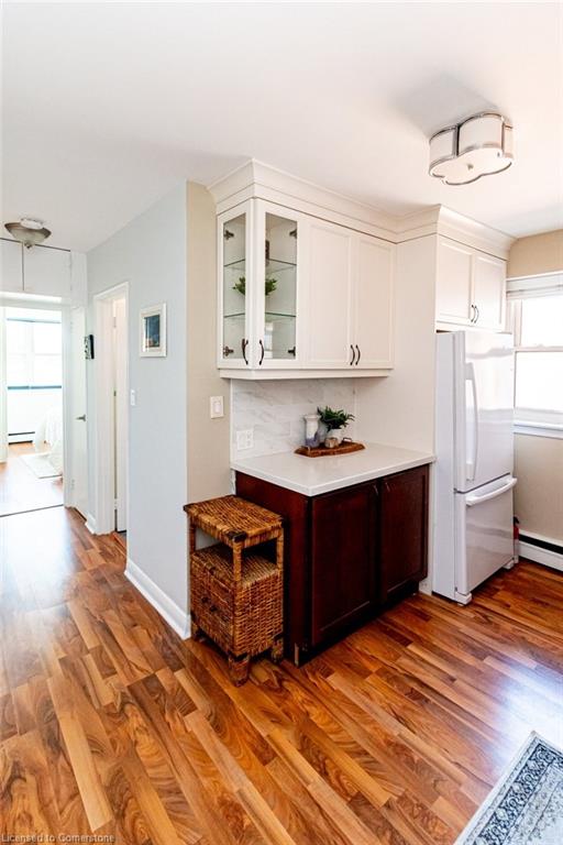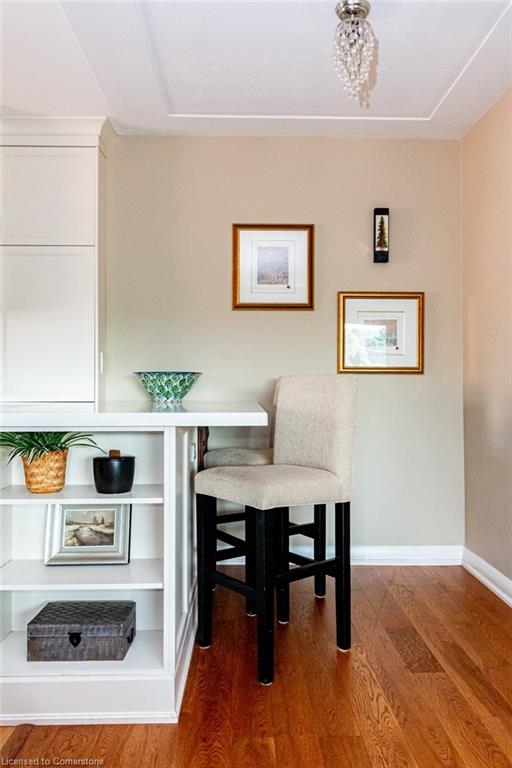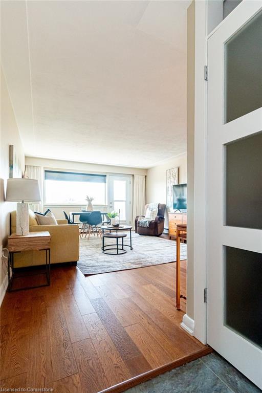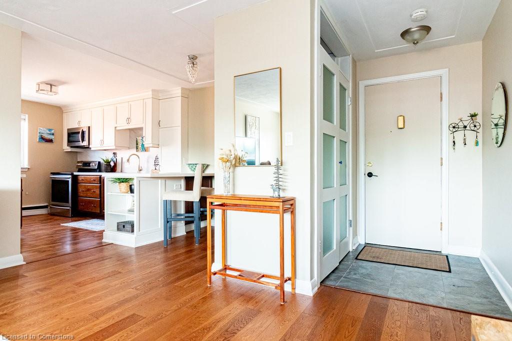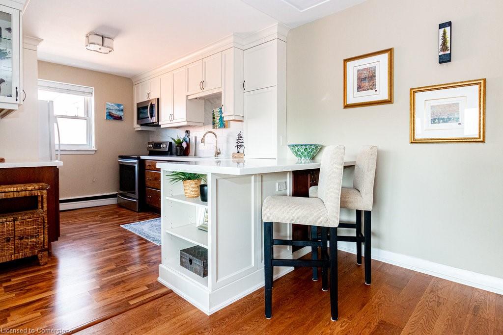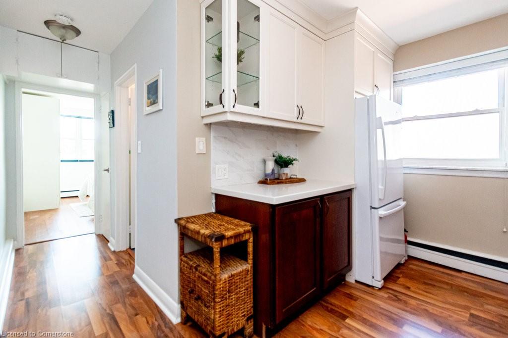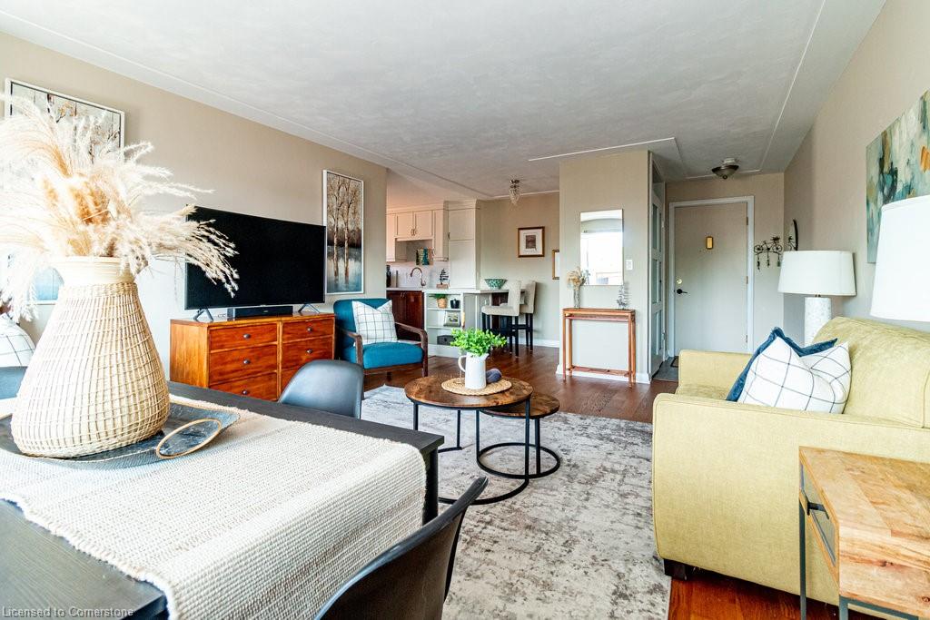 Move in ready one bedroom co-op apartment in well maintained co-operative. Superb location steps to University Gardens Plaza and with easy access to downtown Dundas, Ancaster and West Hamilton. Open concept living and dining room, tastefully renovated kitchen with breakfast bar, spacious bedroom with ample closet space and bright 4 pc. bath. West facing open balcony is a welcome feature and offers sunset views! Off street parking for one car. Very well maintained and cared for apartment. Super opportunity.