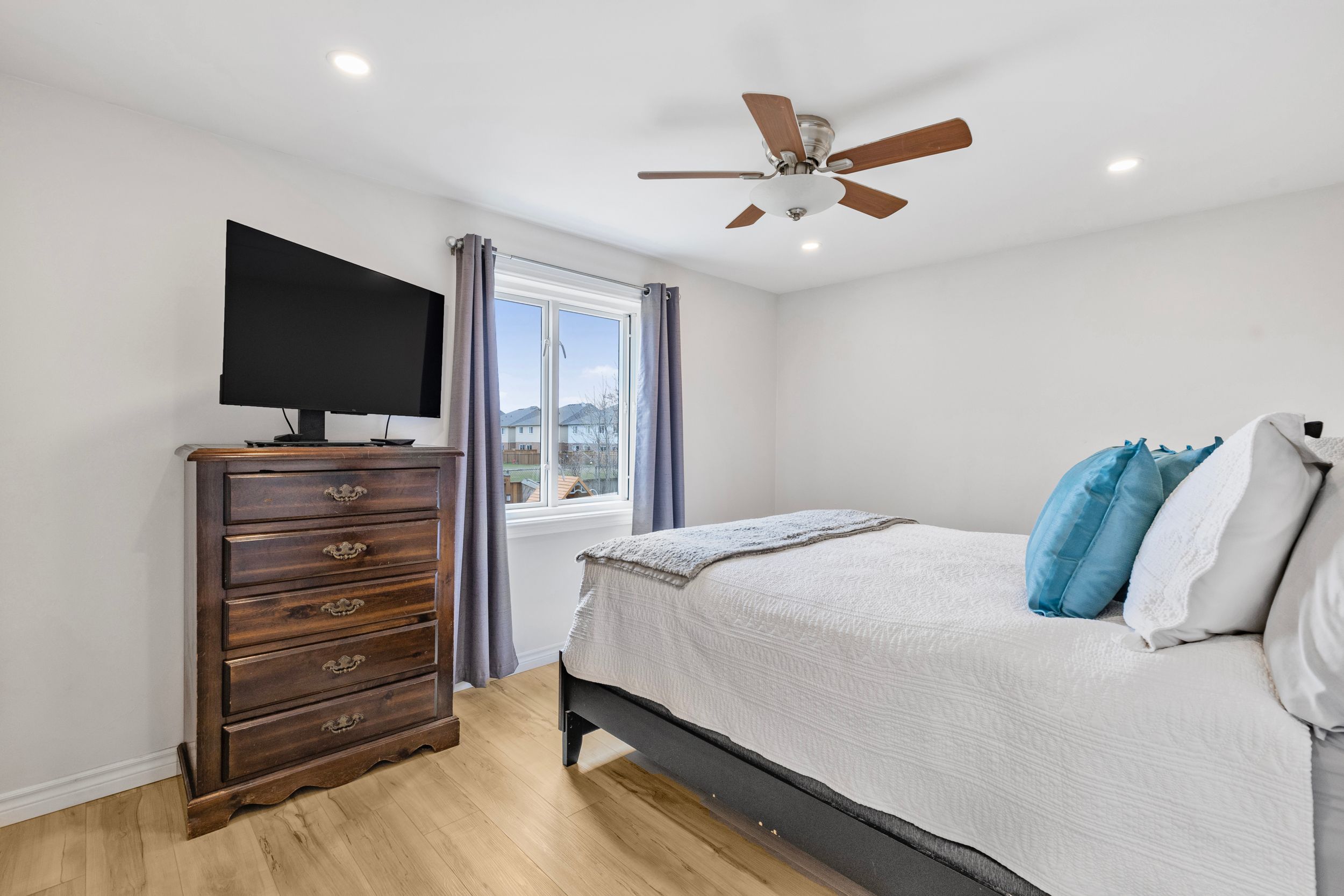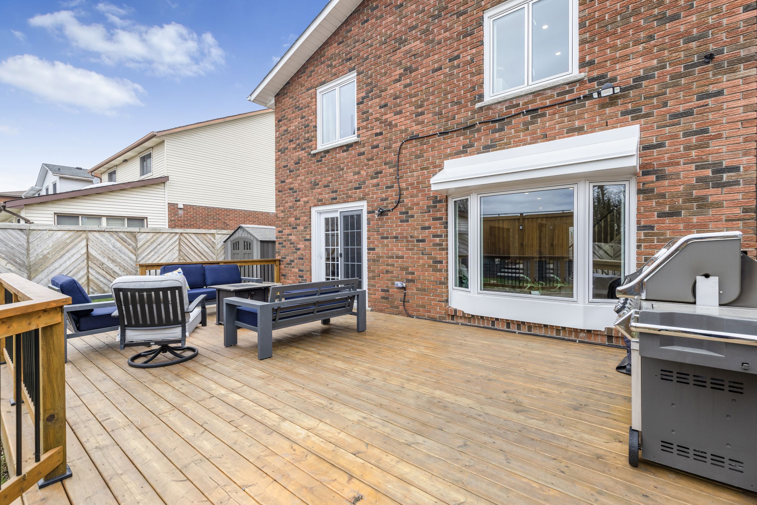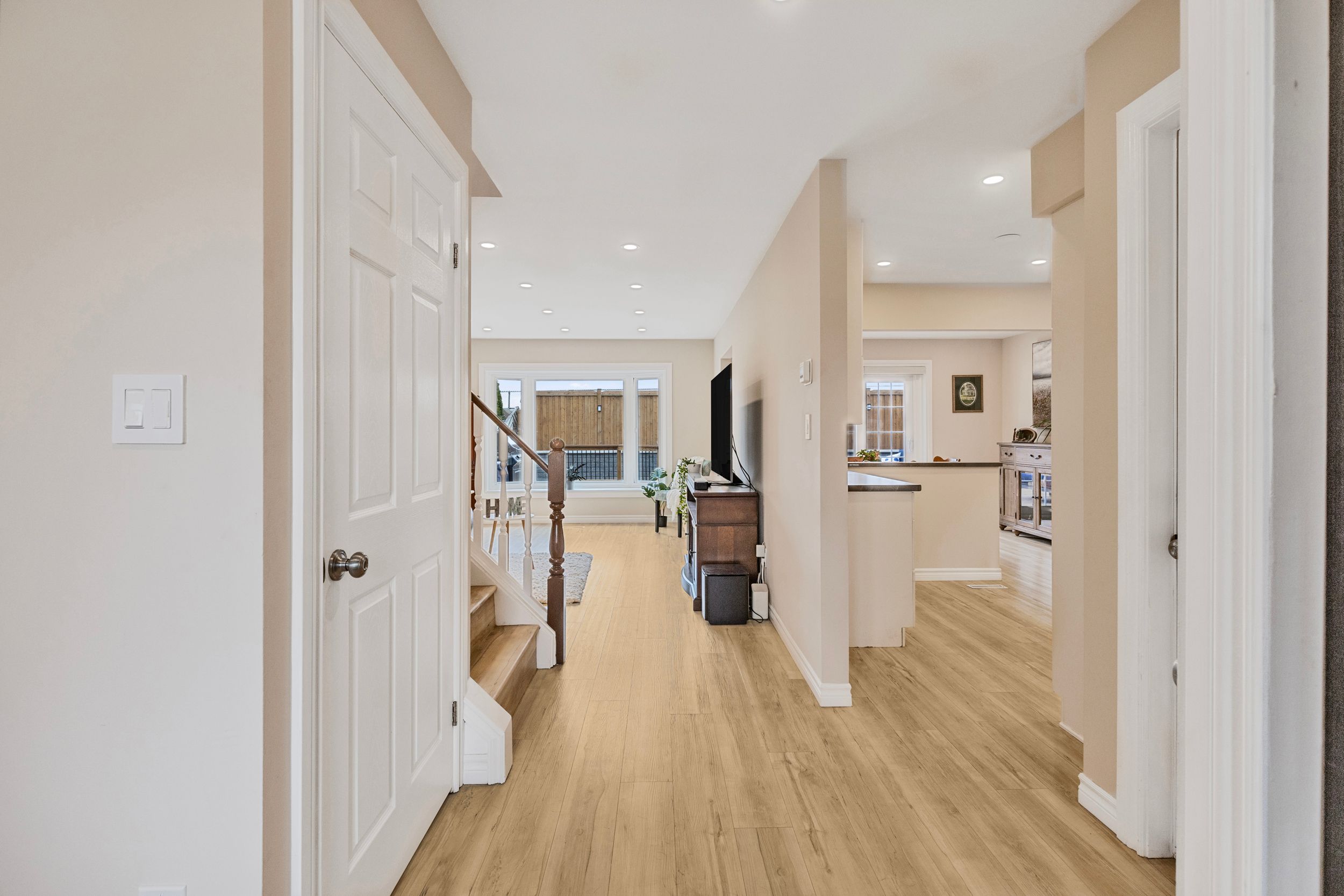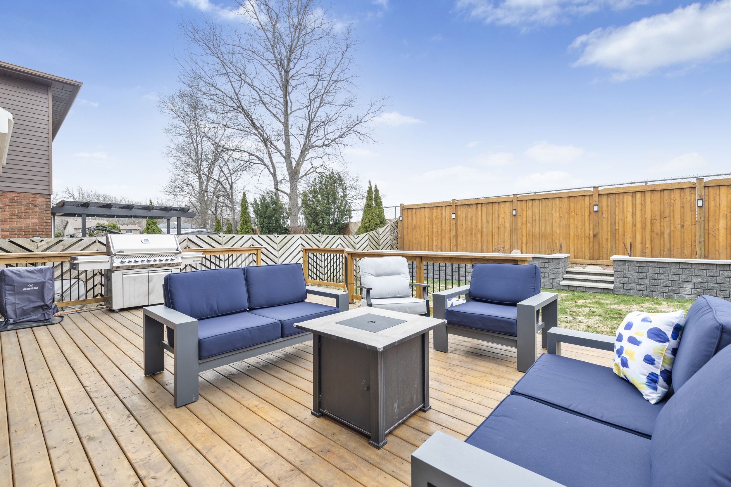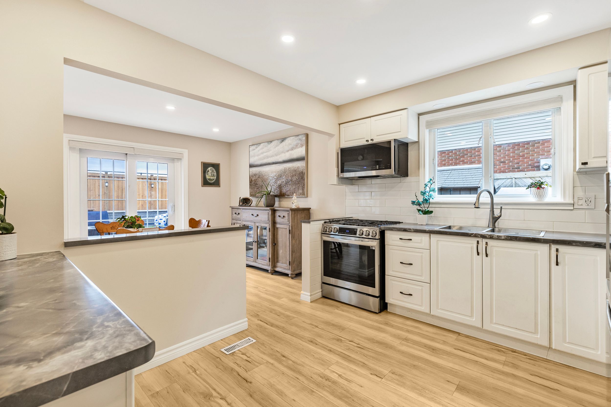 Welcome to 99 Pinewarbler Drive, a meticulously renovated 3-bedroom, 3-bathroom gem located in the sought-after Birdlands neighborhood of Bruleville, Hamilton (Hamilton Mountain). This stunning home blends modern luxury with everyday functionality, offering a move-in-ready lifestyle with high-end finishes and thoughtful upgrades throughout. Step inside to discover vinyl flooring on both the main and upper levels, freshly painted interiors, and no popcorn ceilings. Windows have been completely upgraded to Magic Windows with integrated blinds and screens. The home is illuminated by pot lights throughout, giving each space a bright, contemporary feel.The custom kitchen is a showstopper featuring stainless steel appliances, a gas range, top-of-the-line dishwasher, microwave, and French-door refrigerator, perfect for culinary enthusiasts. The laundry area boasts a new LG washer and dryer. Brand-new door from the garage to the house and a new front storm door for added convenience and curb appeal. Step outside to a backyard oasis, including a professionally built deck with two gas hookups, a stone interlocking garden wall, and a stone walkway all surrounded by fully fenced yard for privacy and style. Upstairs, retreat to the luxurious custom- built bathroom featuring a granite vanity and a walk-in shower with glass enclosure. The main floor bathroom has also been completely remodelled for a fresh, modern look. Additional upgrades include:New electrical panel, Natural Gas backup generator, Four-stage York Infinity furnace, Motorized blinds on patio doors & kitchen Window. This property is the full package renovated with care, packed with premium features, and situated in a quiet, family-friendly neighbourhood close to schools, parks, highways and lime ridge mall. Dont miss this rare opportunity to own in one of Hamiltons most beloved communities.