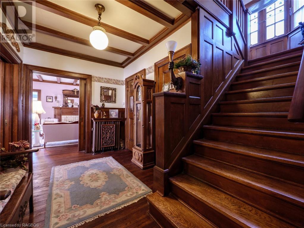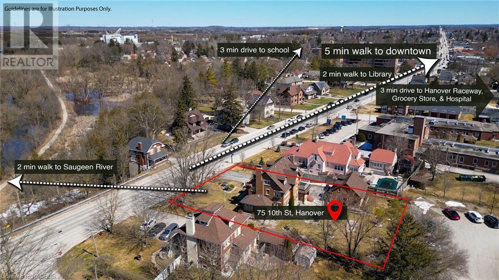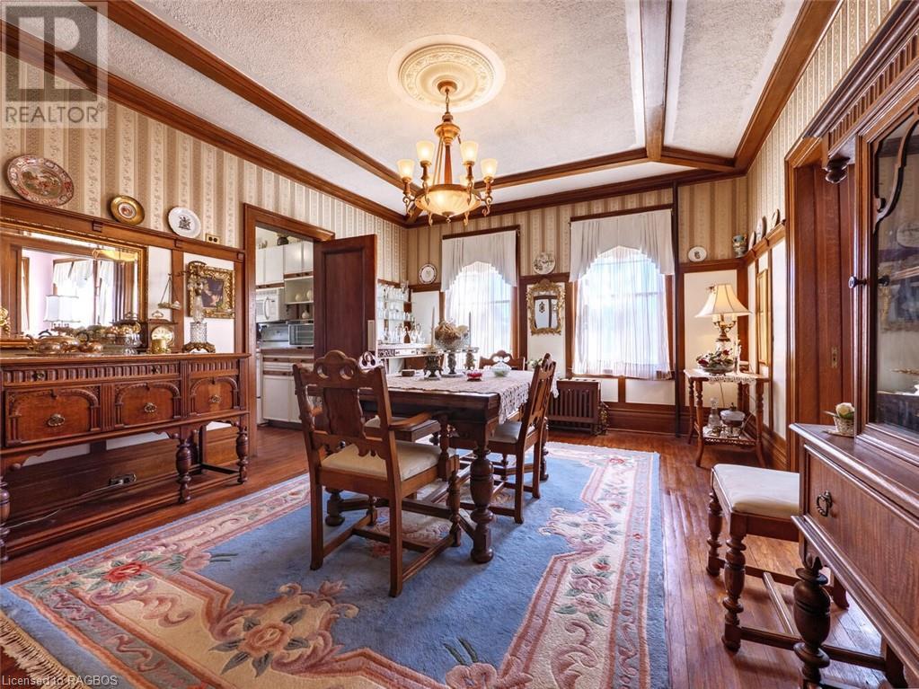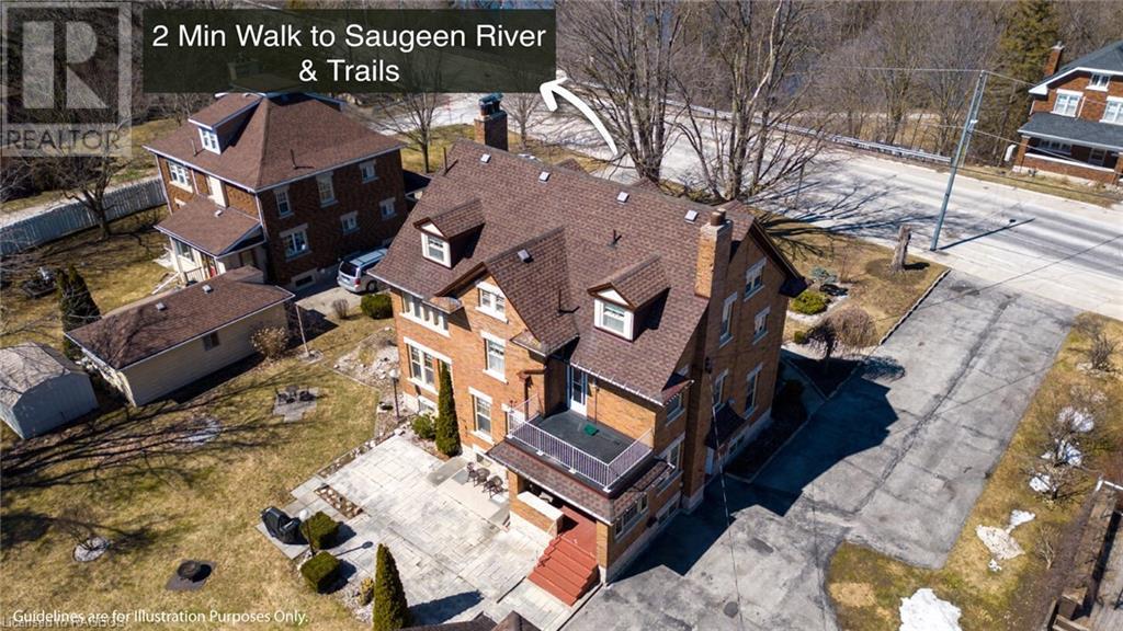 ATTENTION INVESTORS!!! This 4,450 square foot home has so many possibilities! Featuring 7 bedrooms, 3.5 bathrooms, and 3 kitchens, it has the possibility to be converted into 3 dwelling units as per Bill 23. You could live in one section of the house, and enjoy the original woodwork, pocket doors, and other unique features, while renting out the rest of the home to have positive cash flow. The current zoning also allows for a Bed and Breakfast or home occupation. The double detached garage has plumbing and electrical and has an unfinished loft space above that could possibly be converted into a rental space. The large 110’ x 170’ lot has lots of parking space, and is beautifully landscaped with a rear patio, 2 covered porches, and a second level balcony. A great location close to downtown, parks, trails, and the Saugeen River. Check out the 3D video tour for an inside look at all of the possibilities! (id:22211)