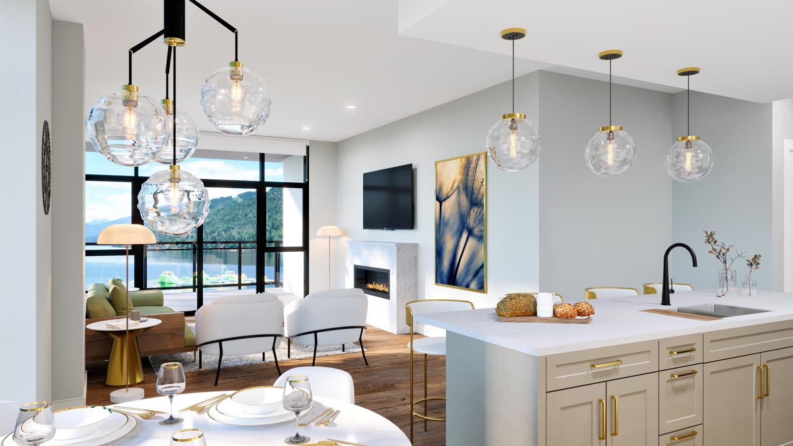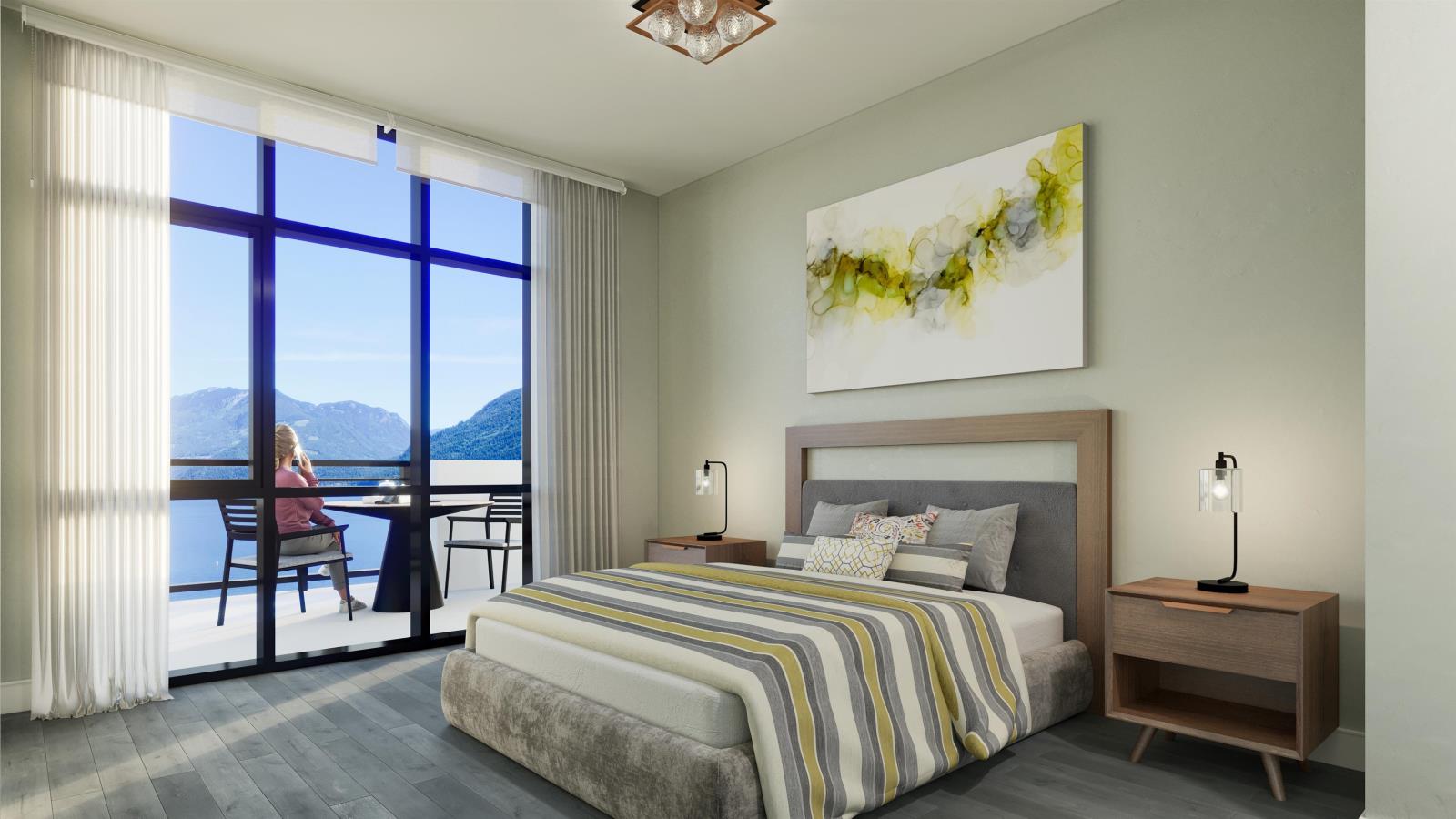 Discover your waterfront retreat in this BRAND NEW, TOP-FLOOR 1-bedroom concrete condo at Aqua Shores, ready for you before Christmas. Awe-inspiring mountain and lake views, overheight ceilings and unbeatable location. Inside, the home features an open-concept living space with wide-plank flooring; a designer kitchen with large island, quartz counters, Blomberg & Fulgor Milano appliances; spa-like bathroom and private balcony. Amenities include fitness center and outdoor BBQ patio, plus EV-enabled parking spot. Prime location right on the beach, in the heart of the Esplanade's restaurants and shops, near the famous hot springs plus hiking, golfing and more. Perfect for year-round living, a getaway, or investment. Don't miss out on lakeside living 90 minutes from the City. (id:22211)