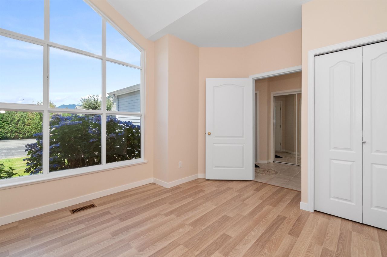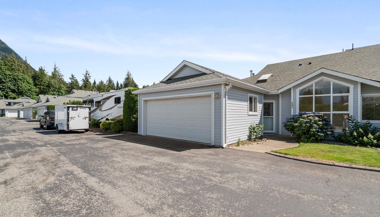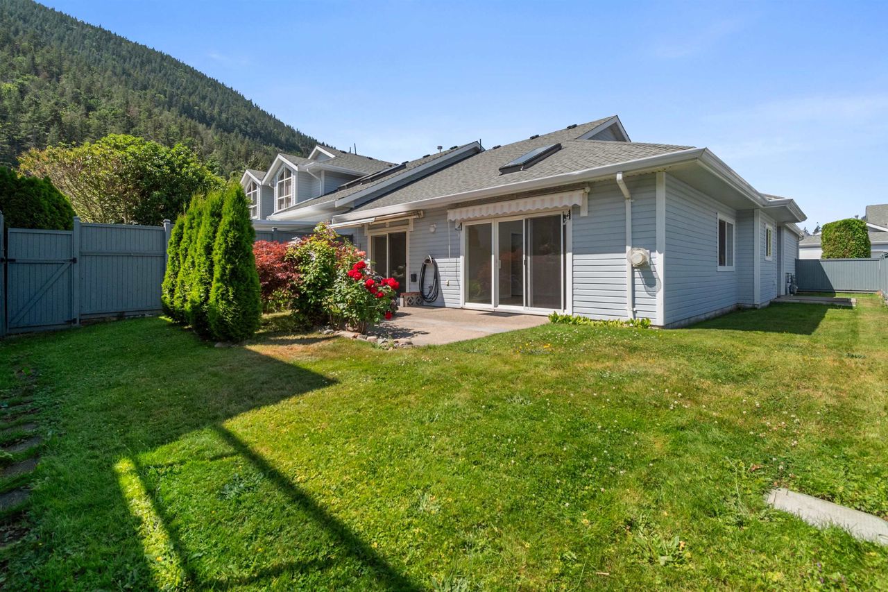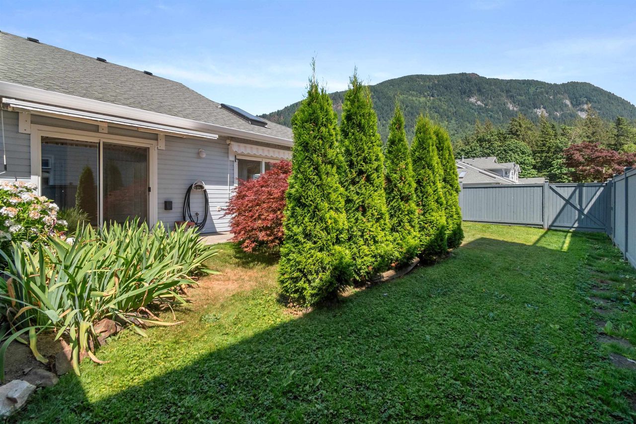 Live the Good Life, Retire Here! END UNIT RANCHER TOWNHOME with double garage offers a beautifully designed layout and true one-level living with spacious rooms, an abundance of tall windows, vaulted ceilings. Airy and bright. Elegant great rm with f/p, 5 piece ensuite, extensive tile, newer laminate flooring and loads of storage. Large fenced yard w/lovely flower garden and STUNNING MOUNT CHEAM VIEW from side patio, which is 1 of 3. Clean, vacant and ready for quick possession. Immaculate gated, 55+ complex offers great amenities, BIG DOG FRIENDLY Next to nature trails, nestled against SW BC's magnificent backdrop with lake, sandy beach and golf nearby. Ask about the BUYER BONUS. OPEN HOUSE SAT SEPT 30th 1-3pm or Call Today to View!