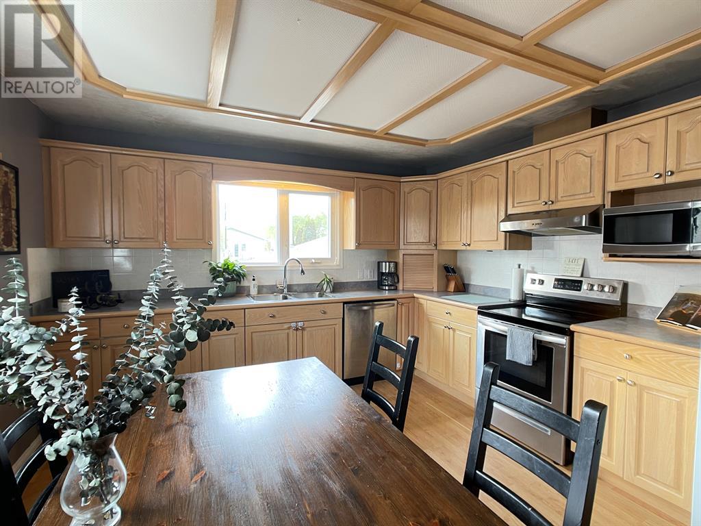 A one of a kind property with a unique layout featuring a large fenced corner lot. 1045 square foot 4 bedroom - 2 bathroom home with a back entrance built for an active family. Space + Storage. The modern kitchen has a luxurious walk in pantry. Take notice of the recently renovated main floor washroom. Basement is complete with two bedrooms, washroom and the convenience of a pellet stove for a secondary heat source. Outside you will find a covered walk way between the garage and home. Low maintenance yard with washed rock between the cement and lawn (fire pit area) The fence has a large double gate if you have an RV or boat to park within the fenced area or simply need access. Enjoy the covered front porch in any weather. Call, email or text to book your personalized viewing. (id:22211)