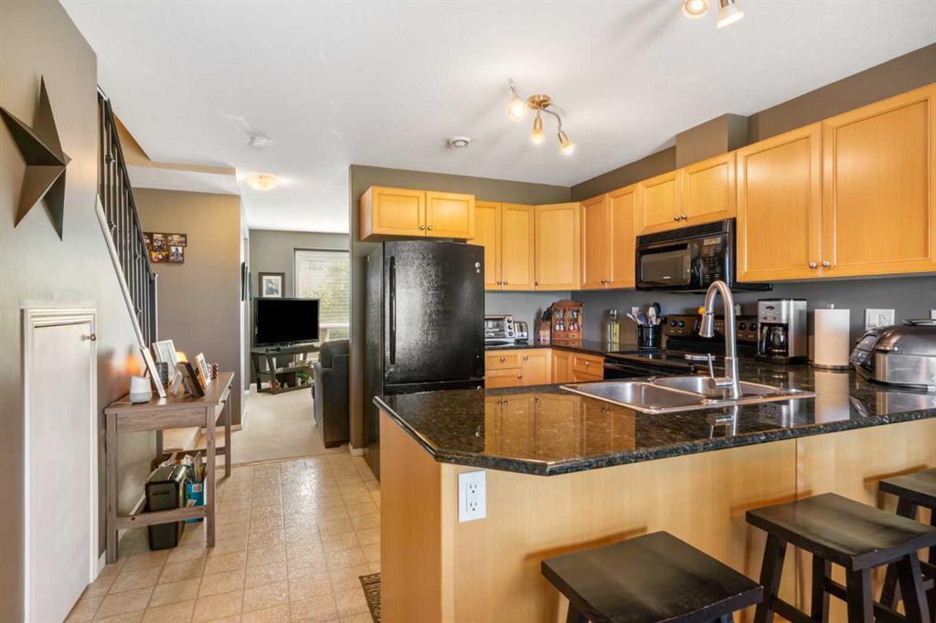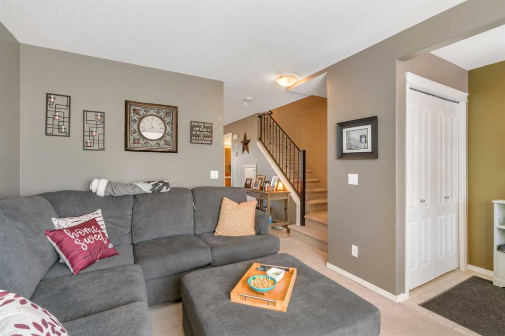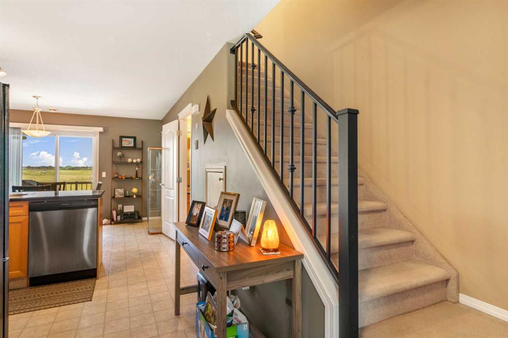Step outside onto your own private balcony and be transported to a serene oasis. Enjoy your morning coffee as you soak in the beauty of the mountain view or unwind in the evening with a glass of wine while watching the sunset paint the sky with vibrant colors. This townhome has two separate patios for your enjoyment. One facing east and the other facing west with storage and unobstructed views of the mountains. The main floor features a generously sized entrance, living room, kitchen including granite countertops, a 2-piece bathroom, and dining room. Upstairs you will find two bedrooms, one with a walk-in closet, a 4-piece bathroom, and laundry. There are also 2 parking stalls assigned to this unit for your convenience. (id:22211)