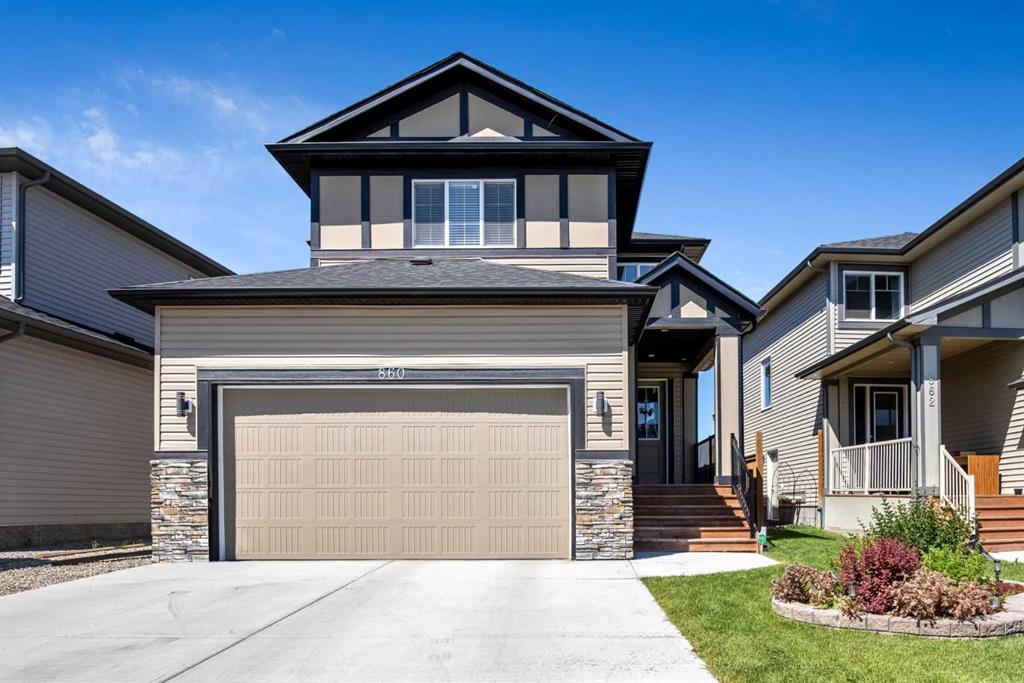 Welcome to 860 Hampshire Cr. This spectacular 2 story is a must to see. A covered front porch opens into a grand entrance cascading with natural light. The open staircase showcases a feature wall with wainscotting and a large chandelier. A mud room off the double garage boasts a built in seat and coat hooks. A large walk thru pantry conveniently leads into a dream kitchen complete with granite counter tops and a built in wine rack. The open concept kitchen, dining room and living room is an entertainer's delight. Off the dining room is a deck to enjoy those summer evenings or morning coffee and a fireplace in the living room will take the chill off the cold winter nights. Hardwood floors flow throughout this space. Upstairs a large master suite awaits complete with walk in closet and your own spa retreat. Two large guest bedrooms, guest bathroom and a convenient laundry room are also located on the upper level. The bonus room is truly a "bonus". This space could be a play room, movie room or exercise space. The built in shelving is an additional bonus. The unfinished basement awaits your creative design. Large windows, high ceilings and a private side entrance could provide an additional living space. Property is landscaped, fenced and has underground sprinklers plus a/c!!! Don't miss this one! Book your showing today!!! (id:22211)