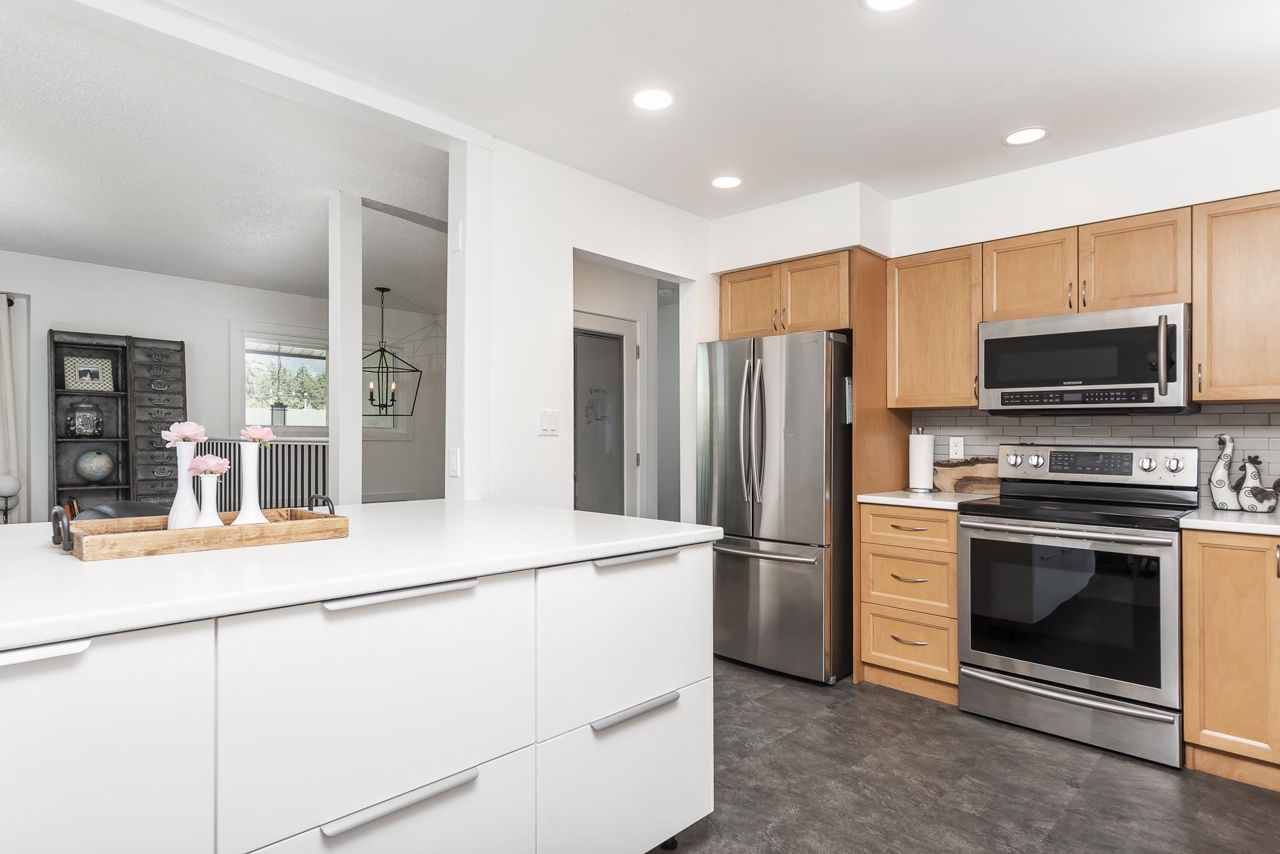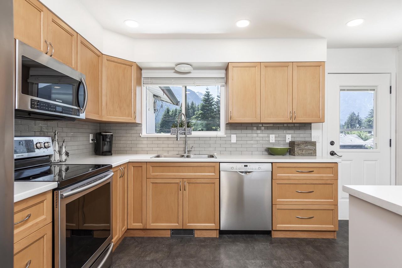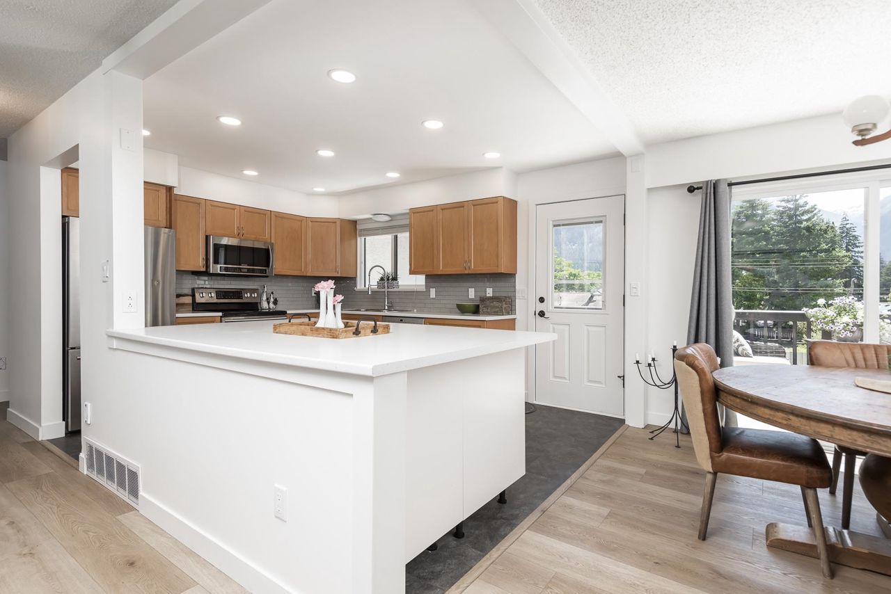 Fully renovated 4 bedroom/3 bathroom, split level home on the sunny side of town. Open concept, updated kitchen with large island. Nice size living room with wood burning fireplace. New windows, flooring and paint throughout. Two piece ensuite with one of a kind custom made counter. Two additional bedrooms and renovated 4 piece bathroom finish off the main floor. Lower level has a large family room with wood burning fireplace, additional bedroom, bathroom, with access to the rear yard. The backyard is fully fenced with a well manicured garden and a detached shop. Rear lane access. Basement can easily be converted to a suite. Walking distance to the river, trails, golf course, and town centre. Year round sunshine, close to all levels of schooling, surrounded by mountain views.