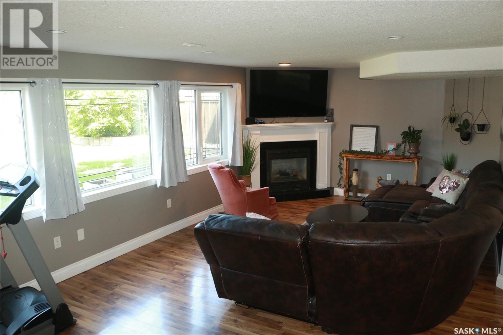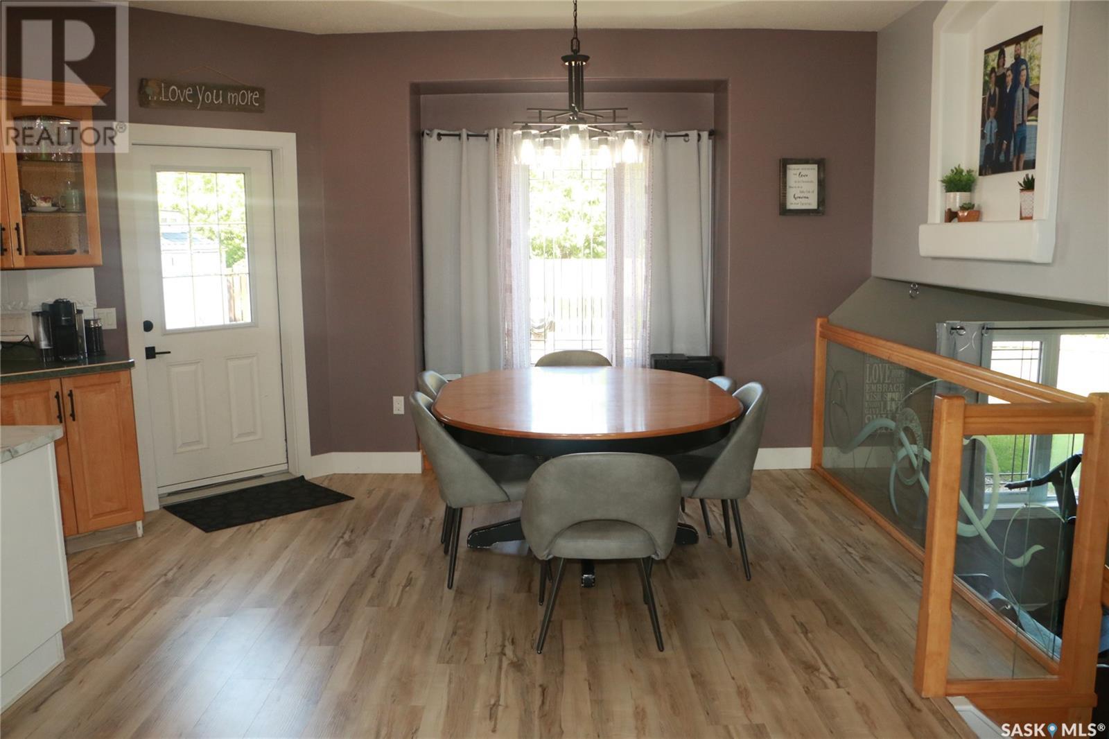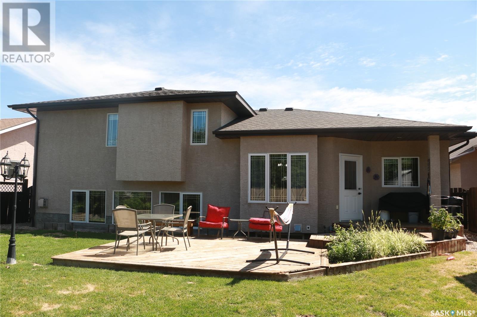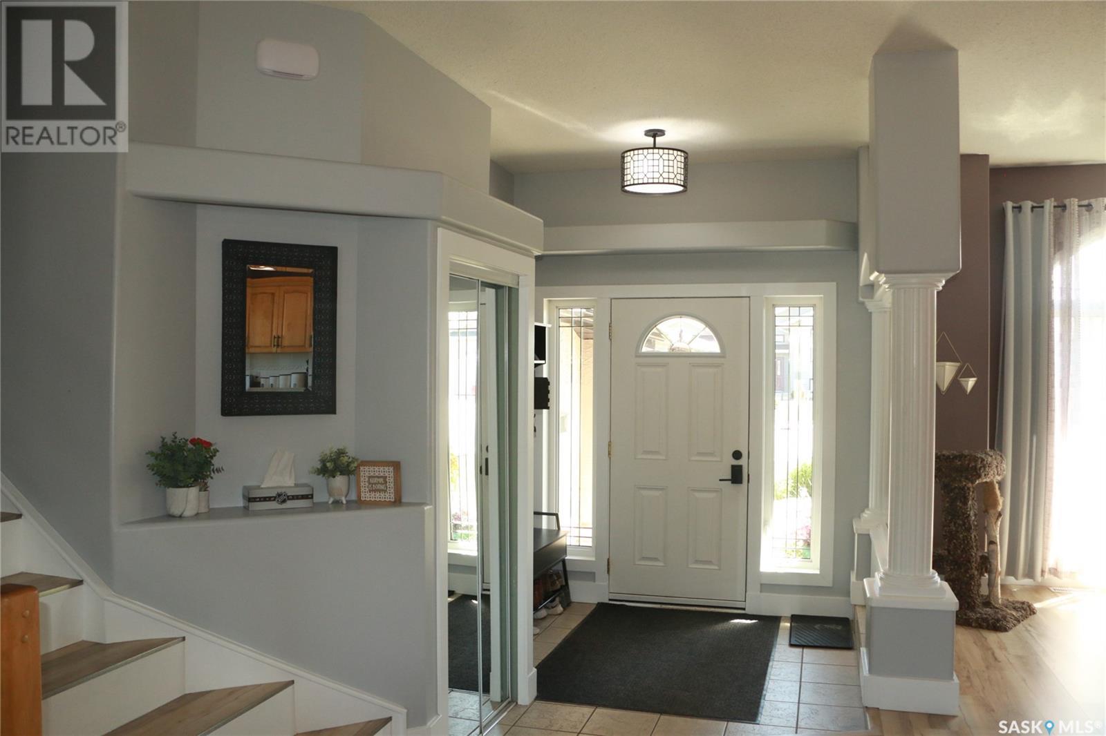 An absolute complete package! This home combines functional family living with outstanding location to give you exactly what you're looking for. You'll be welcomed in by a spacious foyer boasting in natural light to which the open concept takes you into the formal great room which follows to the dining room & kitchen. The kitchen is very spacious with a large island, corner pantry and new countertops. Opening onto the deck you'll see a great fenced in yard with alley access and backing a field with beautiful Saskatchewan sunset views! Upstairs you'll find a grand primary bedroom with a walk in closet & ensuite. There are also 2 more great sized bedrooms and a 4 piece bathroom. Moving down 2 levels into the oversized family room this space will be sure to host all your families needs with large windows looking out into the yard and a beautiful corner natural gas fireplace. There is also a bedroom/office and home hair salon (can easily be converted to laundry) on this level with direct access to the double car heated garage. Lastly you'll be enticed to find the basement level complete with an additional bedroom, 3 piece bathroom & rec room. With central air, new vinyl plank flooring & new shingles last year this home is sure to check all the boxes. Call today for your own private showing. (id:22211)