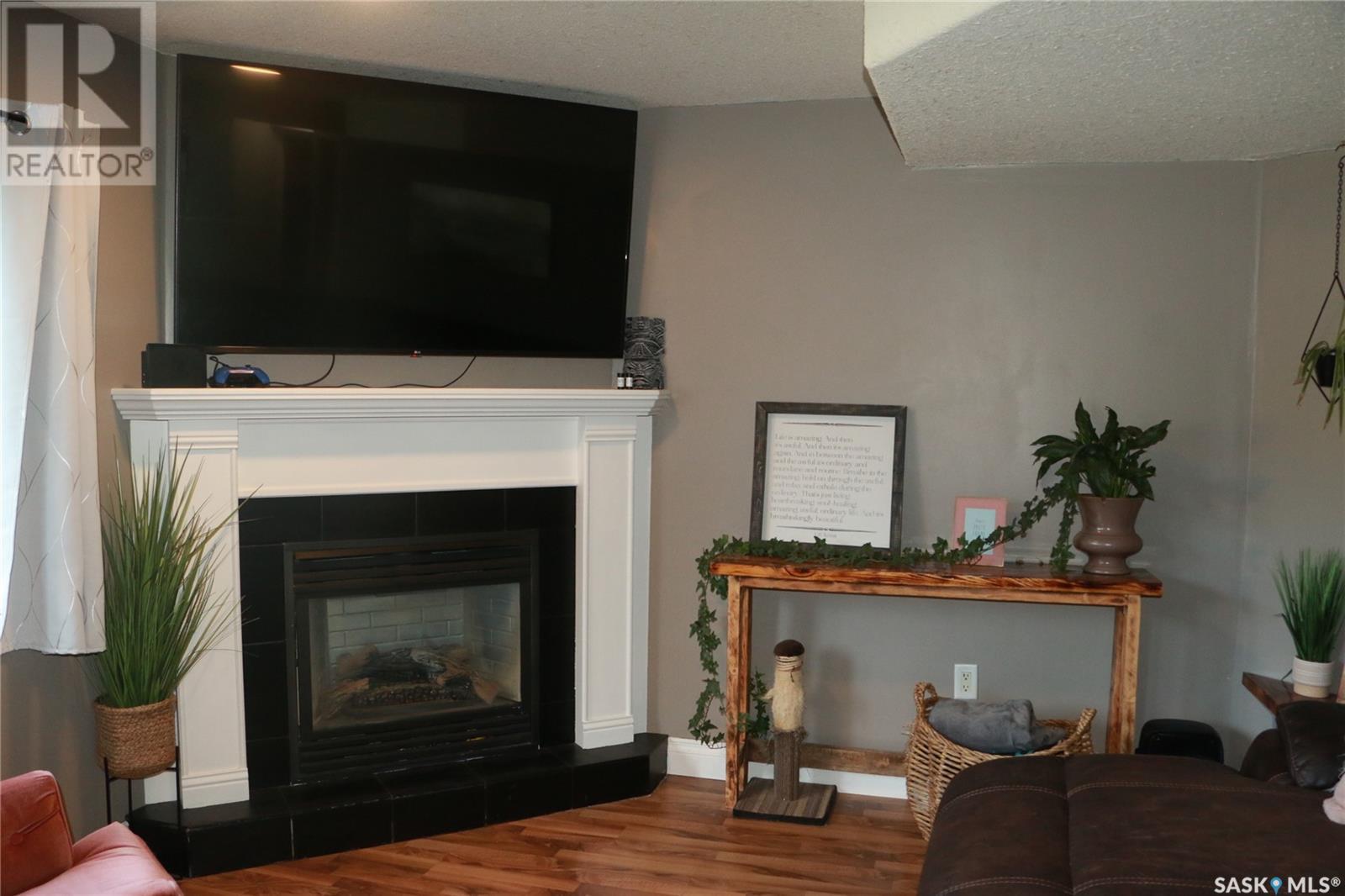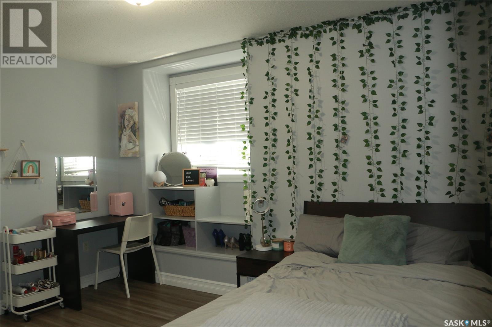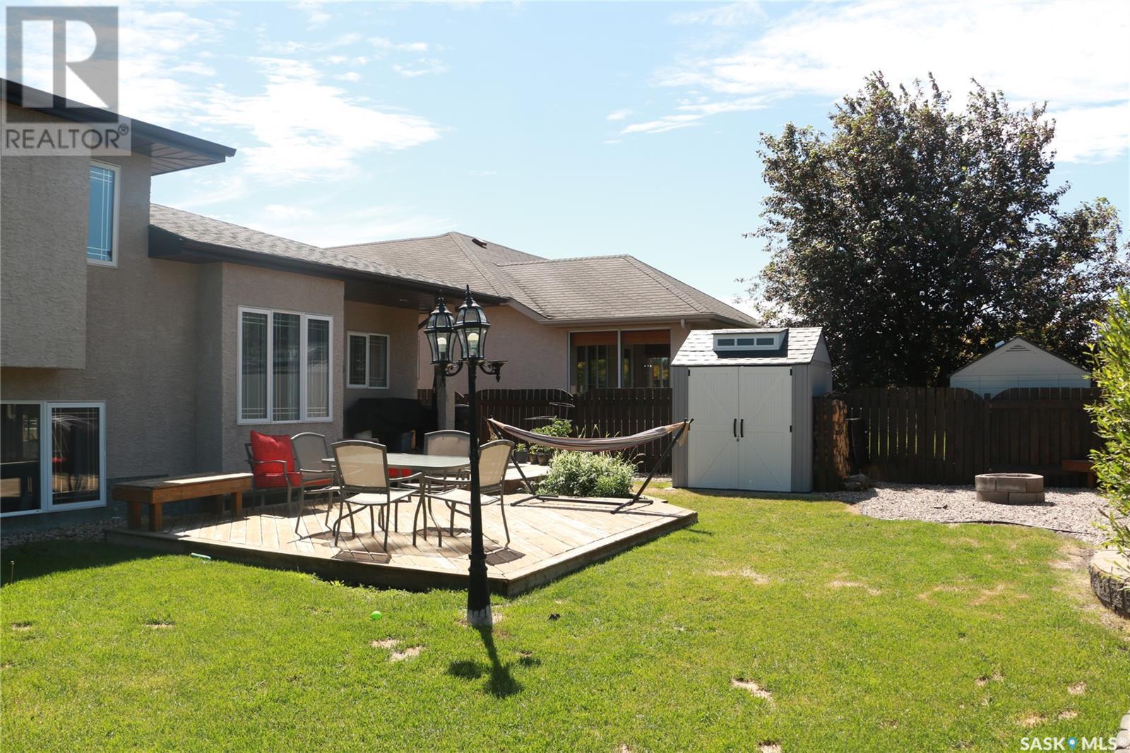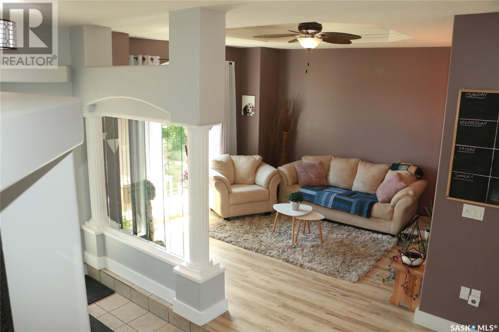 An absolute complete package! This home combines functional family living with outstanding location to give you exactly what you're looking for. You'll be welcomed in by a spacious foyer boasting in natural light to which the open concept takes you into the formal great room which follows to the dining room & kitchen. The kitchen is very spacious with a large island, corner pantry and new countertops. Opening onto the deck you'll see a great fenced in yard with alley access and backing a field with beautiful Saskatchewan sunset views! Upstairs you'll find a grand primary bedroom with a walk in closet & ensuite. There are also 2 more great sized bedrooms and a 4 piece bathroom. Moving down 2 levels into the oversized family room this space will be sure to host all your families needs with large windows looking out into the yard and a beautiful corner natural gas fireplace. There is also a bedroom/office and home hair salon (can easily be converted to laundry) on this level with direct access to the double car heated garage. Lastly you'll be enticed to find the basement level complete with an additional bedroom, 3 piece bathroom & rec room. With central air, new vinyl plank flooring & new shingles last year this home is sure to check all the boxes. Call today for your own private showing. (id:22211)