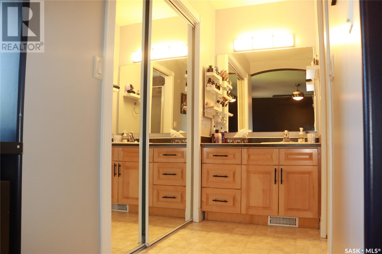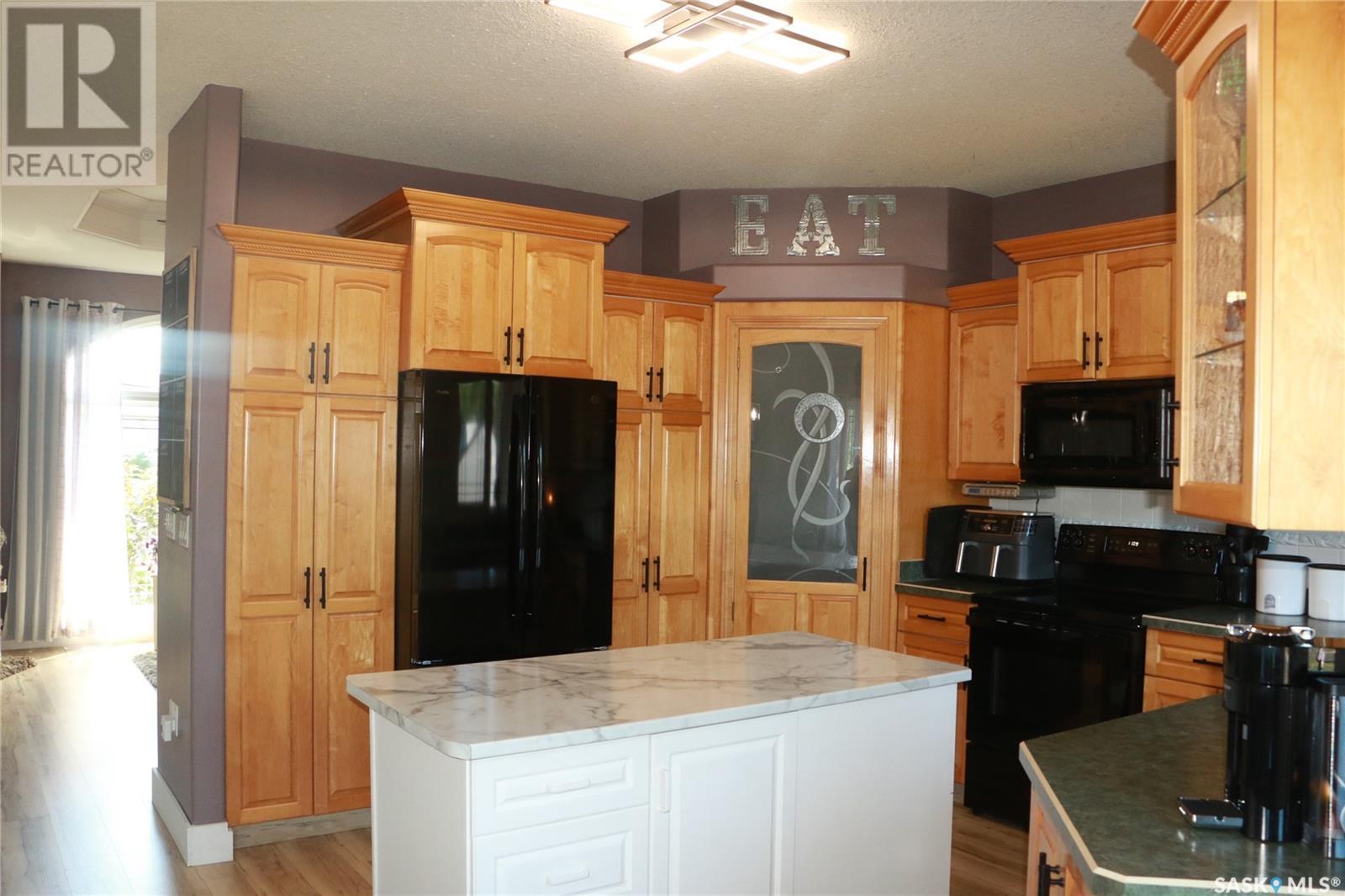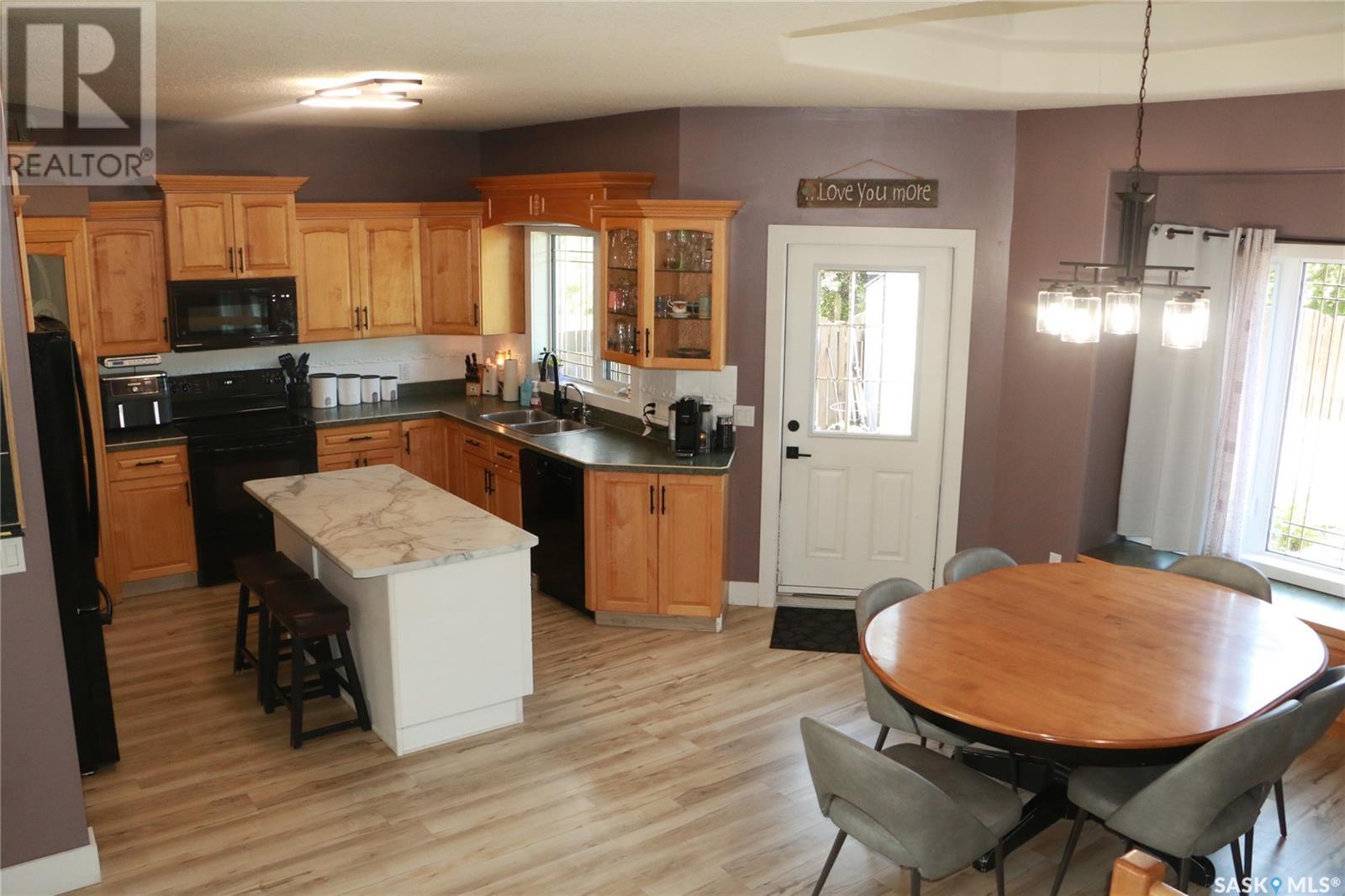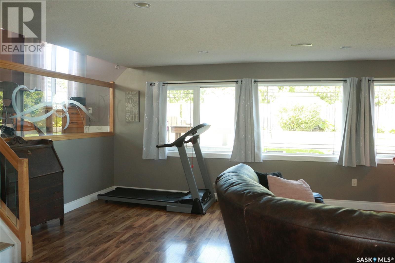 An absolute complete package! This home combines functional family living with outstanding location to give you exactly what you're looking for. You'll be welcomed in by a spacious foyer boasting in natural light to which the open concept takes you into the formal great room which follows to the dining room & kitchen. The kitchen is very spacious with a large island, corner pantry and new countertops. Opening onto the deck you'll see a great fenced in yard with alley access and backing a field with beautiful Saskatchewan sunset views! Upstairs you'll find a grand primary bedroom with a walk in closet & ensuite. There are also 2 more great sized bedrooms and a 4 piece bathroom. Moving down 2 levels into the oversized family room this space will be sure to host all your families needs with large windows looking out into the yard and a beautiful corner natural gas fireplace. There is also a bedroom/office and home hair salon (can easily be converted to laundry) on this level with direct access to the double car heated garage. Lastly you'll be enticed to find the basement level complete with an additional bedroom, 3 piece bathroom & rec room. With central air, new vinyl plank flooring & new shingles last year this home is sure to check all the boxes. Call today for your own private showing. (id:22211)