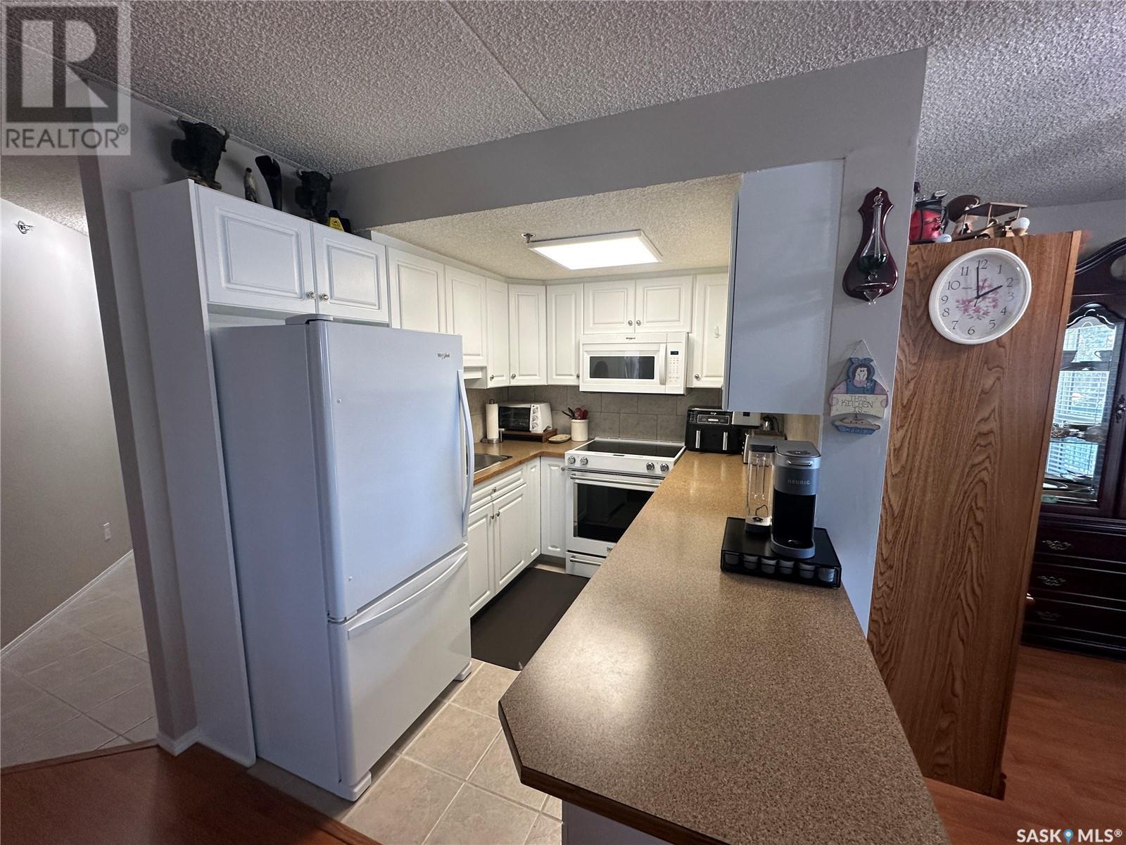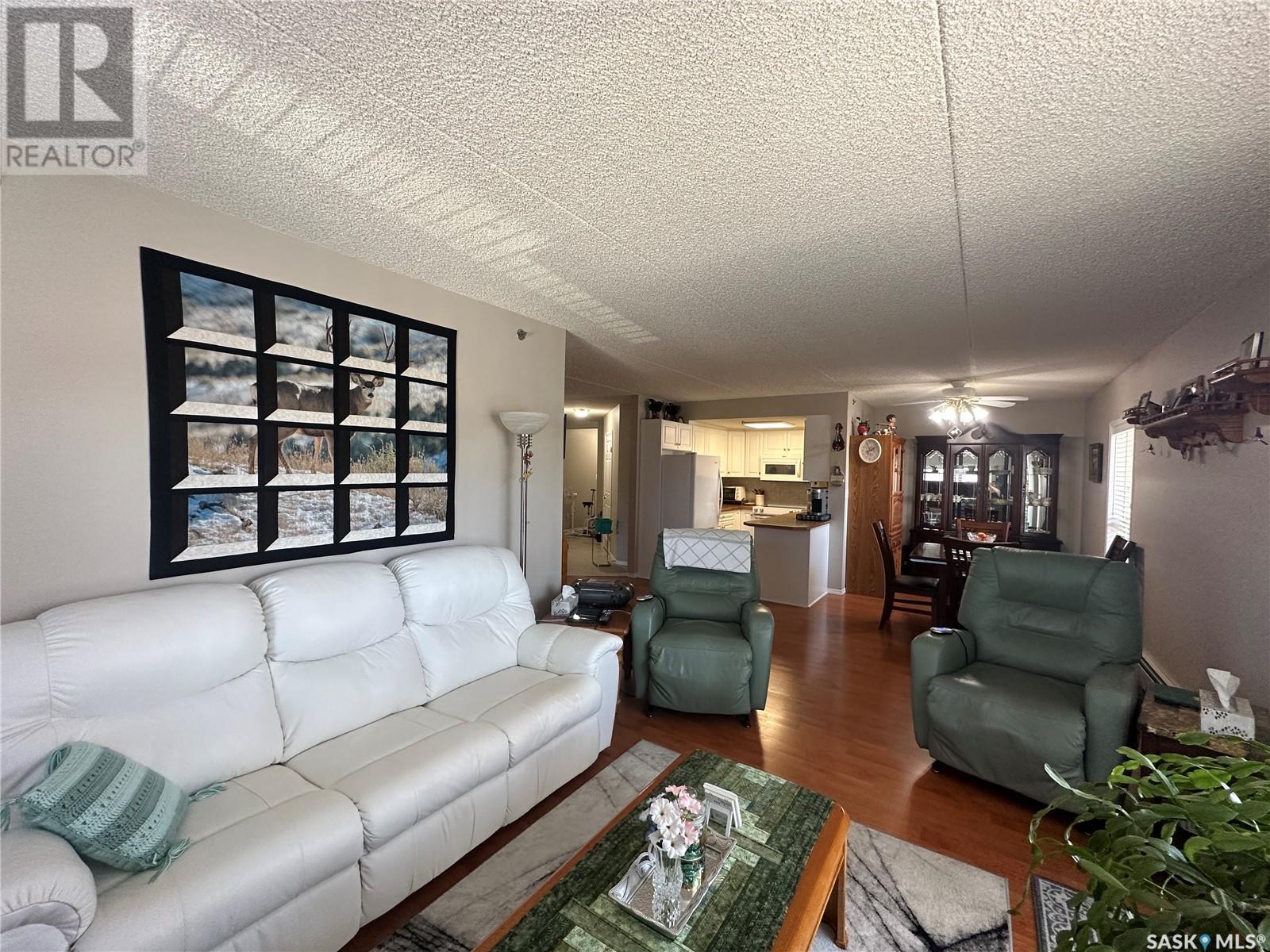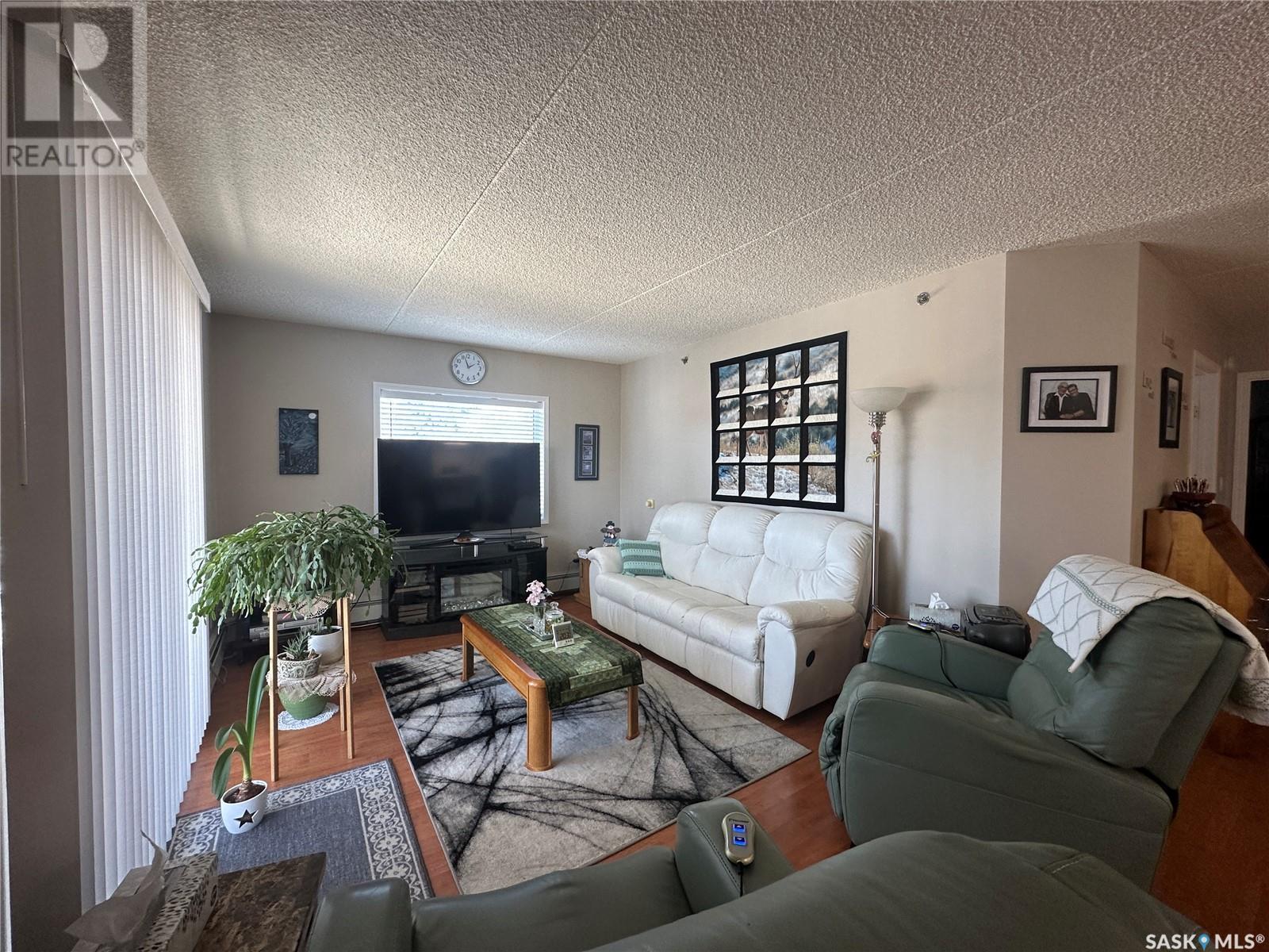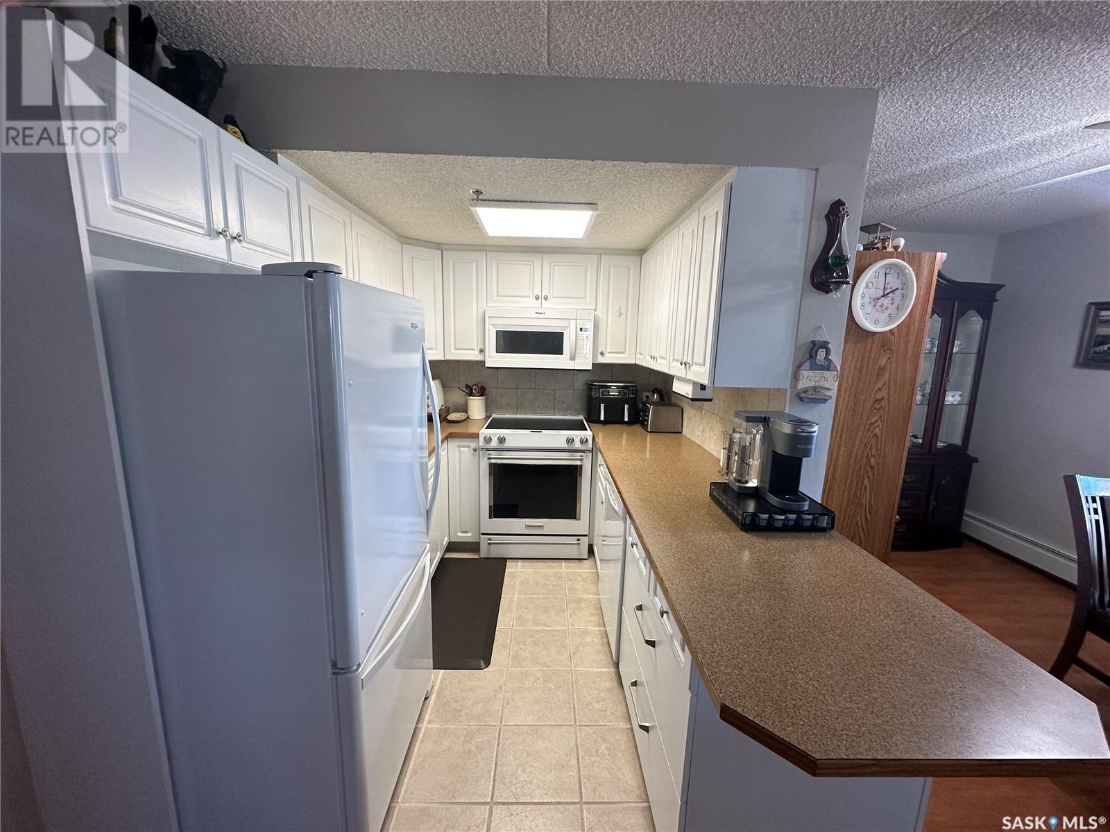 Welcome to #303-740 9th St. in the City of Humboldt! This exquisite corner unit boasts two bedrooms and two bathrooms, featuring breathtaking NW-facing views. The well-appointed kitchen seamlessly opens up to a generously sized dining area and living room, which further extends to a cozy balcony with outdoor storage. The master bedroom is a sight to behold, with a large closet and its own 3 pc ensuite. Additionally, there is a second nice-sized bedroom, a laundry room with a freezer, and an awe-inspiring pantry with fantastic shelving that provides ample storage space. Updates are stove, microwave, fridge, garburator, toilets, and all shelving in the pantry. This exceptional condo has a remarkable floorplan, designed to cater to your every need. Moreover, the building is wheelchair accessible and features a heated ground-floor parkade, a common room for your enjoyment, an elevator, and an intercom system. This condo has an outstanding living space in a prime location, with numerous amenities and unparalleled accessibility. Call today to view this great condo! (id:22211)