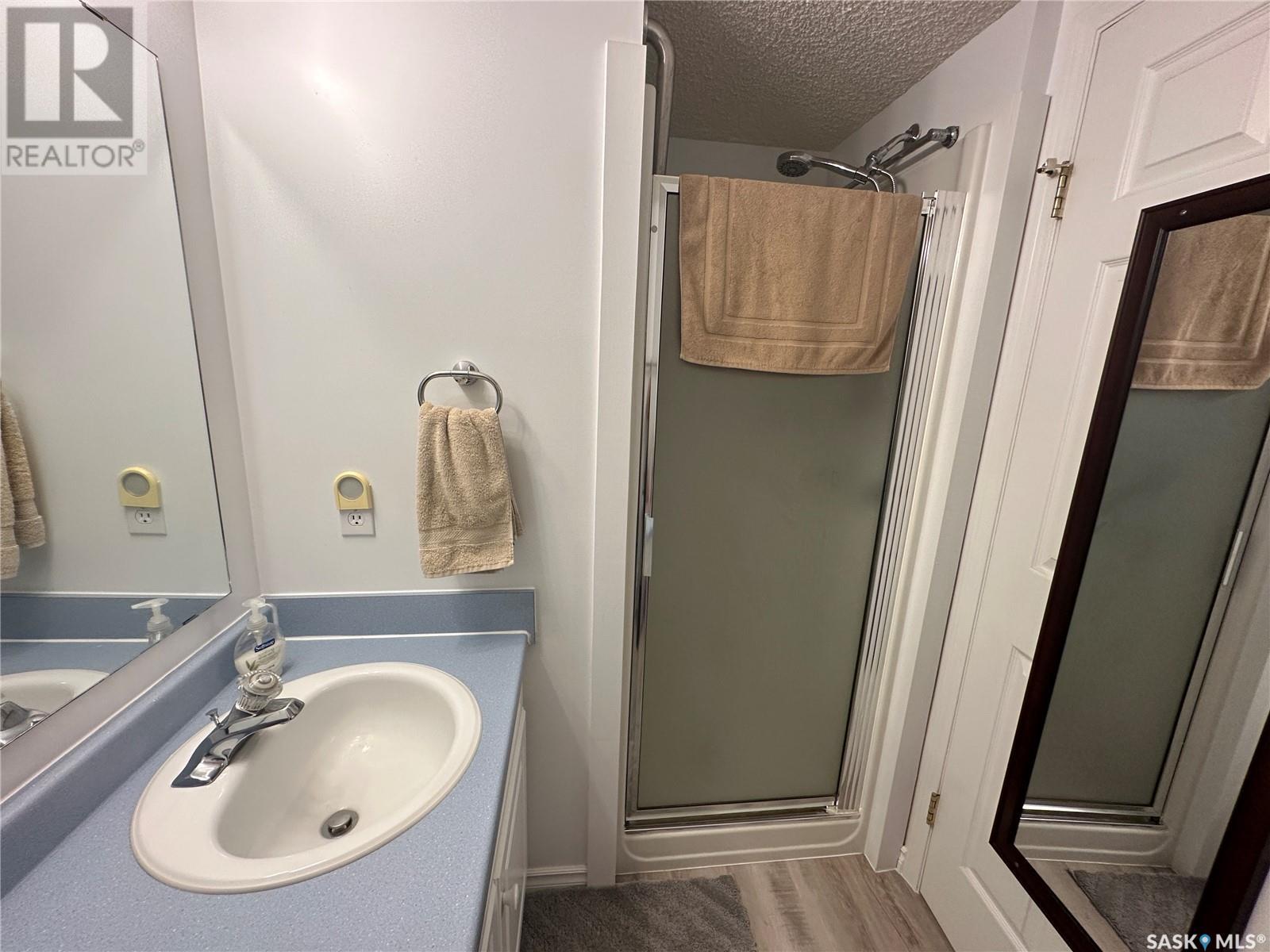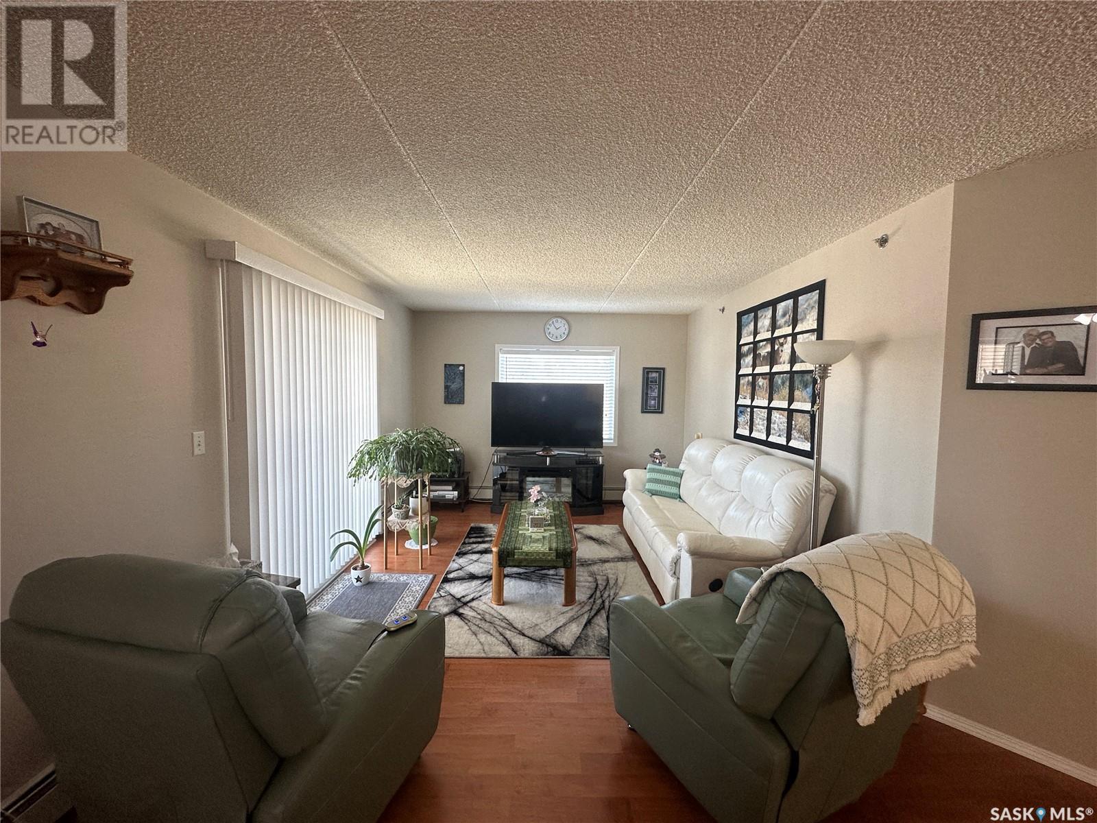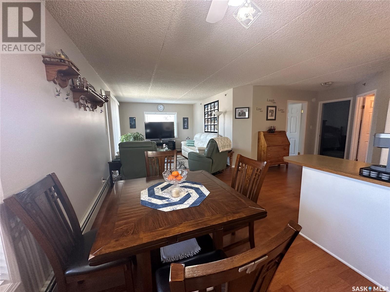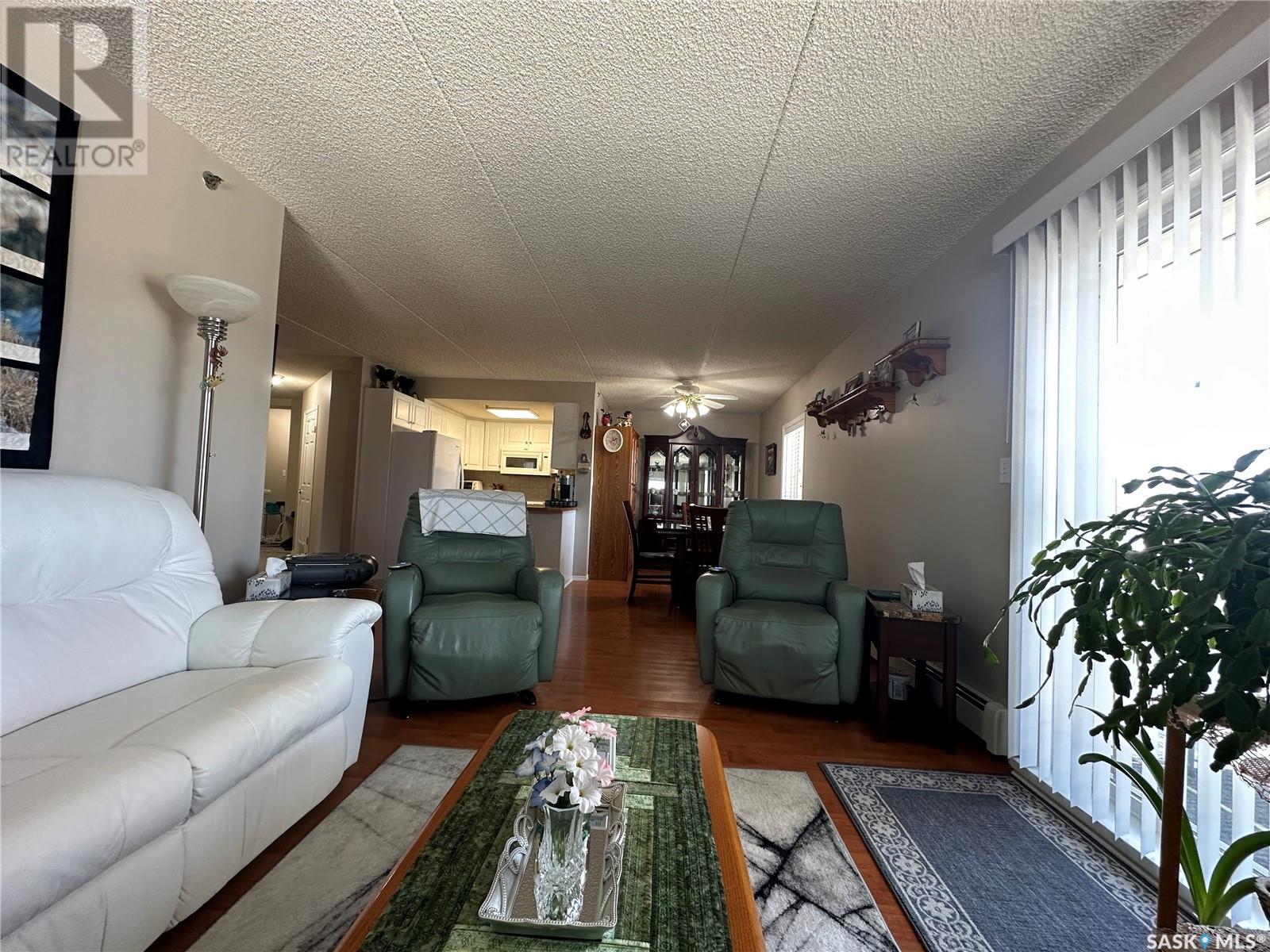 Welcome to #303-740 9th St. in the City of Humboldt! This exquisite corner unit boasts two bedrooms and two bathrooms, featuring breathtaking NW-facing views. The well-appointed kitchen seamlessly opens up to a generously sized dining area and living room, which further extends to a cozy balcony with outdoor storage. The master bedroom is a sight to behold, with a large closet and its own 3 pc ensuite. Additionally, there is a second nice-sized bedroom, a laundry room with a freezer, and an awe-inspiring pantry with fantastic shelving that provides ample storage space. Updates are stove, microwave, fridge, garburator, toilets, and all shelving in the pantry. This exceptional condo has a remarkable floorplan, designed to cater to your every need. Moreover, the building is wheelchair accessible and features a heated ground-floor parkade, a common room for your enjoyment, an elevator, and an intercom system. This condo has an outstanding living space in a prime location, with numerous amenities and unparalleled accessibility. Call today to view this great condo! (id:22211)
