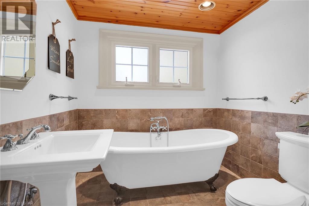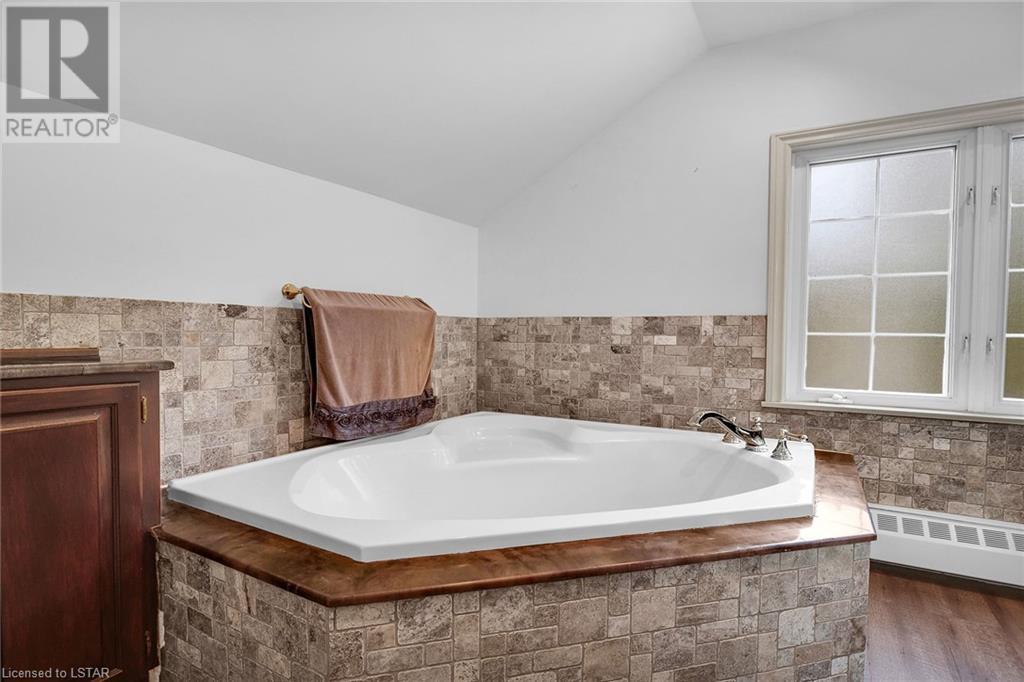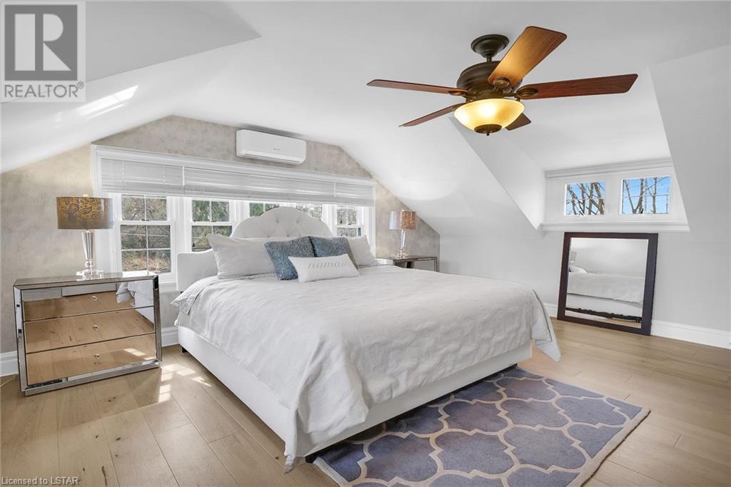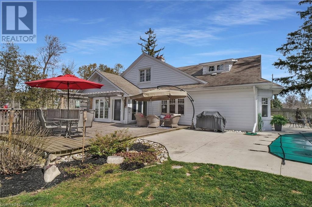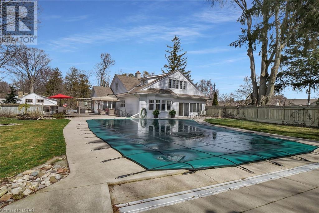 Welcome to Whispering Ridge this unique historical landmark estate in South Ingersoll situated on a near acre treed lot with over 3000 sq ft on 2 levels and a finished lower level with a separate entrance, perfect for an in-law suite. Enjoy the beautiful private backyard gardens with a 150,000 litre salt water gunite pool and 10 feet deep end. This home is loaded with Charm and Character boasting large principle rooms and large windows for plenty of natural light. Recent updates in the past year include all new high-end hardwood flooring, quartz counters in the kitchen, 5 new heating and cooling wall units including in the enclosed sunroom. Main floor laundry with 2022 Electrolux Over sized Washer & Gas Dryer, Hunter Douglas blinds, roller shades, waffle blinds, Culligan Water filtration system, professional Stainless Kitchen Aid Appliances with built in wall oven and microwave as well as an induction flat top. Both the kitchen and sunroom have patio doors that lead to the gorgeous backyard landscaping with many red maple trees & low maintenance perennials. The pool comes with a solar blanket with a retractable hidden roller, robot pool cleaner (2020) pool pump (2019) and a winter cover. The detached oversized 2.5 car garage is has a lower level with endless possibilities including a great workshop or a possible rental/income suite as well as a potential man cave in the attic. The home is set way back off the street offering great privacy with only 1 neighbour. (id:22211)