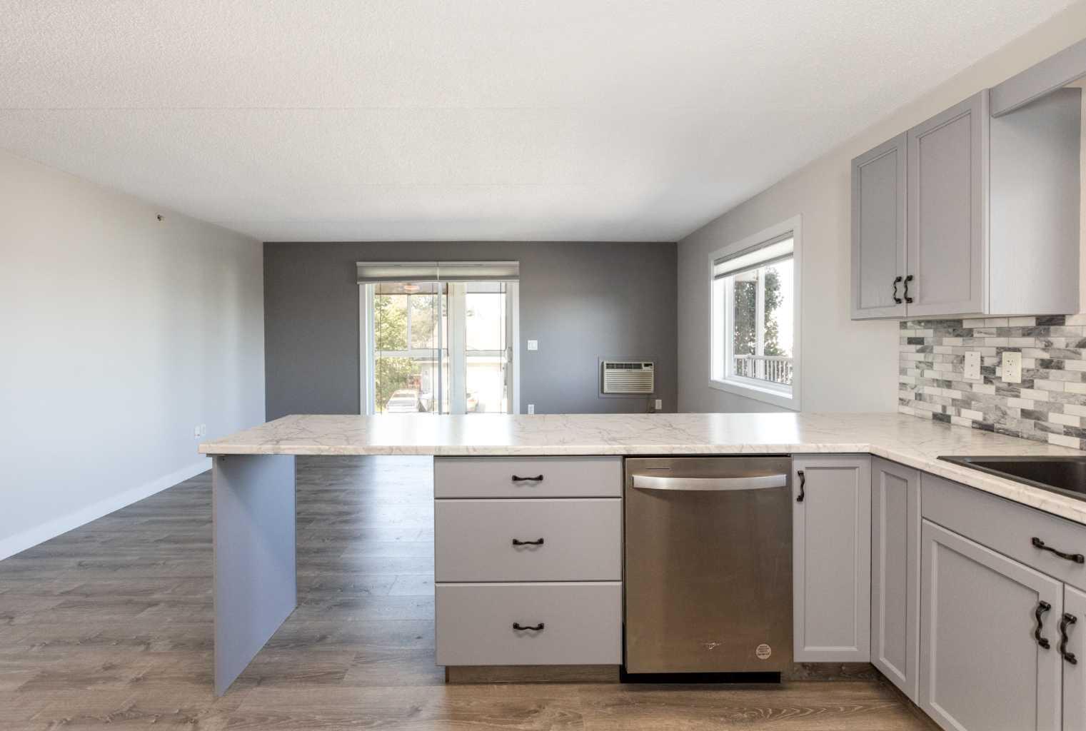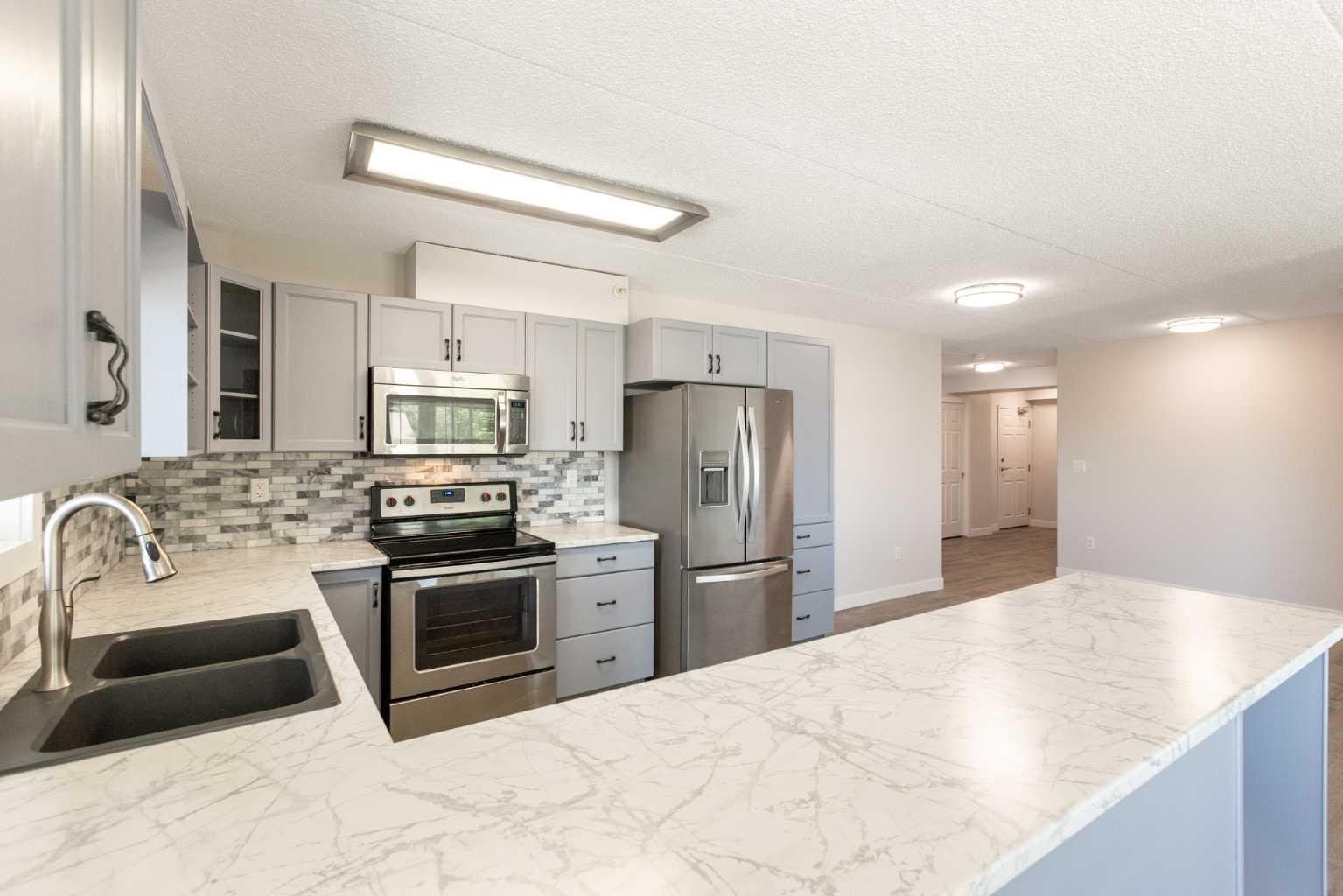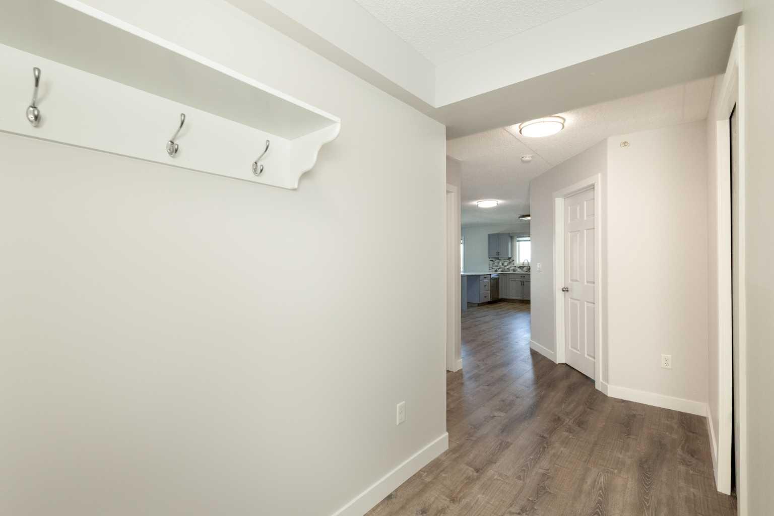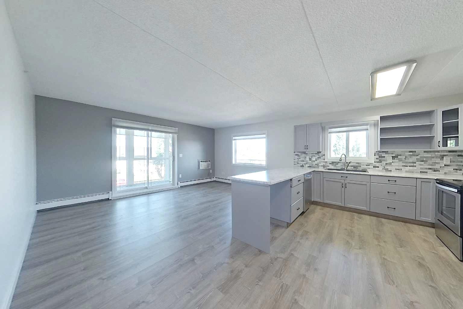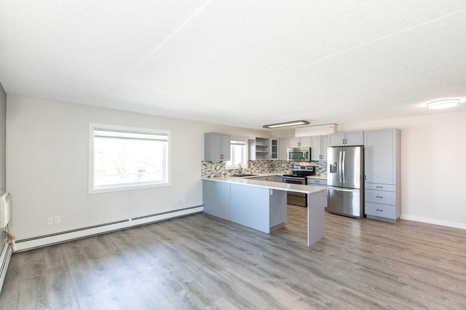 Tucked into a well-kept building in the friendly and beautiful town of Innisfail, this beautifully updated 2-bedroom, 2-bathroom corner condo offers the perfect mix of comfort, style, and convenience. Just 25 minutes from Red Deer and about an hour to the Calgary International Airport, you’ll enjoy small-town living with easy access to major centers — plus all the everyday amenities right at your doorstep. Step inside and instantly feel at home. This unit has been completely transformed with a top-to-bottom renovation, giving it a fresh, modern feel. New flooring runs throughout, complemented by updated paint, modern window coverings, new lighting in key areas, and select new appliances that bring a sleek and polished touch to the space. The layout is bright and spacious, with large windows that let the natural light pour in. The primary bedroom is generously sized and features a private 3-piece ensuite bathroom and large closet space, while the second bedroom is perfect for guests, a home office, or a cozy den. In-unit laundry hookups add another layer of convenience, giving you everything you need right at home. One of the standout features of this unit is the expansive wrap-around balcony which includes a fully enclosed sunroom. Whether you're sipping your morning coffee in the sunshine or reading a book as the seasons change, this space is sure to become a favourite. On either end of the balcony, you'll find two large storage rooms, offering an abundance of extra space for seasonal items, tools, or hobby supplies. This condo is located in a well-maintained and welcoming building with a strong sense of community. Residents often gather for activities in the shared common rooms, creating a social and supportive atmosphere. Your assigned parking stall is located in the detached garage just north of the building, keeping your vehicle secure and out of the elements. Whether you're looking to downsize or simply enjoy a peaceful, low-maintenance lifestyle, this one-of-a-kind condo delivers. Enjoy the nearby walking paths, parks, and friendly local charm that make Innisfail such a wonderful place to call home.