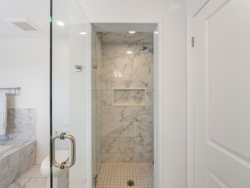 * 主卧室包括一个大型步入式衣橱和带壮丽湖景的套间浴室