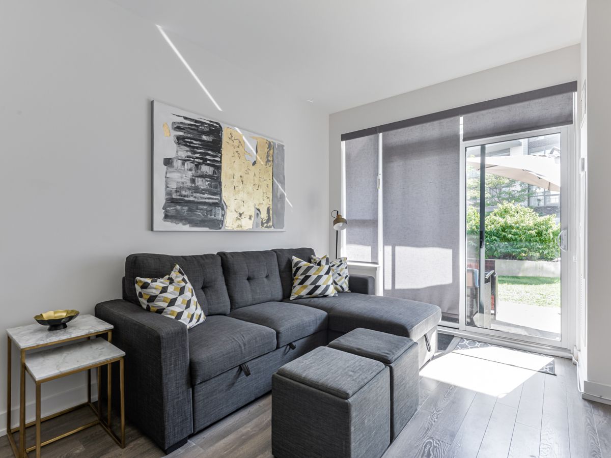 Such a great escape - condo with a large terrace AND yard in courtyard D! 2 bedroom, 2 full bath condo with beautiful outdoor private space! Furnished and ready for your stay from September to May. Primary bdrm w/ensuite bath & closet. Perfect layout for entertaining inside and outside! Open concept living/kitchen w/custom island. Steps to boardwalk/gym! Enjoy all Friday Harbour has to offer!Fully furnished and equipped! All appliances- fridge, stove, washer, dryer, all elfs.