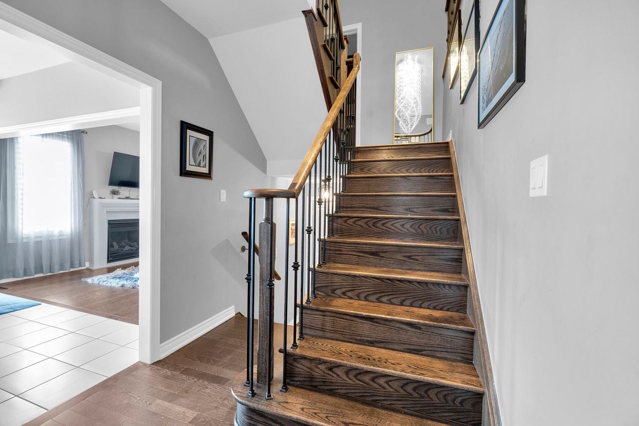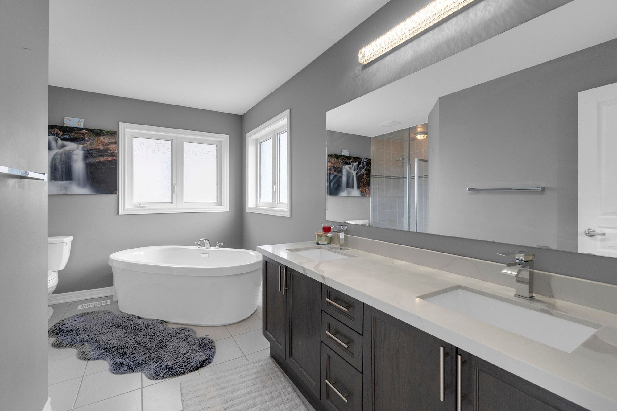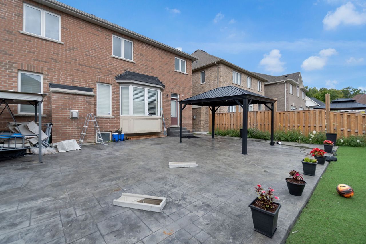 iron pickets, quartz countertops in bathrooms. 2 car garage with epoxy floor. Backyard Interlocking.Stainless steel appliances, smart home lighting, security cameras and much more