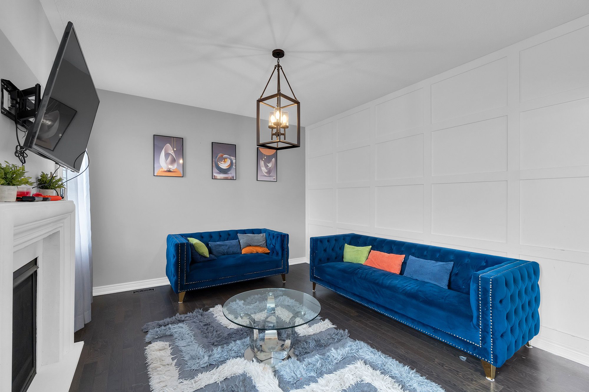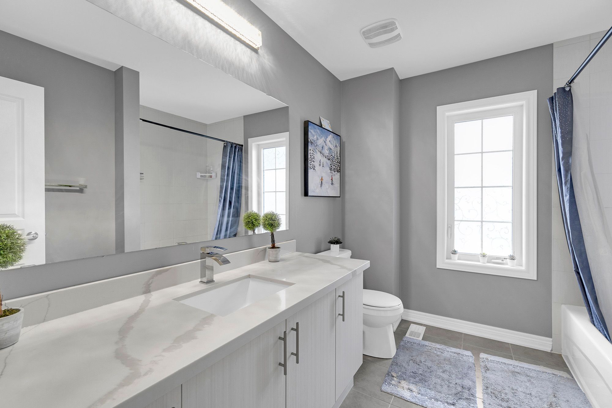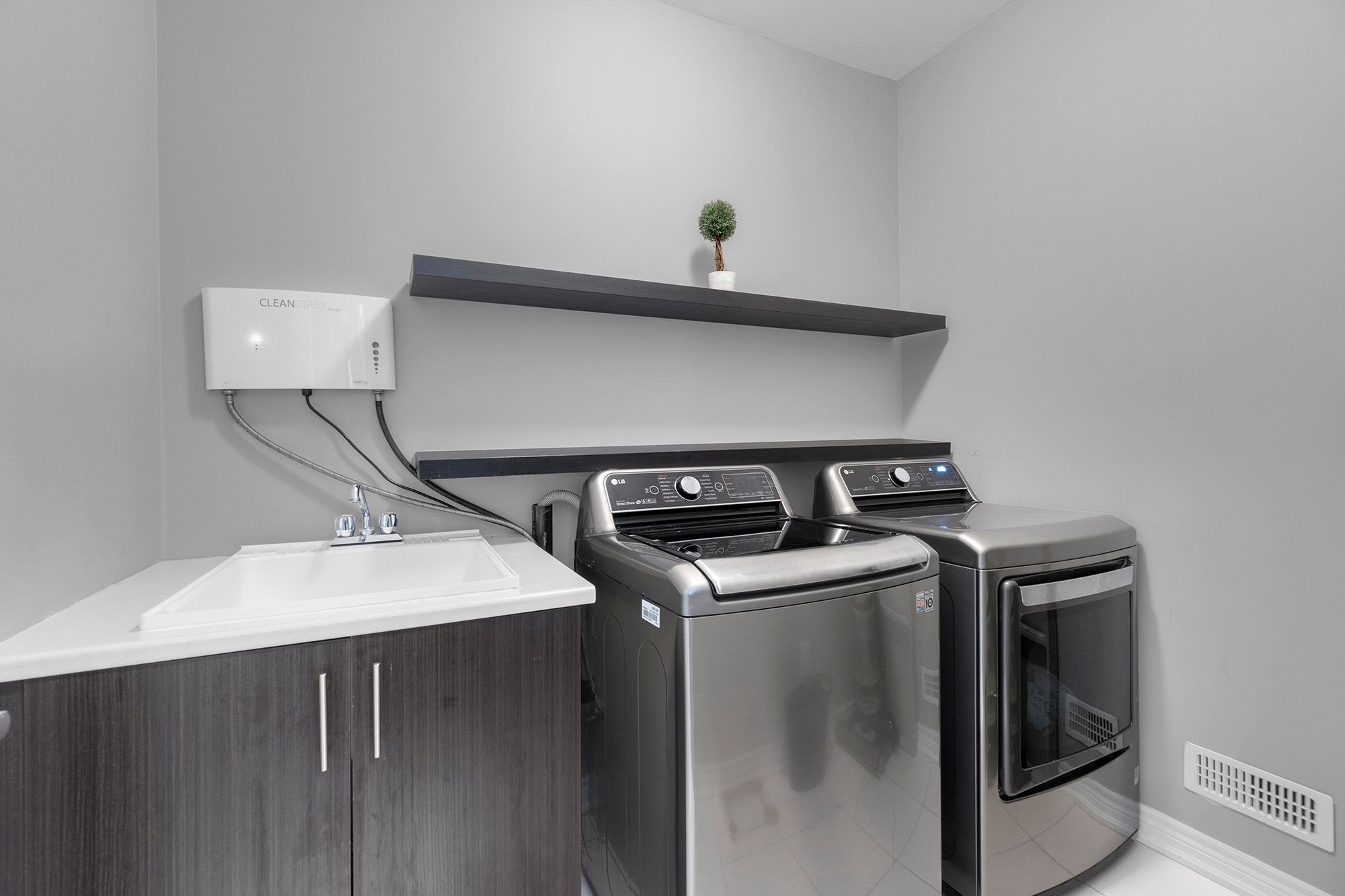 iron pickets, quartz countertops in bathrooms. 2 car garage with epoxy floor. Backyard Interlocking.Stainless steel appliances, smart home lighting, security cameras and much more