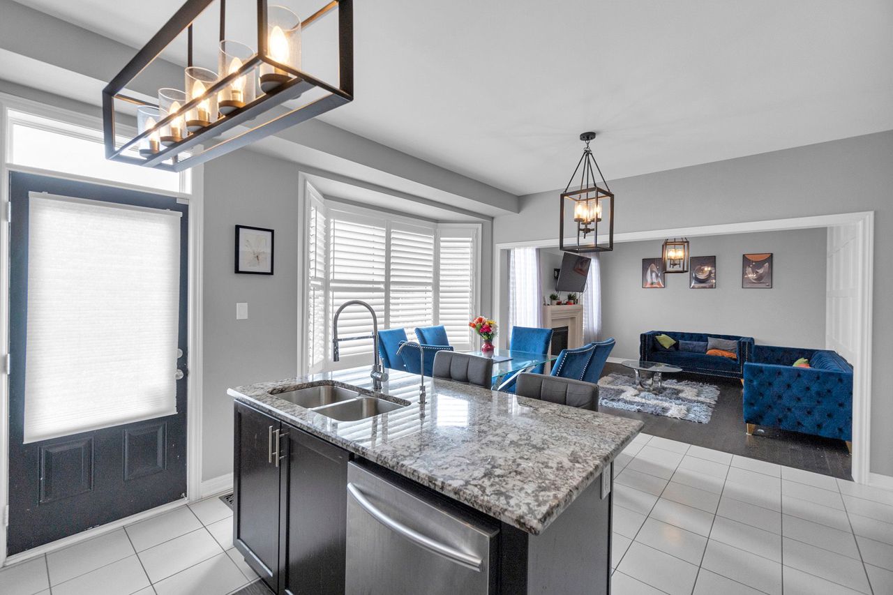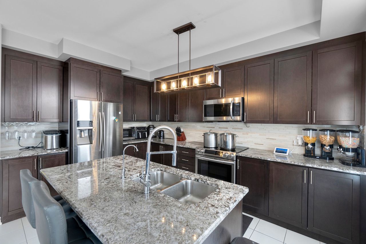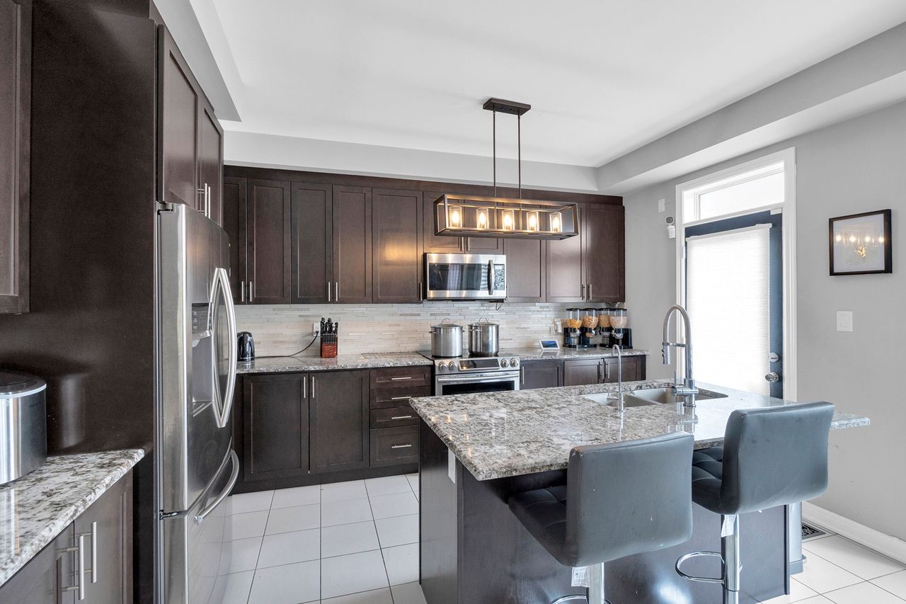 modern design, Good size kitchen, extended cabinetry, Centre island with granite countertop,