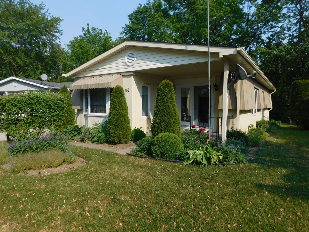 Located in the Adult lifestyle commuinity of Sandy Cove Acres with easy access to shopping, Lake Simcoe and all the ameneties that Innisfil has to offer as well as a short drive to Barrie. This Lexington model boasts an open concept with walk out to covered porch out front. Spacious dining and living area. Lots of kitchen cupboards and built in breakfast bar makes it a great home for entertaining. The master bedroom has large walk in closet with built in shelving. This home has been lovingly maintained and has a beatiful landscape to enjoy