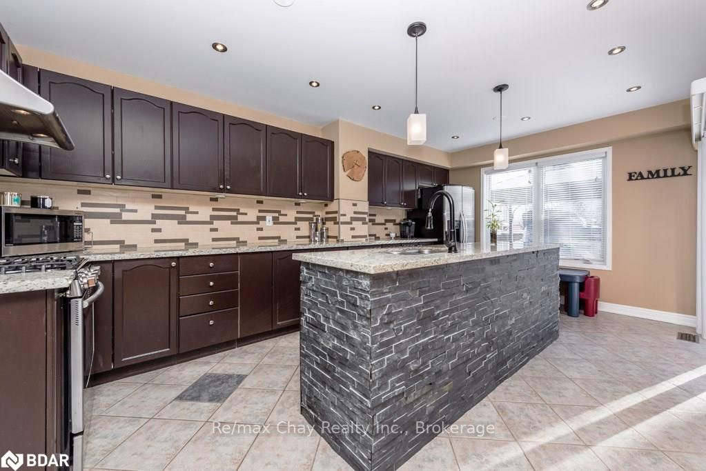 Beautiful Open Concept home with a unique upper level family room! Well appointed 1596 Sqft. 3 beds, 3 baths. Gorgeous kitchen w/huge custom island w/stacked stone facade, granite countertops, SS appliances incl/a gas stove, a tiled backsplash, pendant lighting & pot lights galore! Formal living/dining room. Big upper level family room w/gas fireplace & vaulted ceilings. Spacious master bedroom w/7 piece spa-like ensuite & a giant walk-in closet. Newer dual flush toilets. Oak staircase. Hardwood & ceramics. Freshly painted. Unspoiled basement. Gorgeous flagstone walkway. Covered front porch. Oversized garage w/access to main level & basement. Massive back deck w/privacy shutters & gas BBQ hook up. Extra deep fenced yard. Excellent family home on a quiet low traffic street with room to grow!