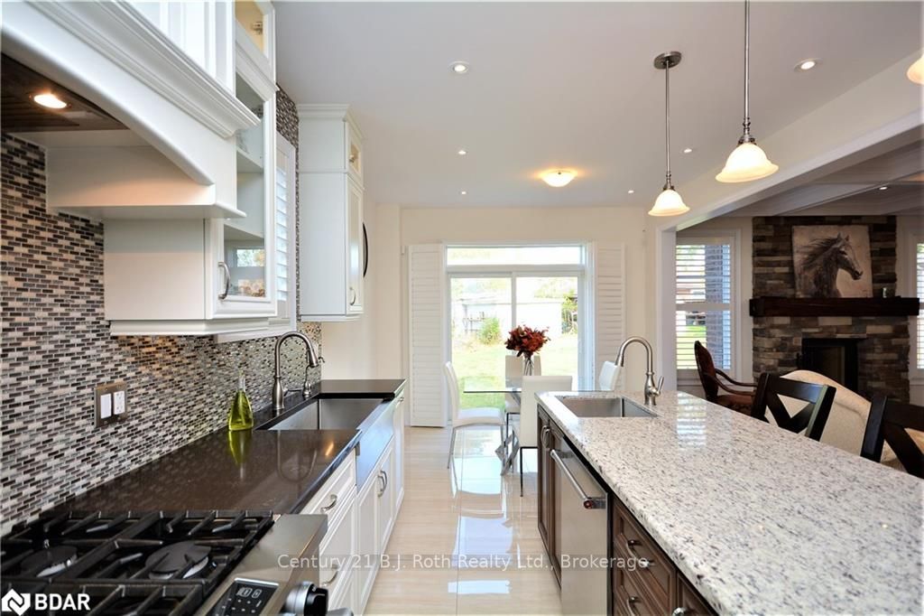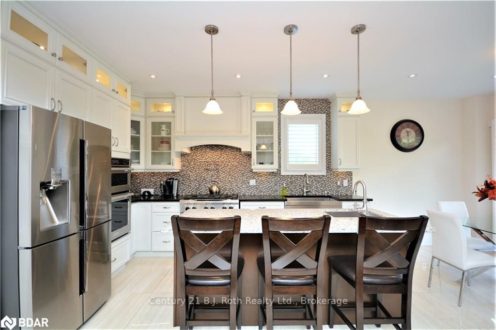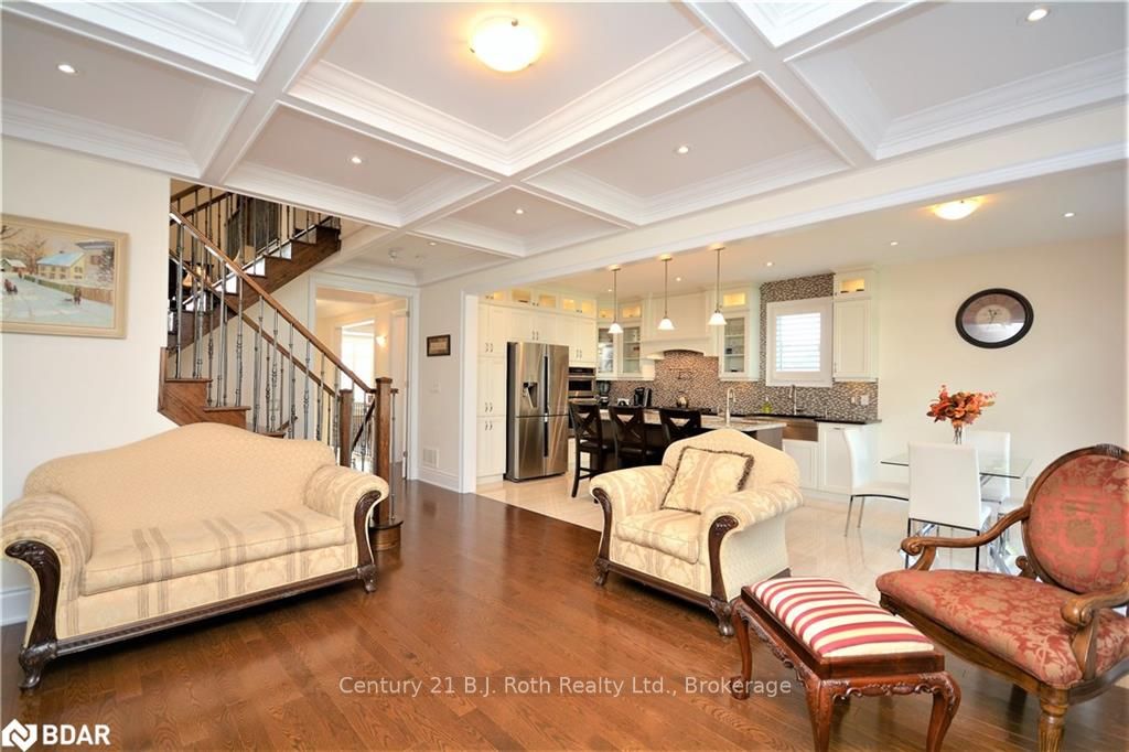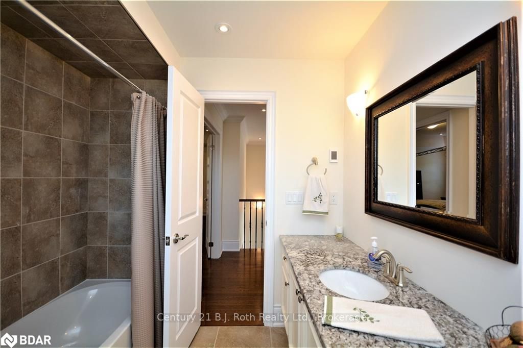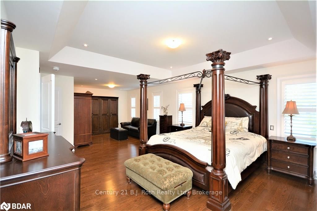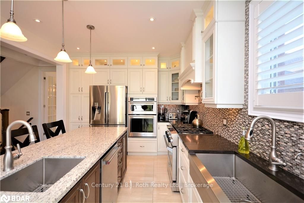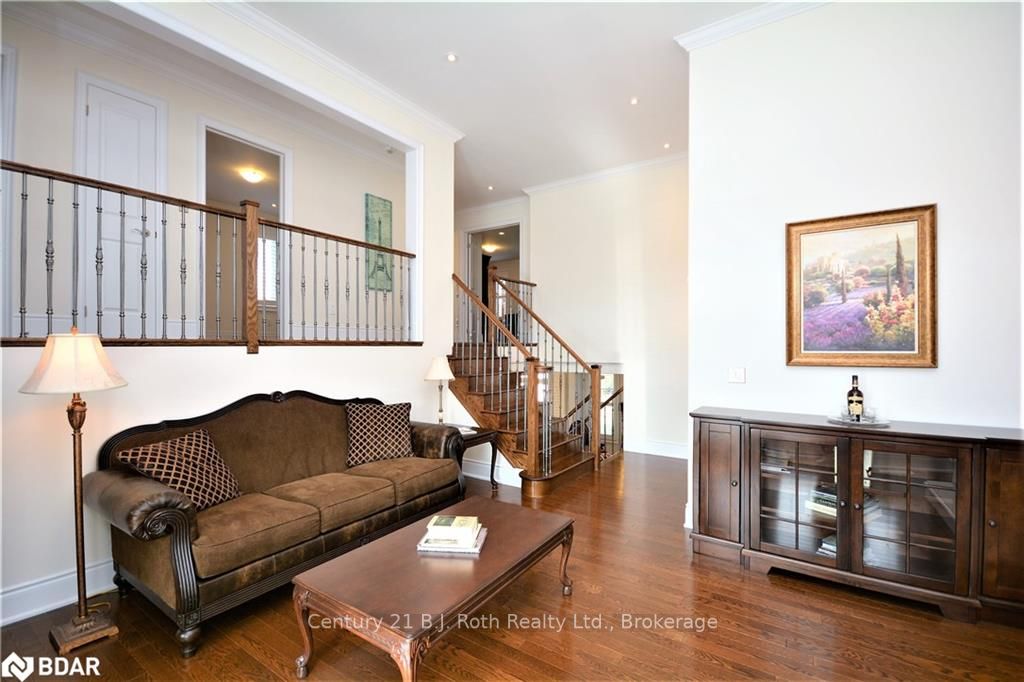 UNIQUE 1 YEAR OLD 2 STOREY BRICK AND STONE HOME WITH TRIPLE CAR GARAGE ON QUIET COURT. EAT IN GOURMET KITCHEN WITH GRANITE COUNTERS, CENTRE ISLAND WITH SINK. MAIN FLOOR FAMILY ROOM WITH GAS F/P & FORMAL DINING ROOM. FORMAL LIVING ROOM HAS SOARING 14 FT HIGH CEILINGS, GAS F/P AND WALK OUT TO PRIVATE DECK. MASTER BEDROOM FEATURES 5 PC ENSUITE AND WALK IN CLOSETS. FINISHED BASEMENT FEATURES A 5TH BEDROOM WITH 5 PC ENSUITE , RECREATION ROOM WITH GAS F/P , LAUNDRY ROOM AND EXERCISE ROOM. UPGRADED HARDWOOD FLOORS THROUGHOUT THE HOME. HOME HAS BOTH 100 AND 200 AMP SERVICES, C/A, HRV, CENTRAL VAC & ACCESSORIES, WATER SOFTENER AND R/O SYSTEM. CLOSE ACCESS TO HWY 400 AND BRADFORD GO TRAIN. TRULY A DREAM HOME. SHOWS +++
