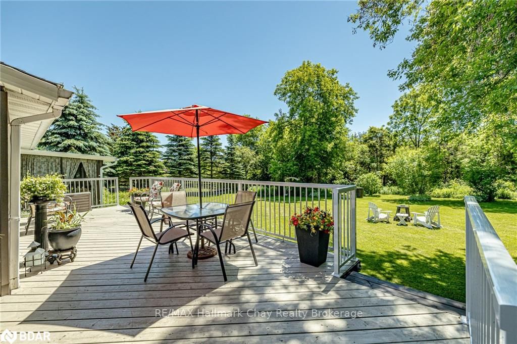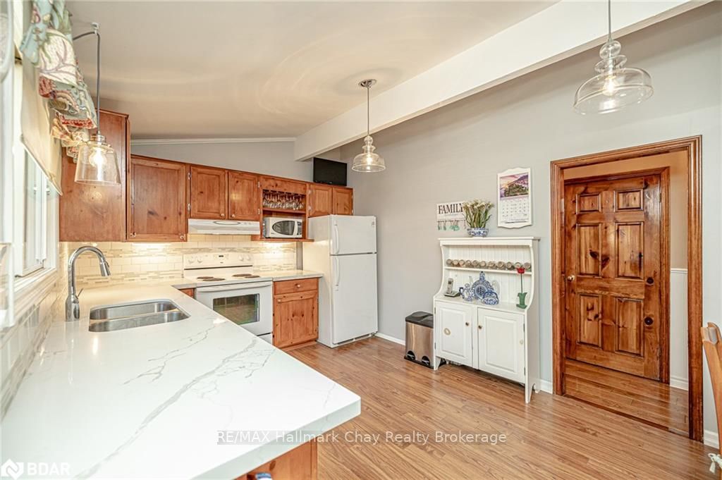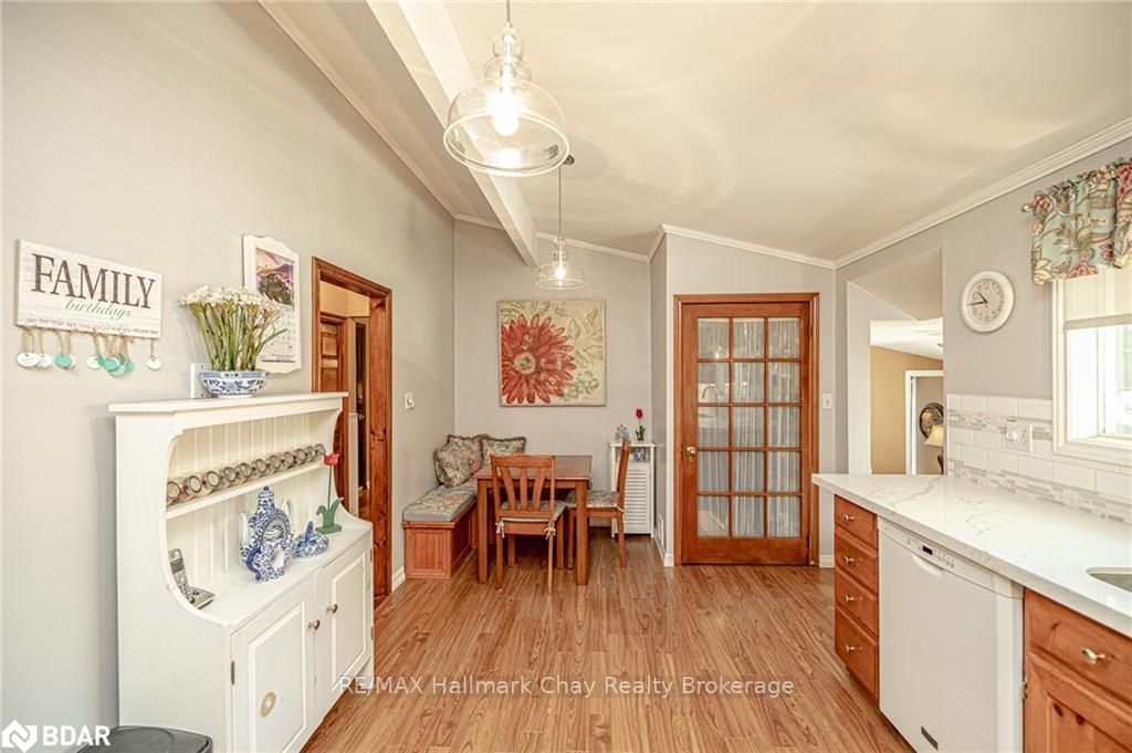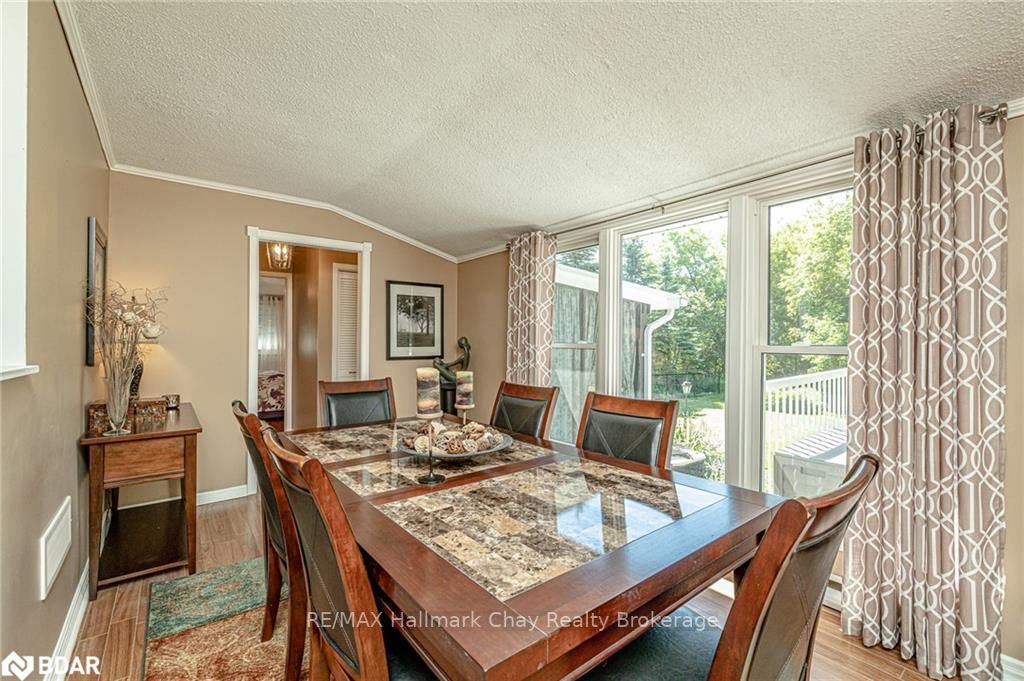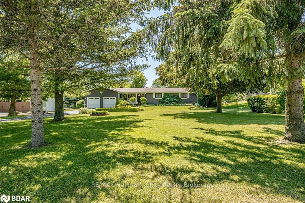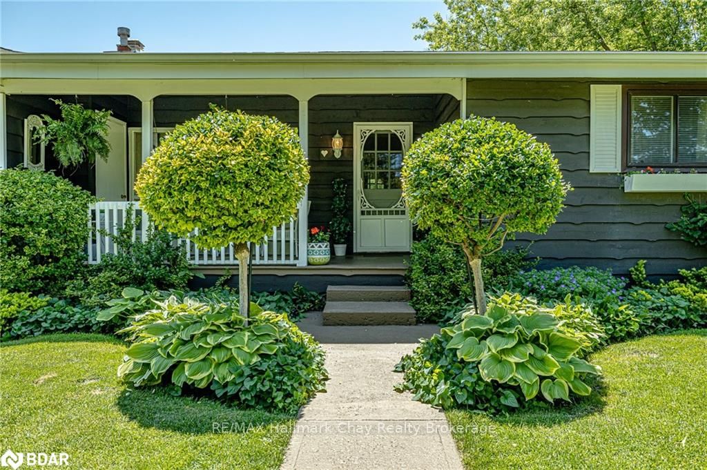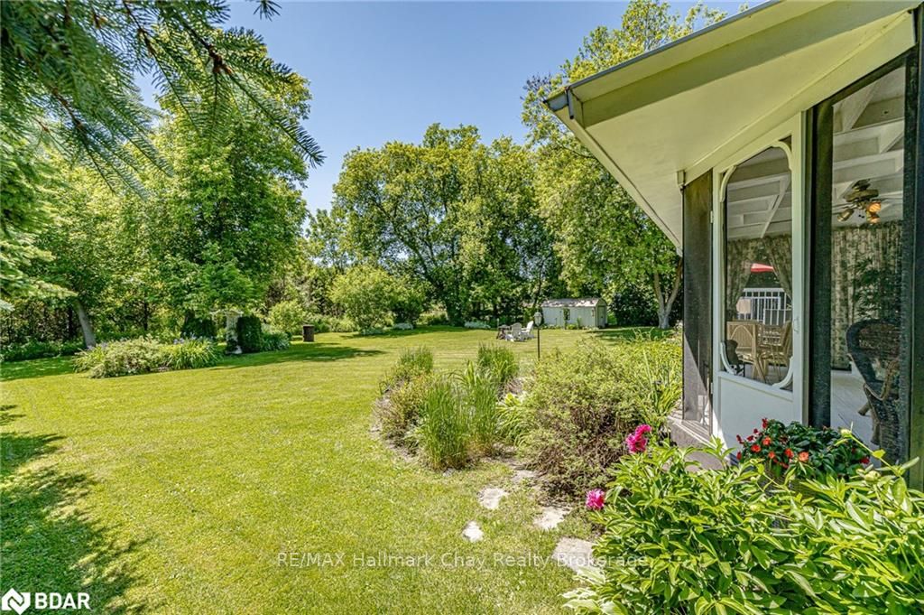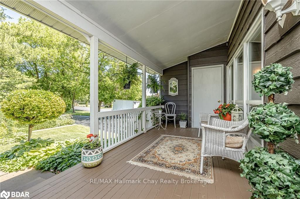 Welcome to 1335 Gilford Road, located in the desirable community of Gilford, just steps from the beautiful shores of Lake Simcoe with it's marinas, beaches and parks. This unique bungalow with just over 2,000 sq ft is one of a kind in the neighbourhood. Sitting on a great sized lot, beautifully landscaped backing onto a mature treed area. The interior of this home features hardwood floors, vaulted ceilings throughout and incredible charm! A grand gas fireplace with stone surround, and exposed wood architectural beam over-looking the sunken dining room, a large eat-in kitchen with quartz counter tops, under mount sink, tile backsplash and pantry, a bright family room with walk-out to deck. Down the hall you'll find the master bedroom with his-&-hers closets, 2 additional bedrooms as well as a newly renovated main bath with granite vanity and beautiful tile. Off of the dining room you'll find the 4th bedroom and 3pc bath as well as walk-out to the large three season sunroom, fully screen