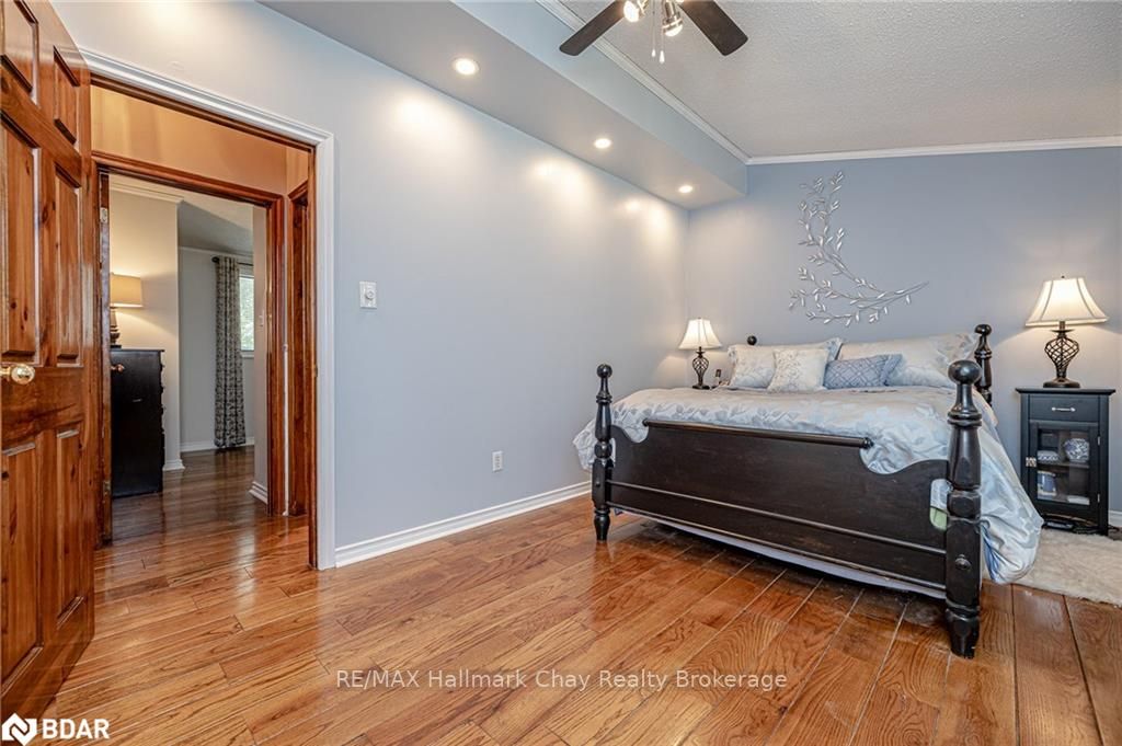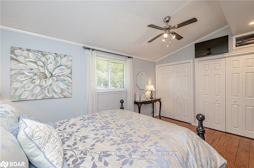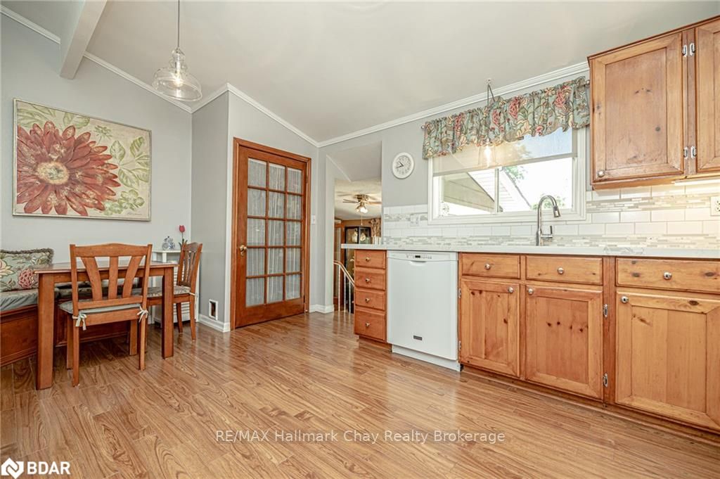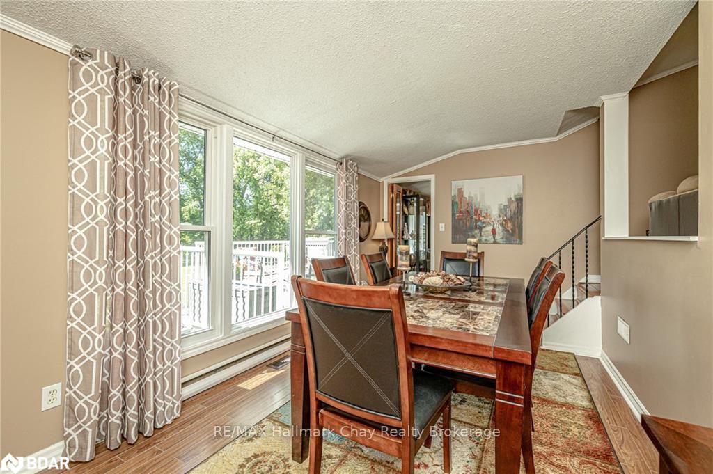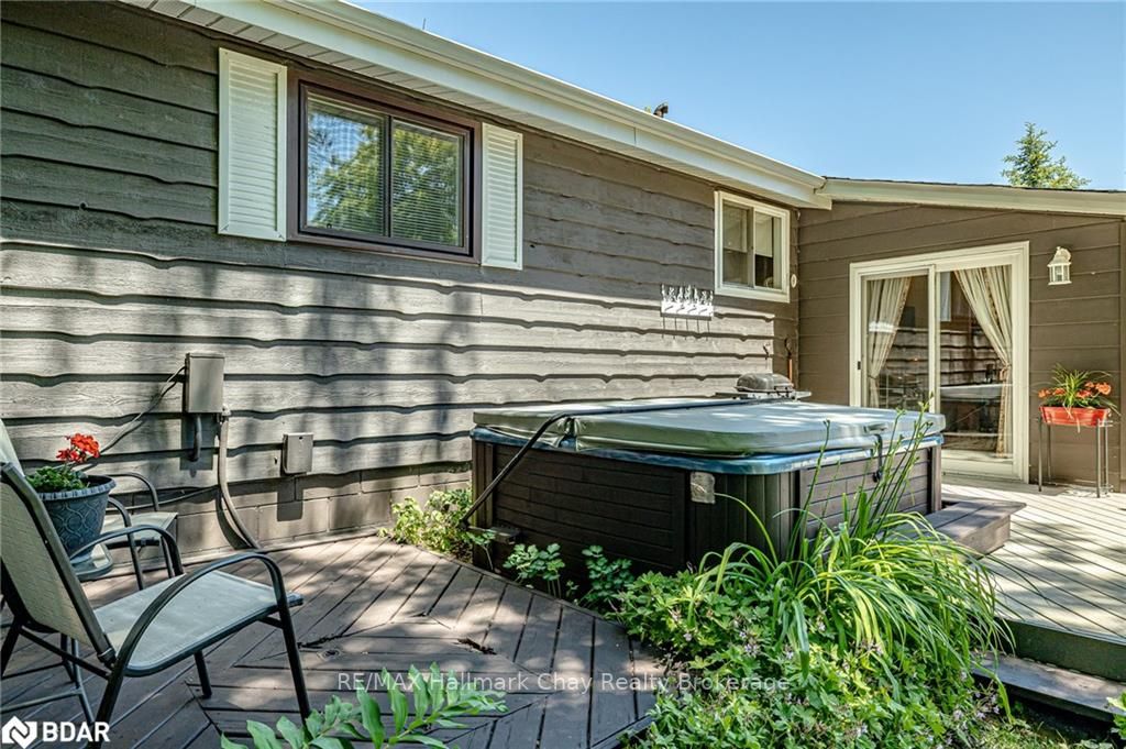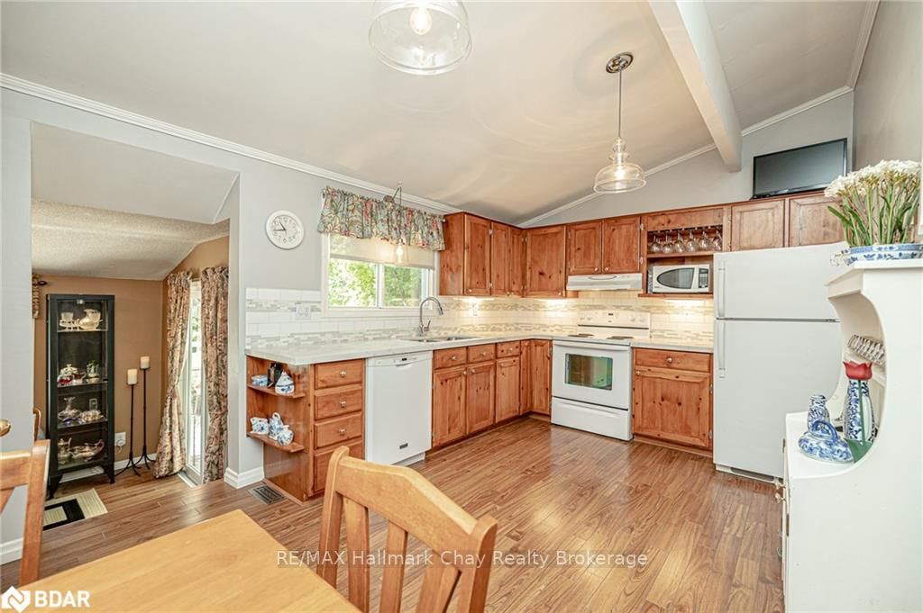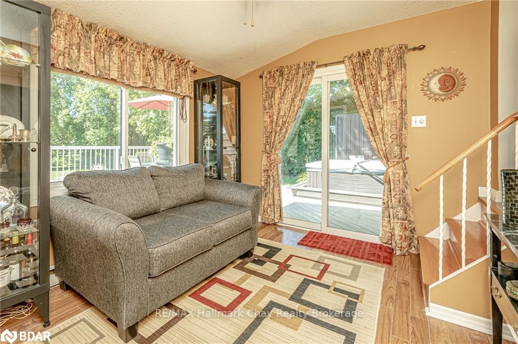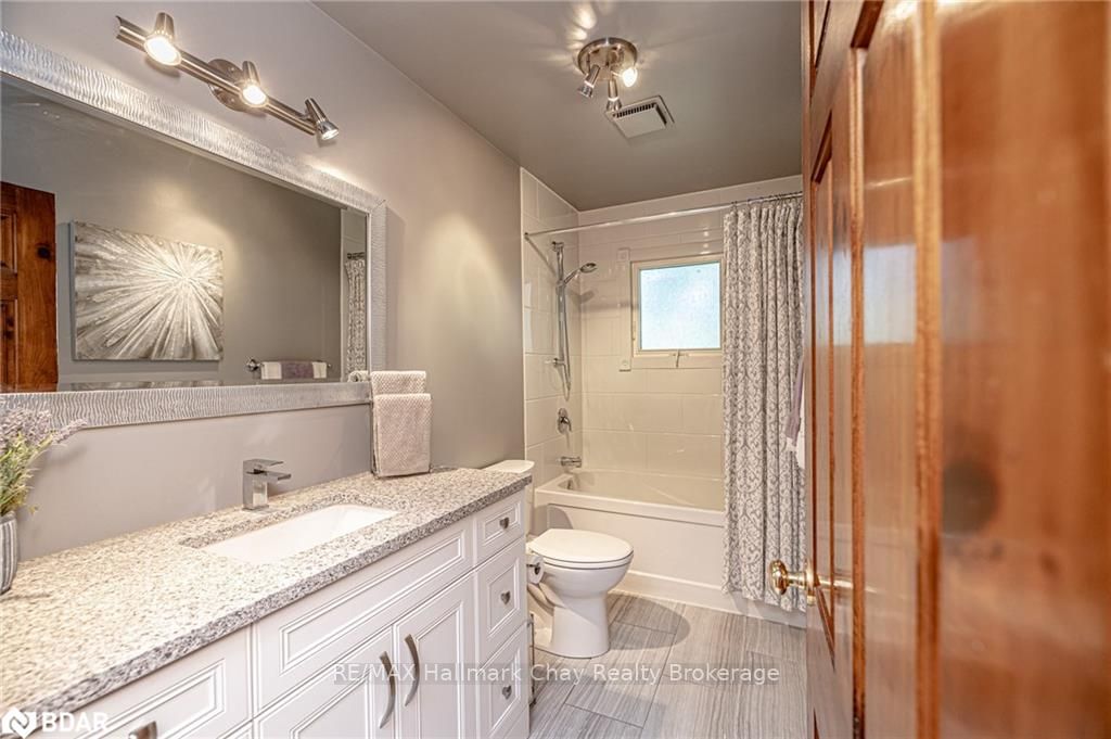 Welcome to 1335 Gilford Road, located in the desirable community of Gilford, just steps from the beautiful shores of Lake Simcoe with it's marinas, beaches and parks. This unique bungalow with just over 2,000 sq ft is one of a kind in the neighbourhood. Sitting on a great sized lot, beautifully landscaped backing onto a mature treed area. The interior of this home features hardwood floors, vaulted ceilings throughout and incredible charm! A grand gas fireplace with stone surround, and exposed wood architectural beam over-looking the sunken dining room, a large eat-in kitchen with quartz counter tops, under mount sink, tile backsplash and pantry, a bright family room with walk-out to deck. Down the hall you'll find the master bedroom with his-&-hers closets, 2 additional bedrooms as well as a newly renovated main bath with granite vanity and beautiful tile. Off of the dining room you'll find the 4th bedroom and 3pc bath as well as walk-out to the large three season sunroom, fully screen