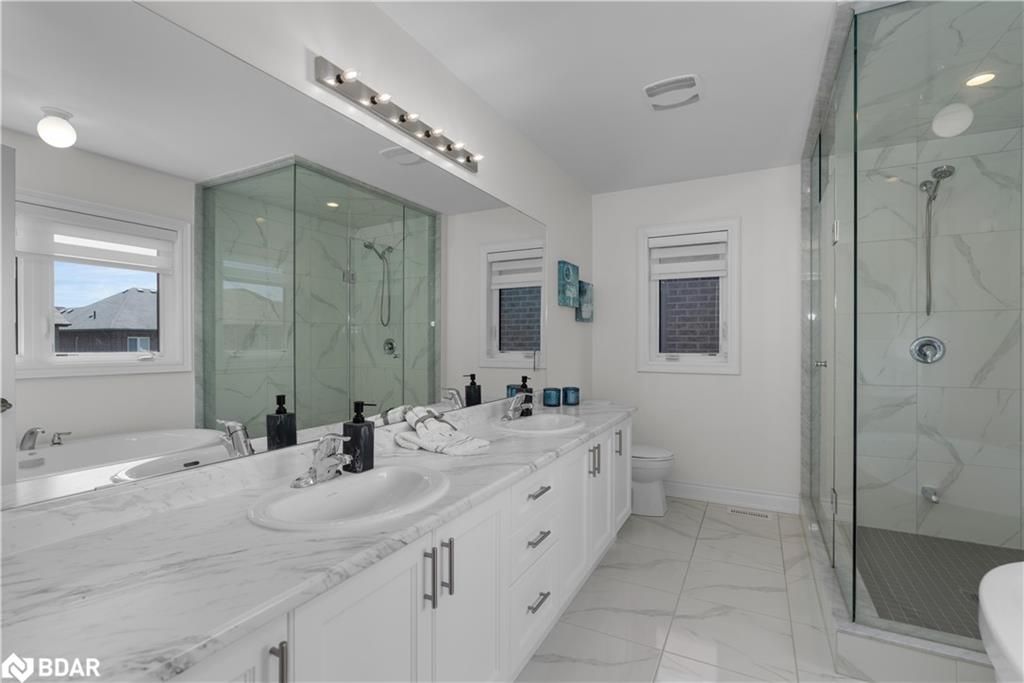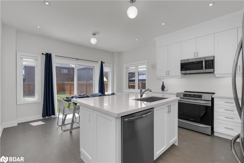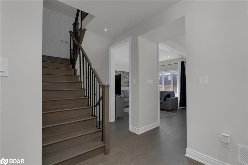 Located In The Desirable Area Of Belle Air Shores Subdivision, This Spacious 3 Bedroom 3 Bath Home Showcases over 2000 Sqft Of Finished Space. Thousands Spent In Upgrades Presenting You With Engineered Hardwood, Tile & Pot Lighting Throughout. Kitchen Cabinetry, Hardwood Stairs W/Cast Iron Spindles, All Accented Well By A Complete Trim Package. An Open Concept Main Floor Plan W/9 ft Ceilings. Upgraded Bathroom Vanities & Custom Blinds Throughout. Second Floor Offers 3 generously Sized Bedrooms, 5pc Ensuite With a Frameless Glass Shower & The Convenience Of The Second Floor Laundry. Premium Lot With SouthWest Exposure & No Sidewalk Providing 6 car parking (2 in Garage + 4 In The Driveway). Unspoiled Basement Awaiting Your Personal Touches. Close proximity to Lake Simcoe, Beach, Park Shopping, Hwy’s and more! Schools & Shopping Nearby Or Hop On The Go Train For An Easy Commute!
