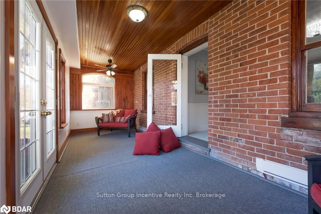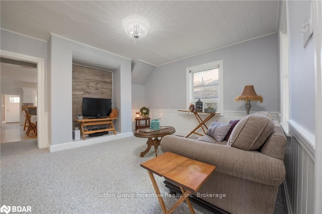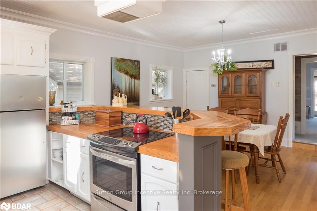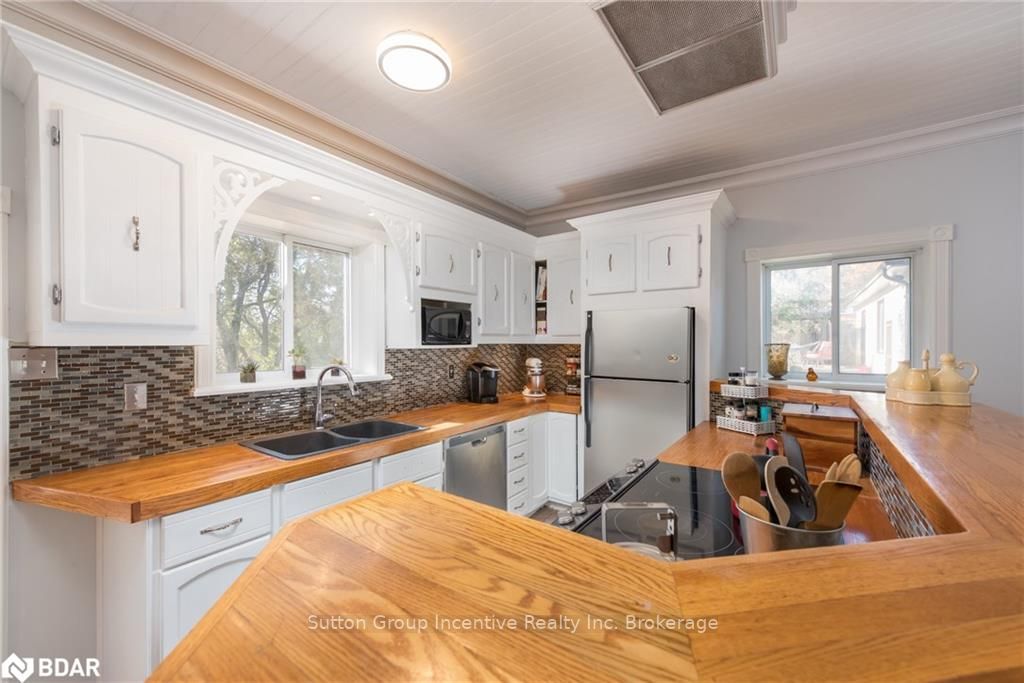 Adorable and Affordable 1 1/2 storey Century home in Stroud. This 2 Bdrm + Den home is loaded with Character and has a spacious main floor addition featuring extra large country kitchen/dining room, laundry/butlers pantry and a sun filled room with outside access... to use as you please! Main floor bath with freestanding soaker tub and separate shower, 23' wide enclosed front porch, L-shaped South facing rear deck and a Generous sized 67 x 165 foot lot combine to make this a fantastic must see home!