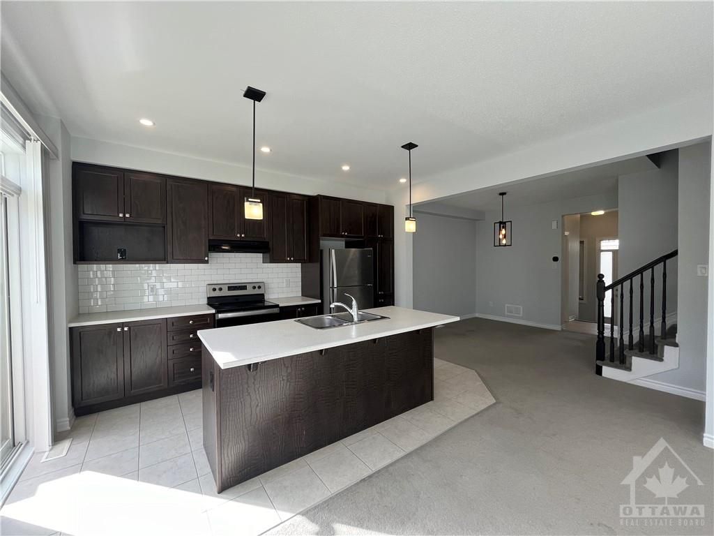Deposit: 5000, This lovely well maintained townhome offers a spacious, open-concept layout with a bright and inviting atmosphere. The main floor boasts 9-foot ceilings, creating a sense of openness and light. The large kitchen island is perfect for entertaining and everyday living, while the stainless steel appliances add a sleek, modern touch.