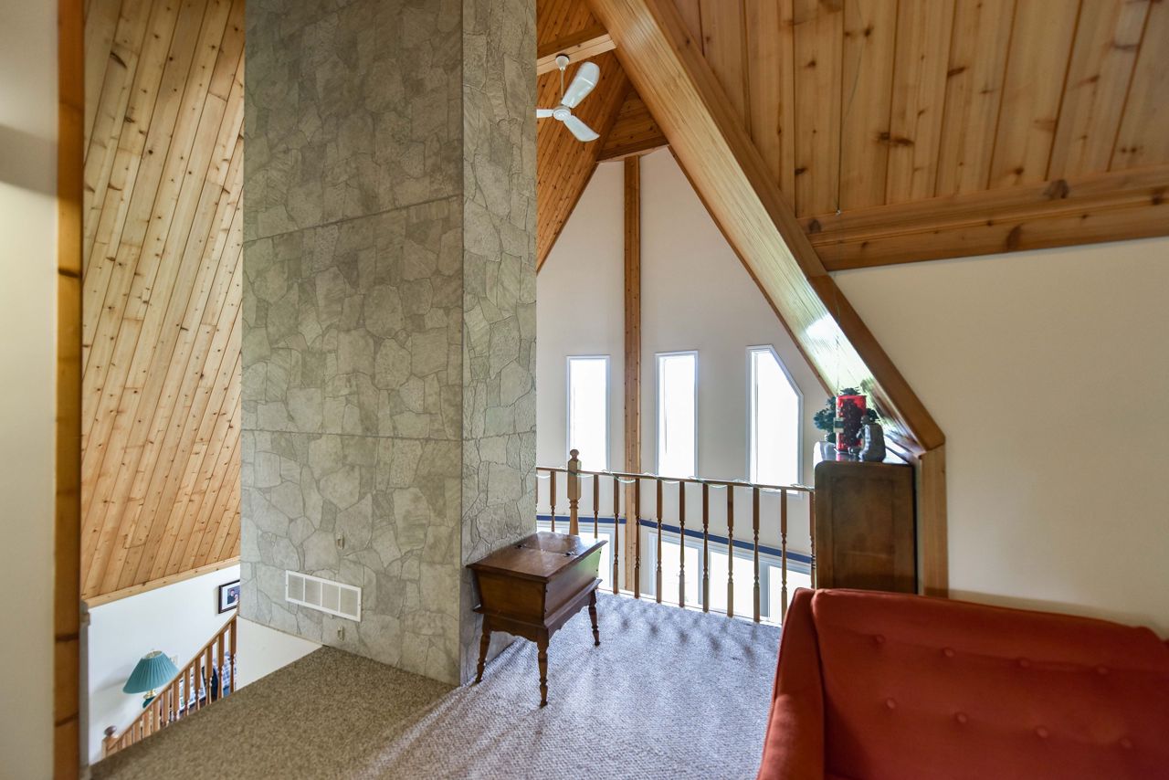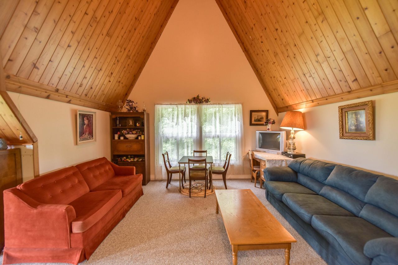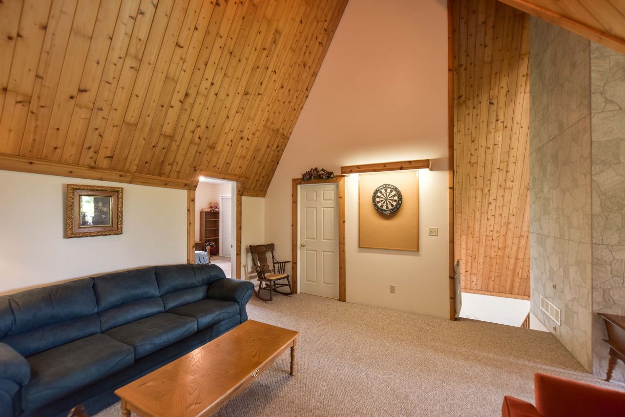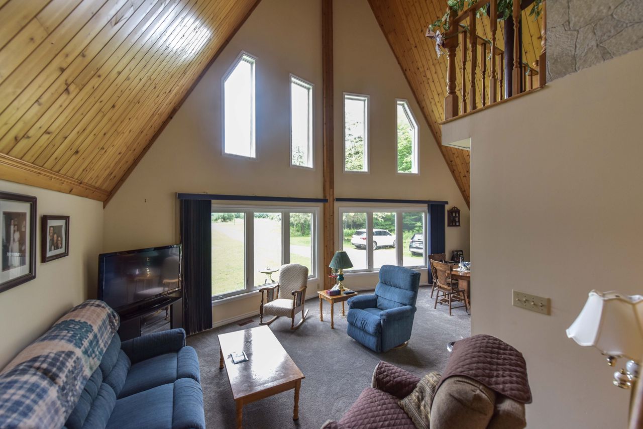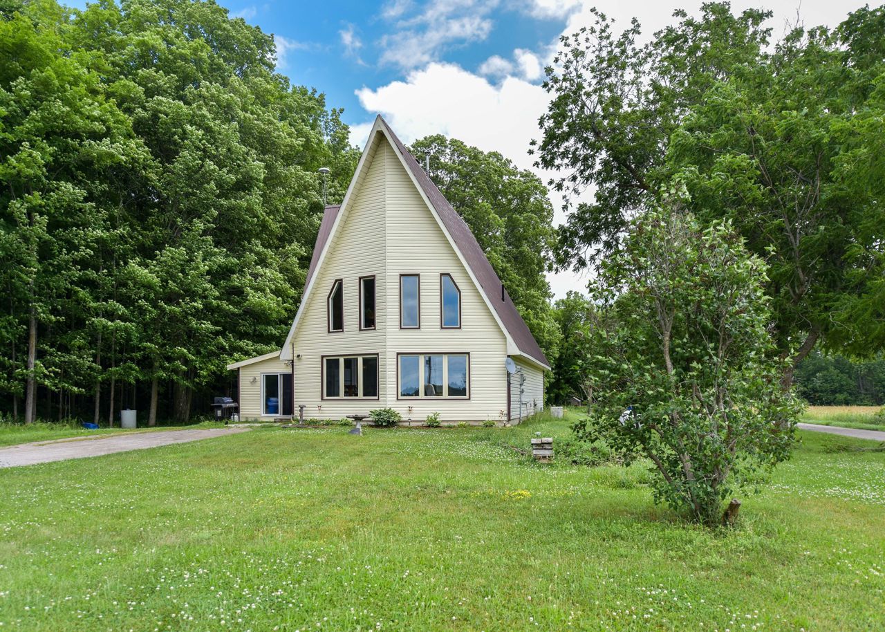 Escape to your waterfront retreat on Lake Dalrymple. This charming home boasts 5.5 acres of green lawn and pathways leading to 133 feet of deeded waterfront! The 2-story home has 3 bedrooms and features a main living room and dining area framed by a wall of windows and cathedral ceiling. Relax in the open family room loft, complete with an additional bedroom and ready-to-finish bathroom with a whirlpool tub. There is so much potential for this to be your forever home or getaway, enjoying great fishing, swimming, and year-round activities from your own private paradise.