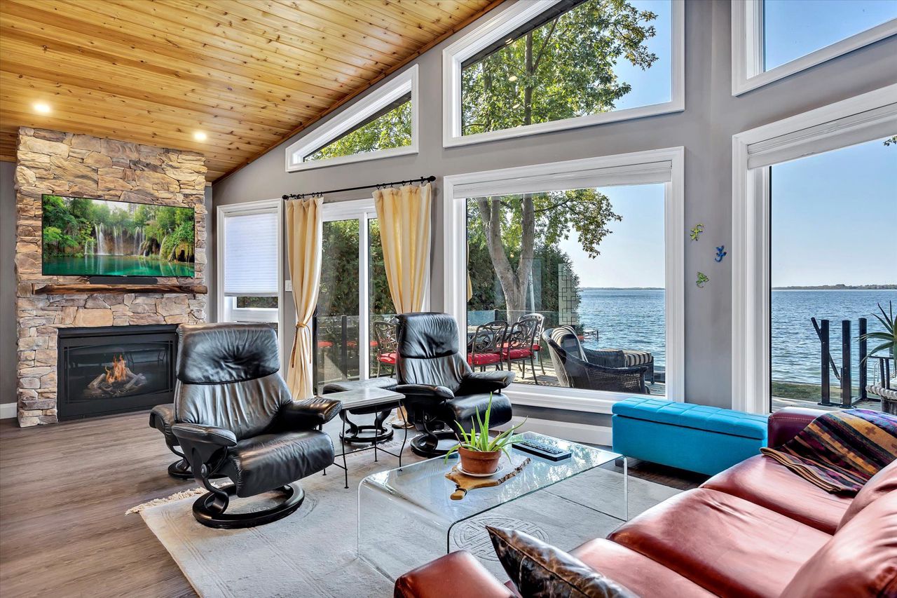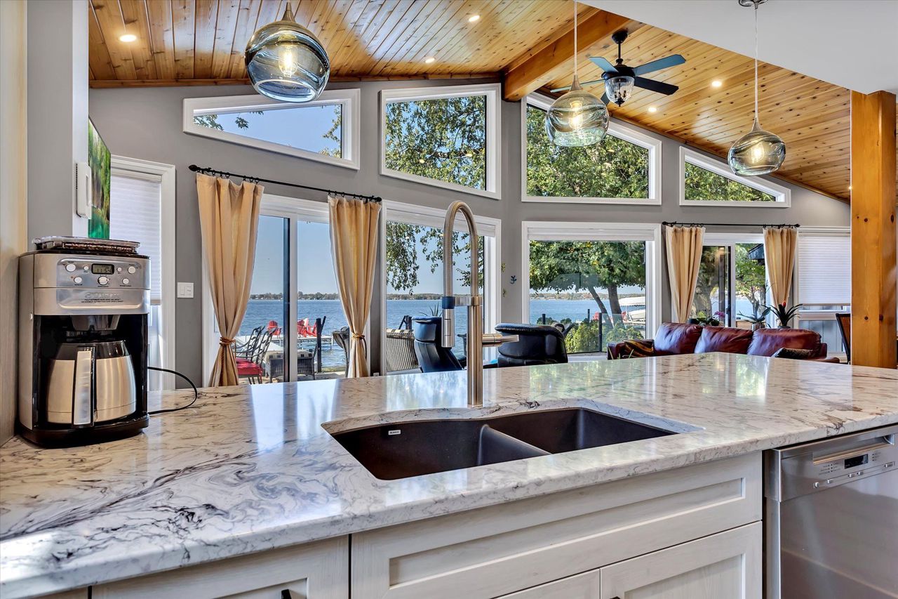 Professionally Renovated & Landscaped 3 Bdr 1 1/2 Sty, Year Round Home, Open Concept With Stone (Gas FP) Cedar Cathedral Ceilings & High End Vinyl Fl, Chefs Kit With Heated Flrs, Walk Out From Lv & Dine Rms To Lg Deck With Custom Infinity Glass Railings & BI Hot Tub Overlking Sturgeon Lake With Fabulous Sunsets, 2nd Floor All Cedar Cathedral Ceilings & Hardwood Flrs, Main Bath/Spa With Soaker Tub, Chandelier, Heated Flr, Lrg Glass Shower With Body Jets, Rain Head, Lrg Primary Bdrm With Custom Cabs, Winterized & Heated Bunkie For Overflow, Gym? All 10 Min To Lindsay 20 To Bobcaygeon or 1 1/2 Hrs to TorontoIncl: SS 36" Fridge, 36" Gas Range, Hood Fan, B/I Wall Oven, B/I Micro, B/I Warming Oven, DW To Be Replaced, Wine Fridge, W/D. All Wdow Coverings, all Elect., Fxts, , Gas Water Heater, Phantom Screen, Closet Main Level Bedroom,