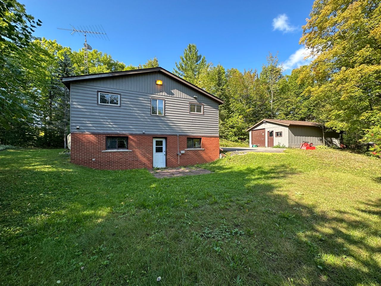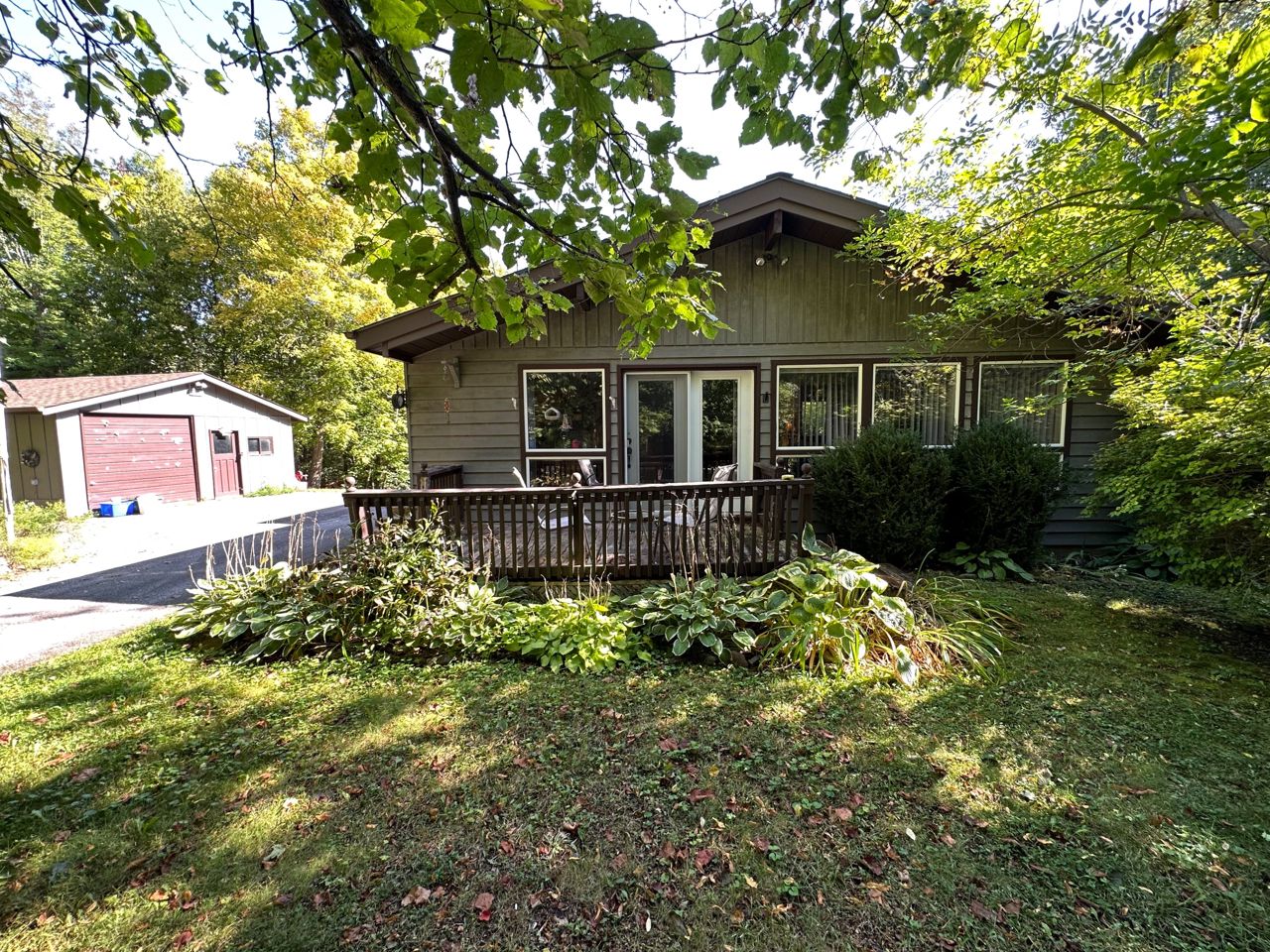 This Viceroy style backsplit is on 7.6 acres of lush woodland, located in a serene, wildlife-rich environment, this 3-bedroom, 2-bathroom home embodies open-concept living with an abundance of windows that invite the warm embrace of natural light. As you step inside, you'll be greeted by an inviting living room adorned with hardwood floors that lead your towards a charming gas fireplace. It's the perfect place to unwind after a long day of making Maple Syrup. Venture further, and you'll discover two upper-level bedrooms, each graced with double closets to accommodate all your storage needs. The lower level of this home boasts a walkout and a separate bed and bathroom for your guests. A paved driveway ensures smooth access, for those who love to tinker or create, a double-detached garage awaits, offering ample space for a workshop and an additional detached garage and a practical pole barn complete the picture, providing ideal storage solutions for your RV or other prized possessions.
