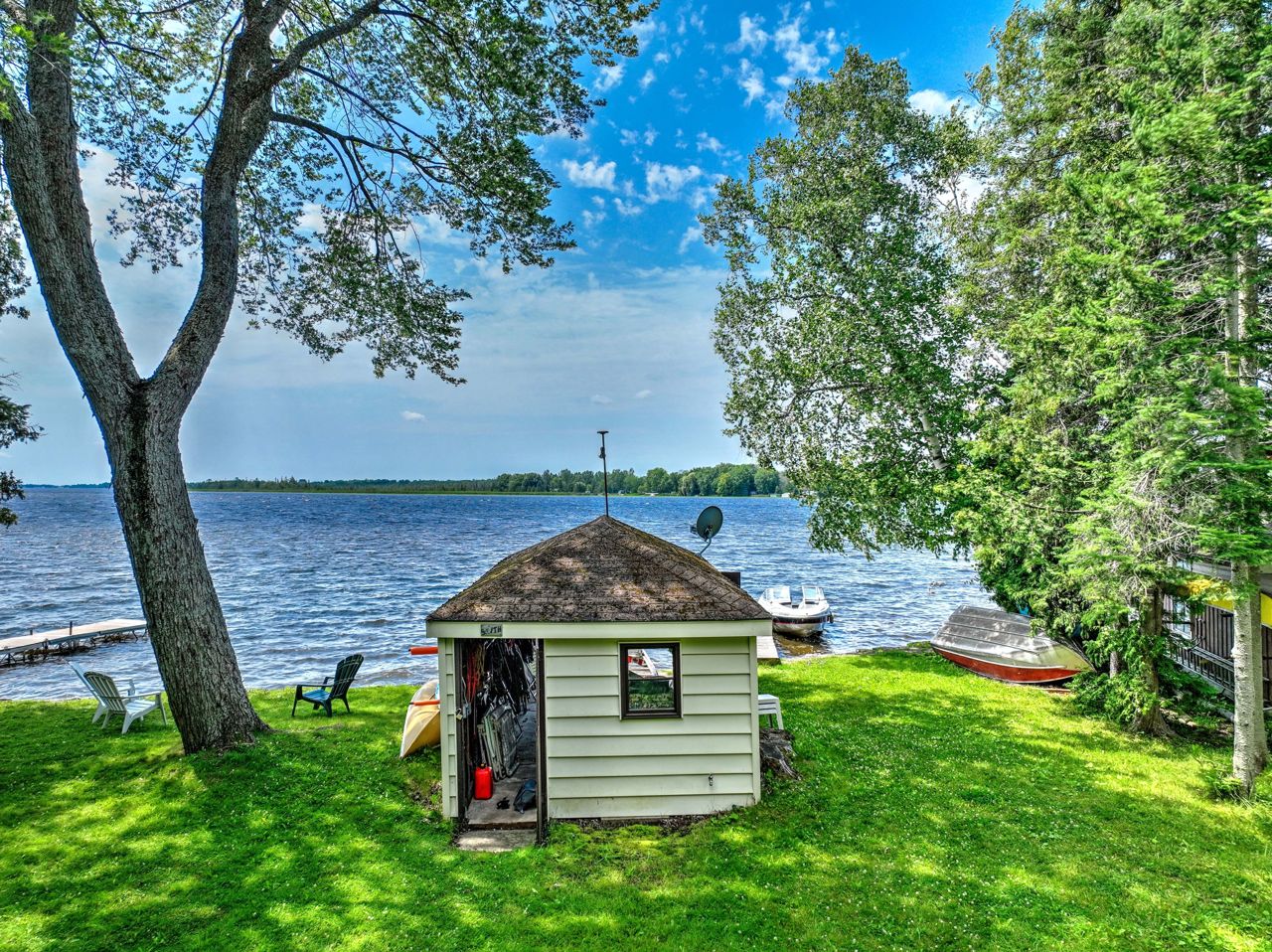 This Sturgeon Lake waterfront property is perfect for those looking for hassle-free cottage living. Its location on paved and municipally maintained Sturgeon Glen Road means access to shopping and services on main street Fenelon Falls is less than 5 minutes away. The 0.35 acre lot has 60 ft of swimmable waterfront with south-west exposure that is ideal for sunset viewing. The lot is deep and level, with plenty of mature trees that provide dappled sunlight and privacy. The 3-bedroom seasonal cottage is highlighted by spacious living and kitchen/dining rooms, an updated bathroom, an expansive deck and a crawl space with a concrete floor that provides new heating options now that natural gas is available on the street. Other practical features include a bunkie, a garden shed, a marine rail boat house and a year-round dock.The cottage is being sold turn-key with most furniture, furnishings and a 15’ fibreglass boat with 70 hp outboard included. Visit the Realtor’s website for more information.