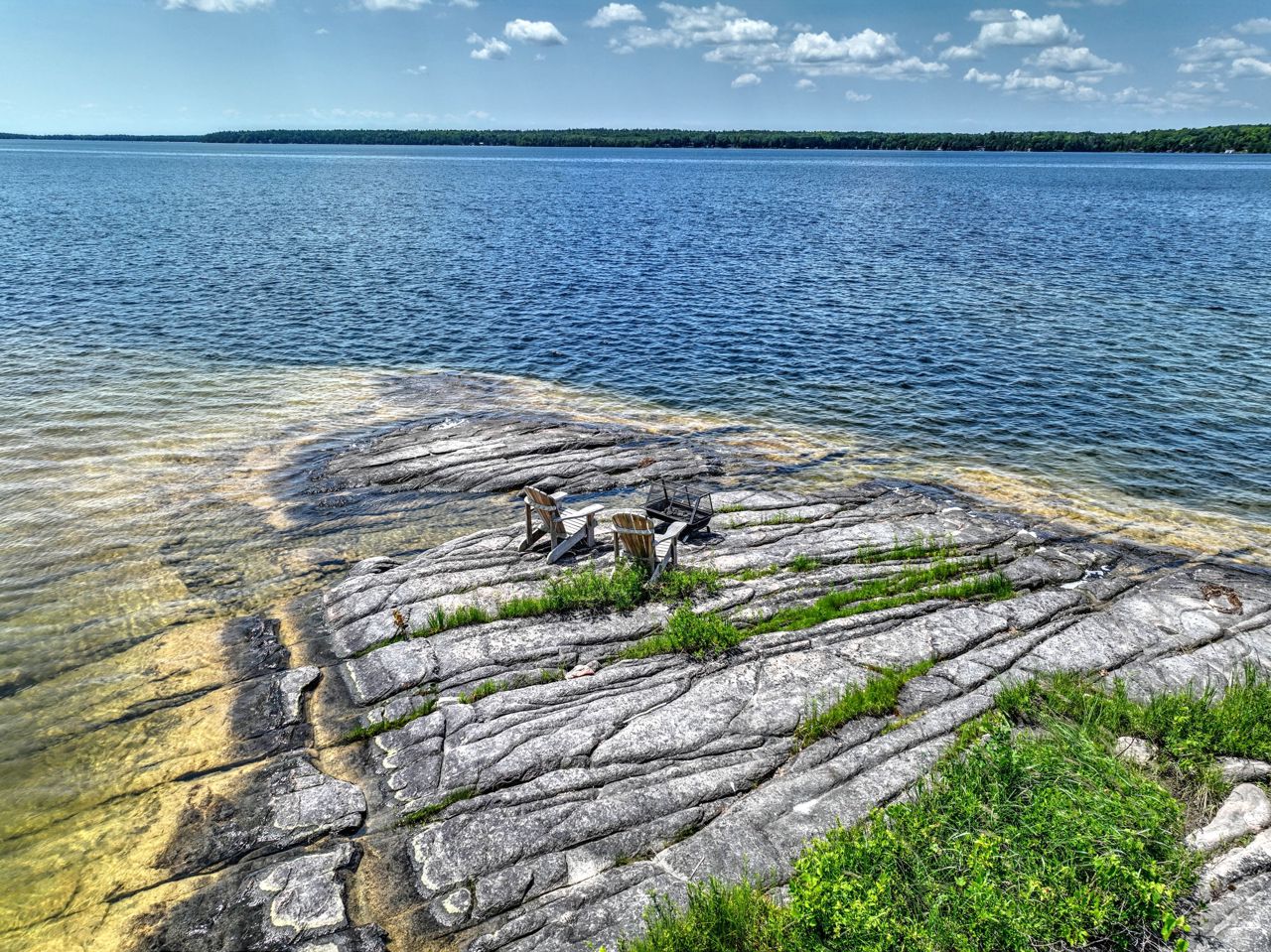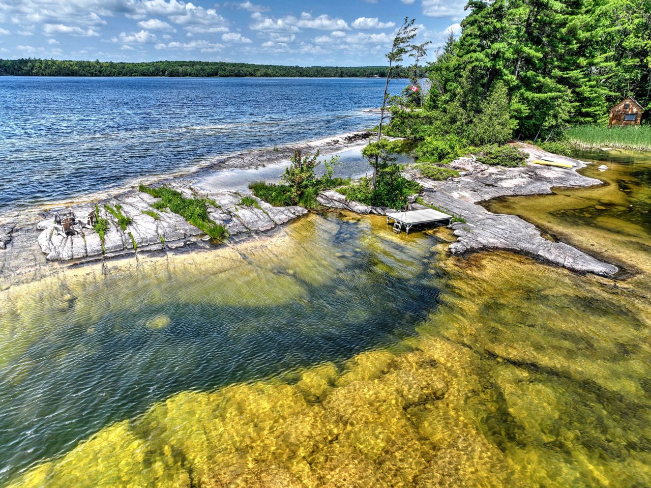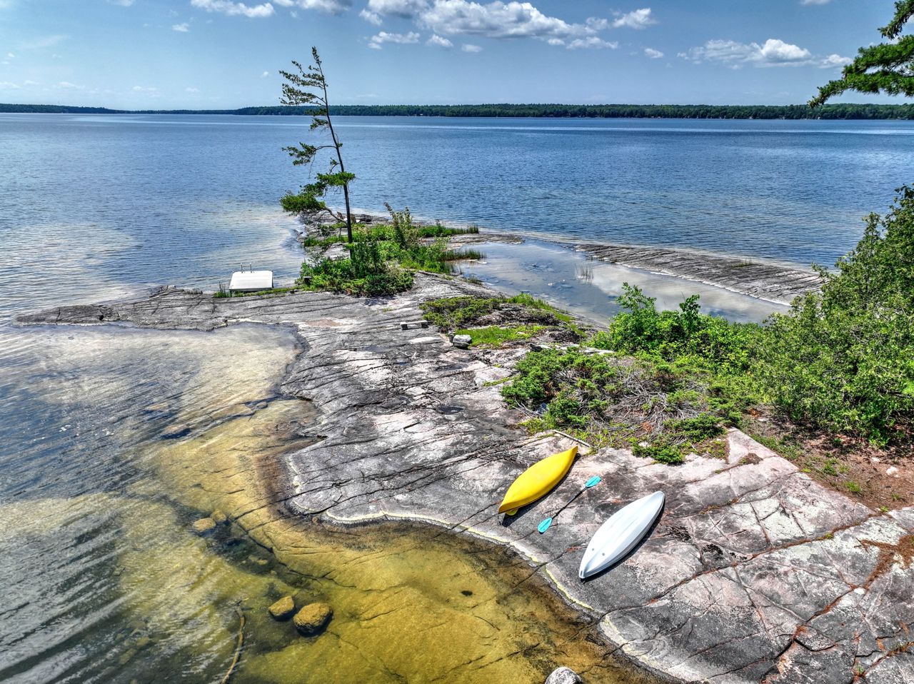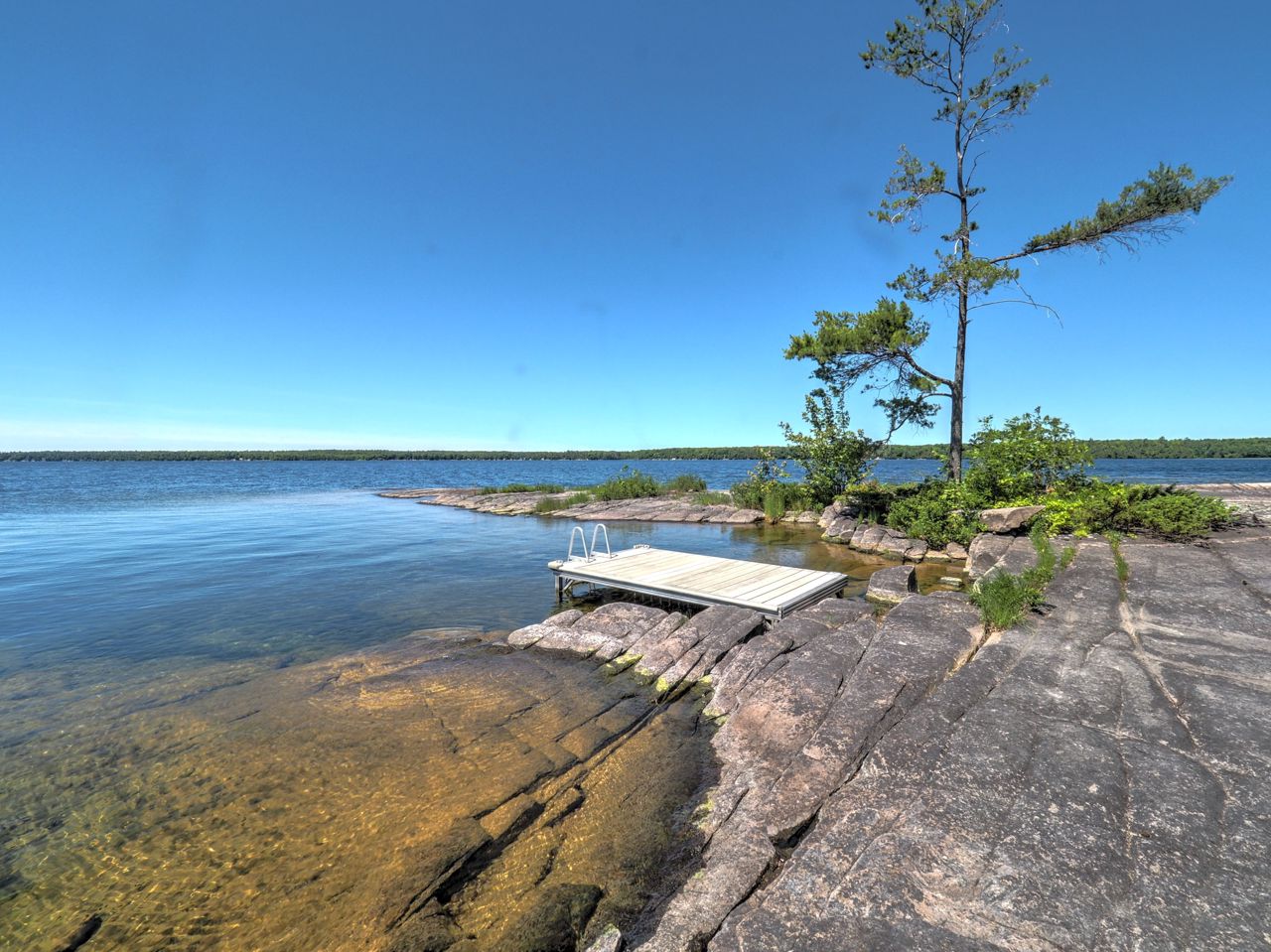 This is the first public offering of this unique and tremendously aesthetic Four Mile Lake property. Sited on the prime south-west corner of road-accessible North Island, the 0.63 acre property features 830 feet of smooth granite shoreline along two points and a quiet cove where the cottage and bunkie reside. You will marvel at the panoramic lake vistas, the natural granite swimming pool and the magical colour interplay between the granite and the gin-clear water. The 3-season cottage is bright and cheery and in excellent condition. Recent updates include new picture windows, an expanded deck and a new fridge and stove. The newer waterside bunkie is spacious and high-ceilinged. Most furniture and furnishings are included. This property will appeal to those longing to re-acquaint themselves with the wonders of nature, while providing the option for future enhancements without fear of hitting a valuation ceiling.